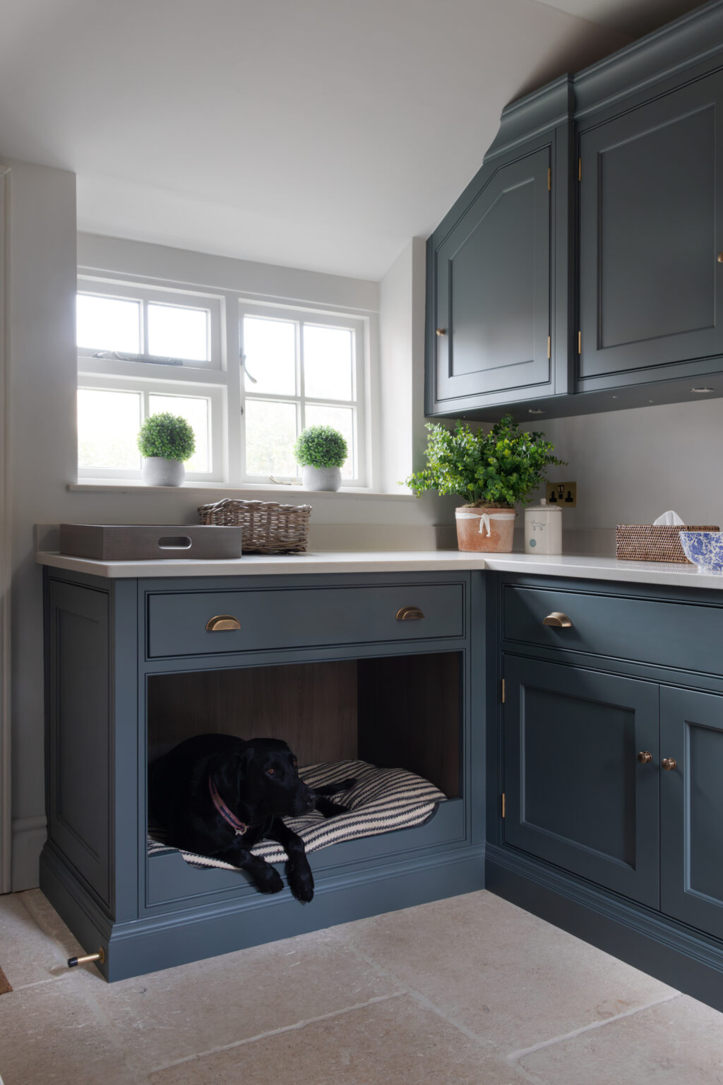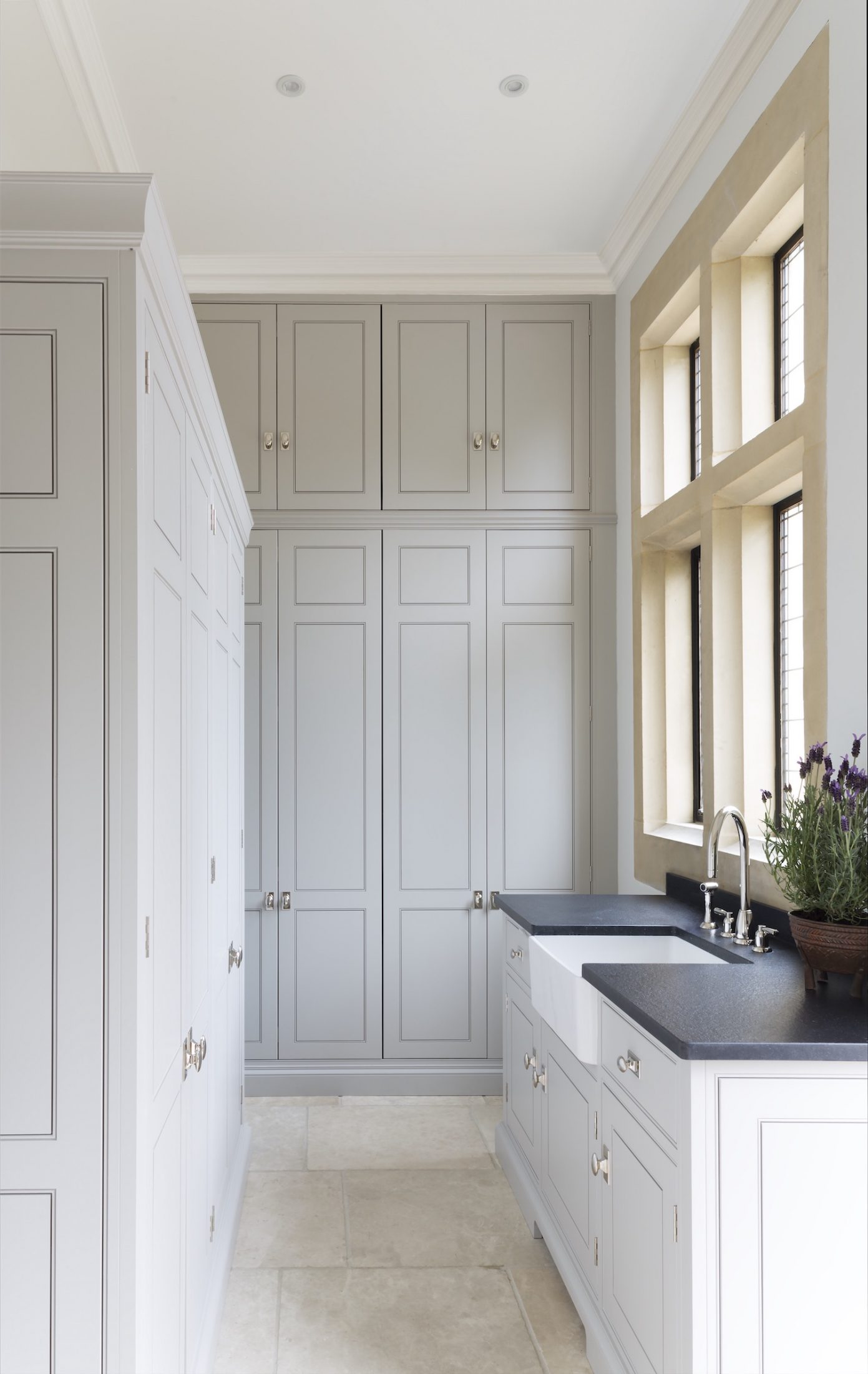 Kitchen Confidential | A Luxury Bespoke Kitchen in Ascot, Berkshire Published: 13-09-2015 After seeing the Ashurst House project featured in EKBB Magazine, the homeowners of this breathtakingly beautiful luxury home in Ascot, Berkshire asked us to help them create their dream kitchen. Comprising a large open plan kitchen / dining space, utility room, boot room and laundry room, the project was almost completely a blank canvas, with the exception of the kitchen which was cramped and ill-fitting for the large space. With three young children, the home needed to serve the needs of the family first but also needed to be suitable for entertaining family and friends. The kitchen features a host of cooking appliances designed with entertaining in mind including the legendary Wolf Duel fuel Range with Charbroiler with a Westin extractor installed above. Opposite the Wolf range and integrated into the island are a Miele microwave and Miele sous chef warming drawer for maximum convenience. The large kitchen island acts the main prep area and includes a Villeroy & Boch Double Butler Sink with insinkerator waste disposal, Perrin & Rowe Callisto Mixer Tap with rinse and a Quooker Pro Vaq 3 Classic tap finished in polished nickel. The eurocargo recycling pullout bins are located in the island with a Miele dishwasher handily located either side to ensure maximum efficiency. Choosing the iconic Sub-Zero fridge freezer for this kitchen was a super choice for this large kitchen / dining area and provides ample storage. The base cupboards and tall cupboards in the kitchen are painted in Cornforth White by Farrow & Ball with Fumed Oak interiors. The island is painted in Moles Breath by Farrow & Ball, while the freestanding Cook’s Pantry is painted in Railings, also by Farrow & Ball and with a bespoke fumed oak interior. The dining area has a Weathered Oak Refectory Table by Humphrey Munson. The table seats 10 so works really well for entertaining friends and family in the open plan kitchen / dining area. The seating is by Vincent Sheppard which is perfect for a family with young children because they can be easily maintained with a moist towel and some natural soap. The Cook’s Pantry is the perfect place for storing dry goods in the kitchen and has masses of storage with spice and condiment racks, deep shelves and 5 drawers. Our pantries and larders have never been so popular, particularly for big country kitchens where there is the space for large freestanding pieces. The Utility Room located just off the kitchen area has floor to ceiling Spenlow cabinetry painted in Purbeck Stone by Farrow & Ball. It has a Villeroy & Boch single sink with Perrin & Rowe Callisto Mixer Tap with a rinse for maximum convenience. The Laundry Room has tall cupboards for storage, along with base cupboards all painted in Purbeck Stone by Farrow & Ball. Similar to the Utility Room, the Laundry room also has the single sink is by Villeroy & Boch and has the Perrin & Rowe Callisto Mixer Tap with rinse. The Boot Room is a designated cloakroom area located between the hallway and the kitchen and includes a large freestanding Housekeeper’s Cupboard, seating with integrated storage and an open cloakroom cupboard. The cabinetry is painted in Attic II by Little Greene Paint Company and has fumed oak interiors and seating. Share this article Copy this link https://www.humphreymunson.co.uk/a-luxury-bespoke-kitchen-in-ascot-berkshire/ Share Copy link Previous Article Kitchen Island Inspiration Next Article Chicken & Bacon Pie
