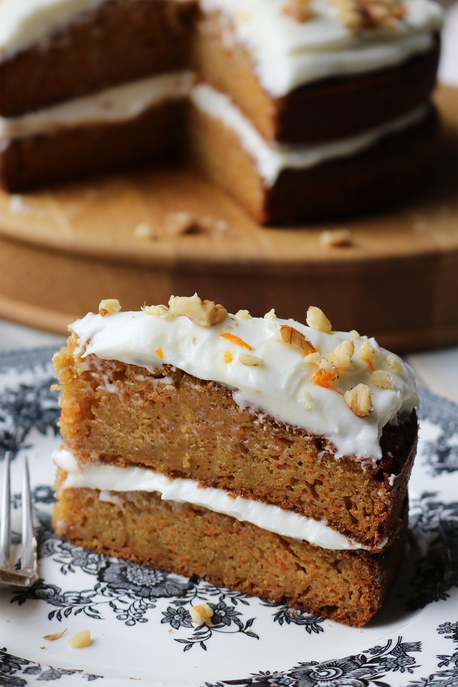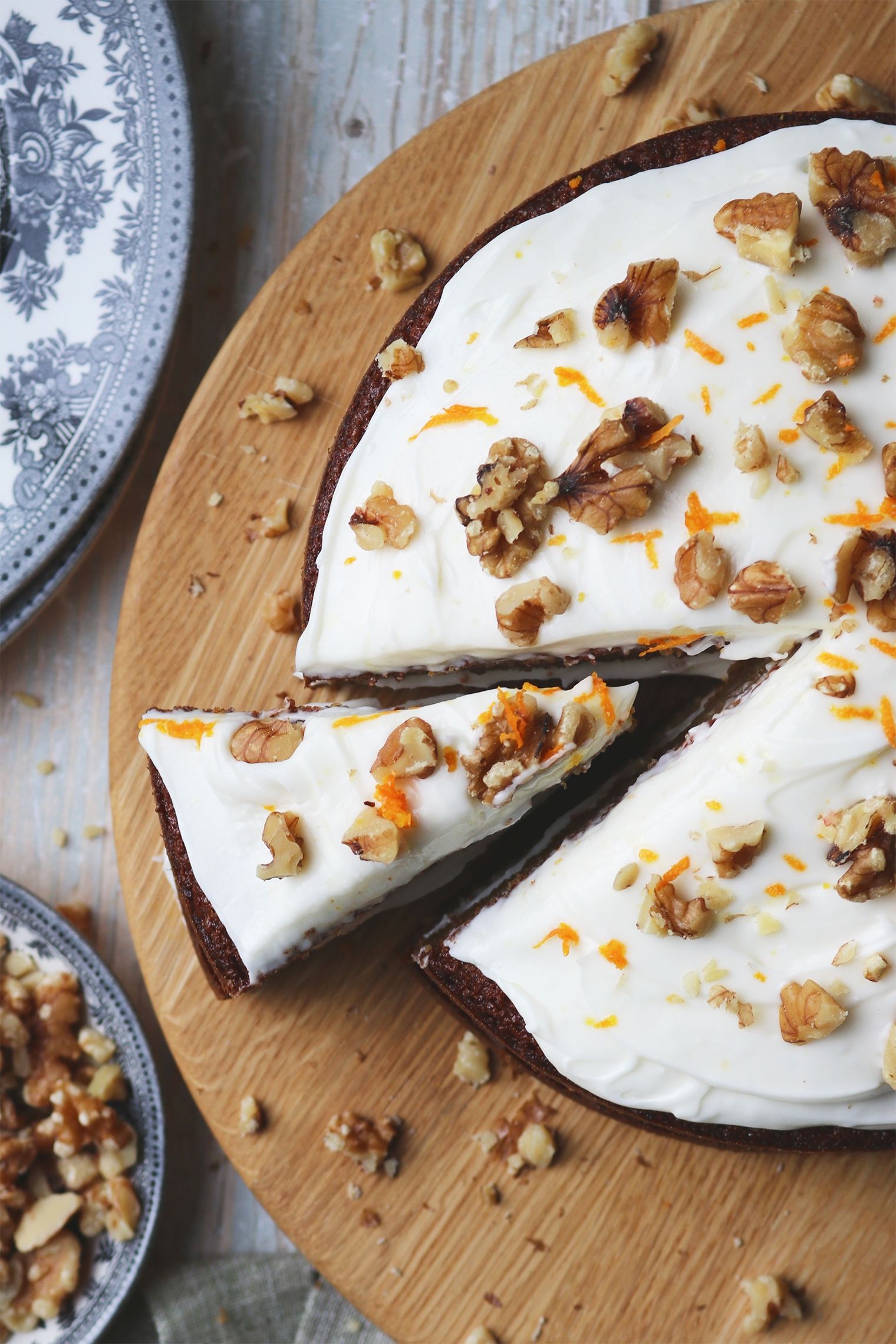 American carrot and orange cake Published: 25-01-2026 A deliciously moist cake that is super easy to prepare and perfect for enjoying with a cup of tea in the late afternoon. The cake also freezes really well, with or without the icing, which makes it ideal for preparing ahead of time if needs be. Ingredients For the cake 100g of soft brown sugar 100g of caster sugar 4 large eggs 120ml orange juice 120g of plain flour 120g self-raising flour 2 tsp bicarbonate of soda 1 tsp cinnamon 1/2 tsp salt 2/3 medium carrots, grated chopped pecans to decorate For the Icing 150g cream cheese 300g icing sugar 1 tsp orange zest Method To begin, preheat your oven to 180 °C. In a stand mixer or bowl, cream together the butter and sugar until light and fluffy. Next, add the eggs and orange juice gradually. In a separate bowl, combine the flours, baking soda, cinnamon and salt. Then add this gradually to the egg mixture. Now add the grated carrots to the mix and stir to combine. Divide this mix between two 8-inch, lined sandwich tins and bake for 30 minutes or until risen and golden brown. To prepare the icing, whip the cream cheese until soft and creamy, gradually add in the icing sugar and orange zest and mix until combined. Place this back in the fridge to cool until the cakes are also completely cooled. To ice the cake, use half the icing to sandwich the cakes together and the other half on top. Sprinkle with walnuts and a little extra zest and enjoy. Images by HM Crockery – Burleigh Linens – Gayle Warwick Serving Board – Humphrey Munson Share this article Copy this link https://www.humphreymunson.co.uk/american-carrot-and-orange-cake/ Share Copy link Previous Article How to give your kitchen a January refresh Next Article How to choose the right flooring
