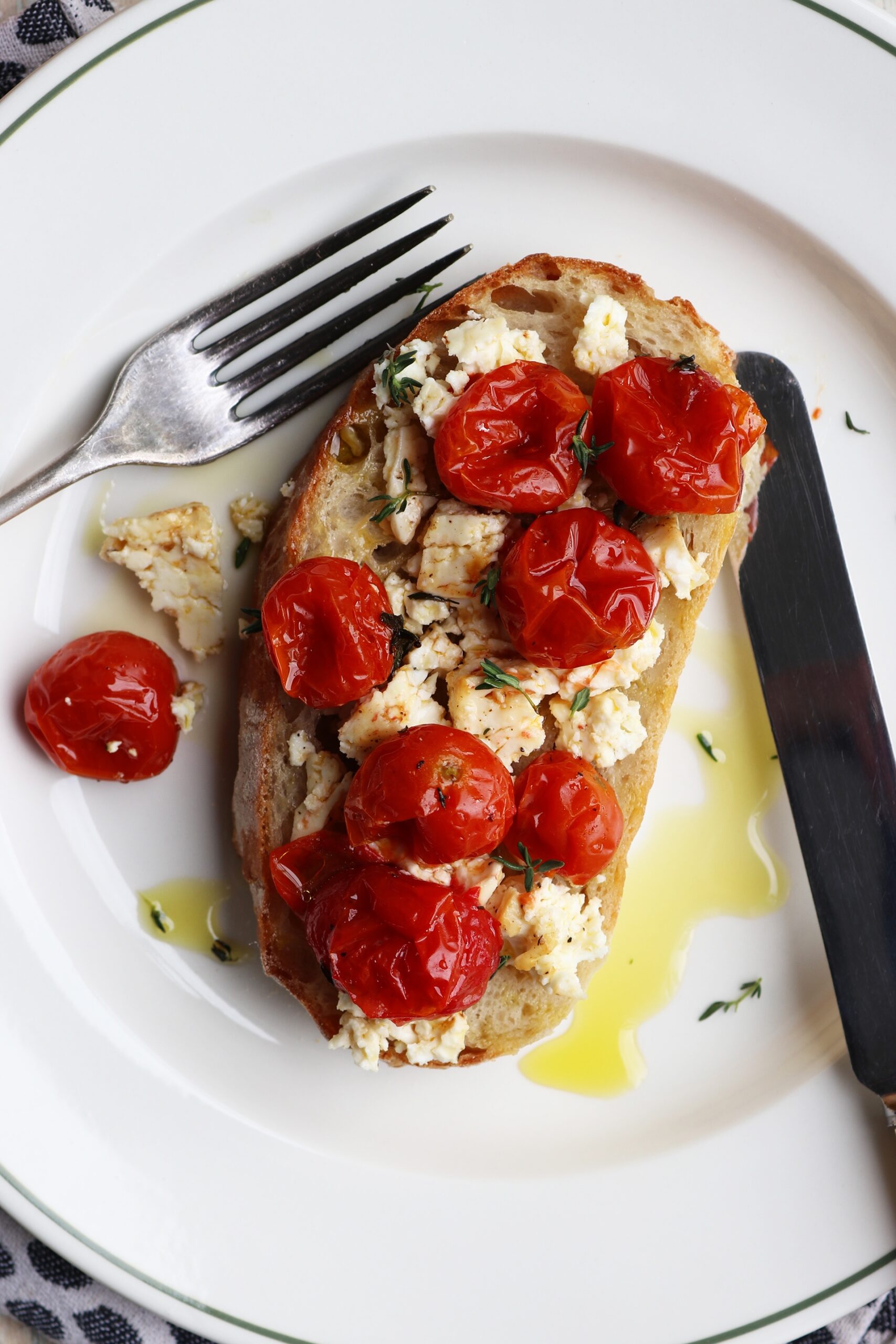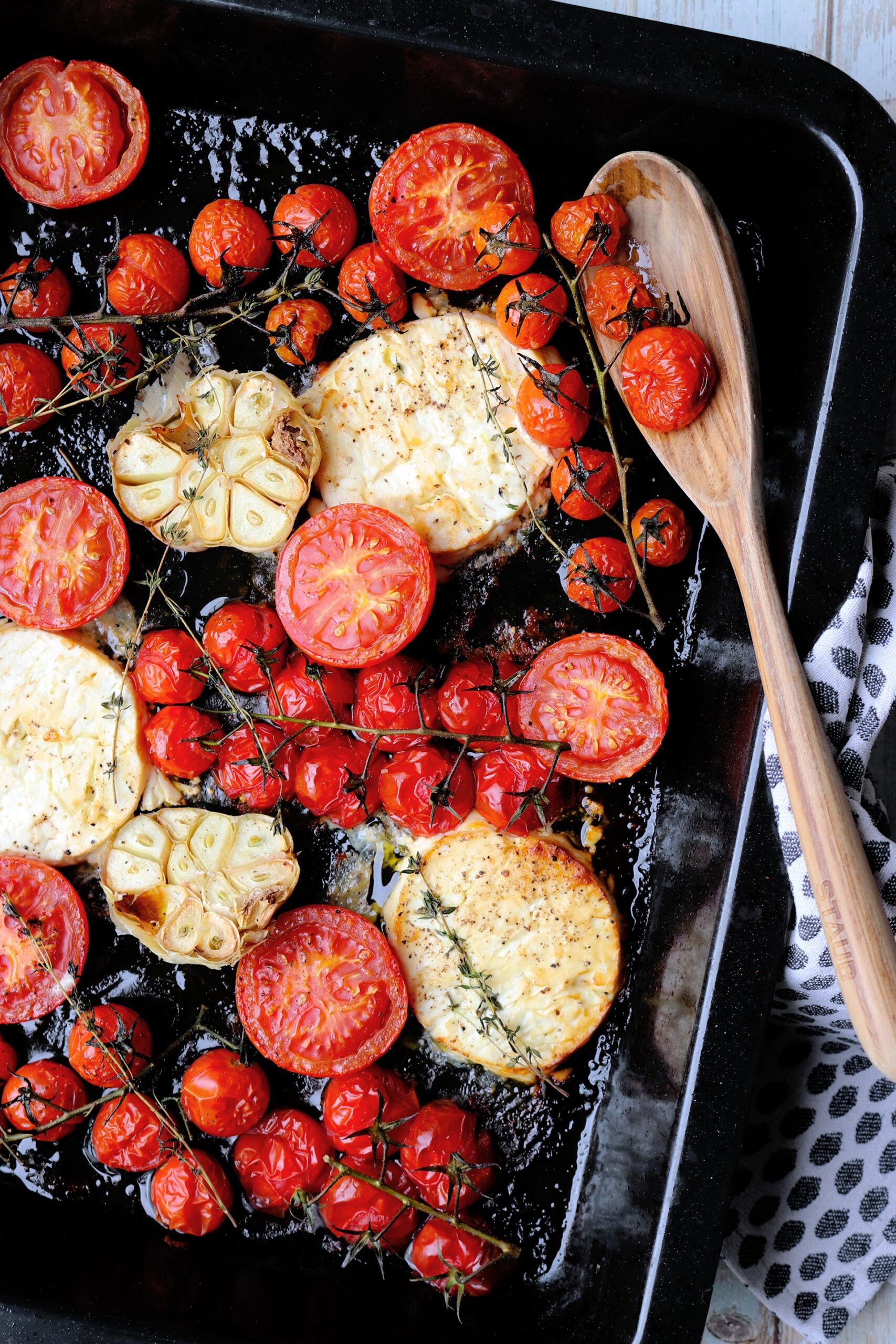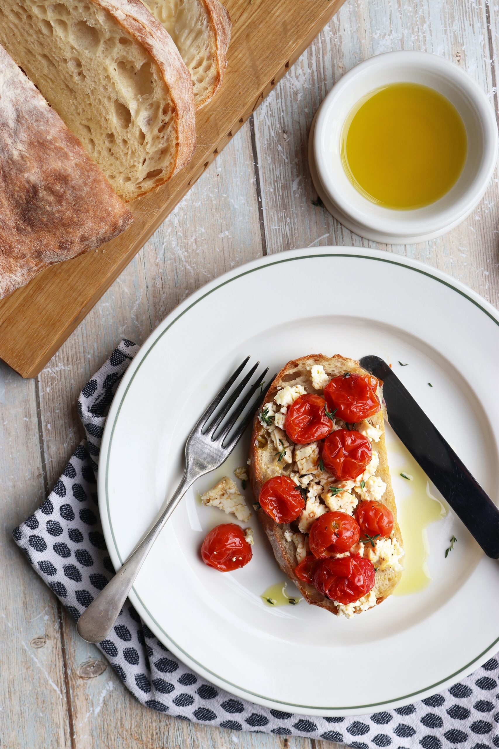Baked tomato and feta with LAZY ciabatta Published: 12-10-2025 This delicious recipe is perfect for gathering round the table with friends for an easy, low maintenance lunch or dinner. Just pop everything down in the middle of the table and let people tuck in. To accompany the delicious tomato and feta bake, one of our amazing clients shared with us her Lazy Ciabatta recipe, its really delicious and super simple to prepare. See Liz’ instagram here. Ingredients For the Ciabatta 400g of good quality strong white bread flour 350ml of warm water 10g of salt 10g of instant dried yeast 20ml of olive oil For the Tomato and Feta Bake 3 large tomatoes, halves horizontally 3 vines of cherry tomatoes 3 rounds of feta cheese 1 whole head of garlic, halved horizontally Salt and pepper A few sprigs of thyme Olive oil to coat A squeeze of lemon Method For the ciabatta Begin by mixing the flour with the yeast and salt, then add the warm water. Combine until no lumps remain, then add 20ml of olive oil around the edge of the ball of dough. Cover loosely with a tea towel and place to one side. After 15 minutes, perform your first stretch and fold (Do this by pulling one side of the dough up and folding it over itself 4 times, rotating 45° between each stretch. Leave to rest covered for 30 minutes. Second stretch and fold. Leave to rest covered for 30 minutes. Third stretch and fold. Leave to rest covered for 30 minutes. Forth stretch and fold. Leave to rest covered for 30 minutes. Carefully tip the dough out onto a floured surface, keeping as much air in the dough as possible. Using flour to stop the dough from sticking to your hands shape into an approximately 40cm long loaf. Dust a baking tray with flour and place the loaf in the center. Place the loaf in the oven and place an oven proof dish with a few handfuls of ice on the shelf below for steam (this helps create crust). Bake the loaf for 20-25 minutes and leave to cool completely before cutting. For the Tomato and Feta Bake For the tomato and feta bake, place all the ingredients onto the tray, cut sides up and coat with olive oil. Season well with salt and pepper, then add a drizzle of lemon juice and a few sprigs of thyme. Bake for 45 minutes until the feta is golden and the tomatoes are roasted. Serve warm with the ciabatta and enjoy. Images: Humphrey Munson Tableware: John Julian Share this article Copy this link https://www.humphreymunson.co.uk/baked-tomato-and-feta-with-lazy-ciabatta/ Share Copy link Previous Article Afraid of the Dark? Here’s Why It Might Be perfect for your Home Next Article Scent your home this christmas with norfolk natural living