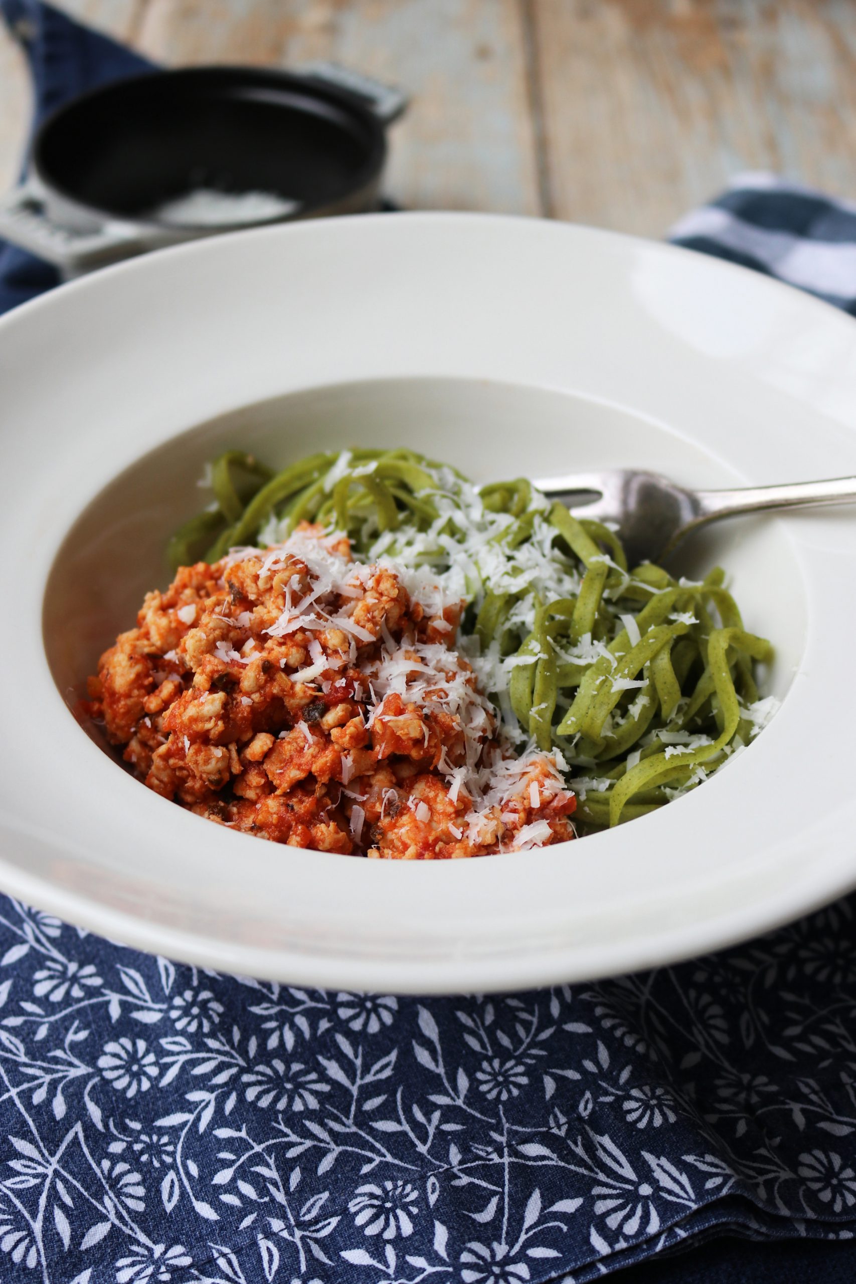 Chicken Bolognese Recipe Published: 27-02-2022 If you’re trying to eat less red meat but love a good bolognese, this is a great recipe using either minced chicken or turkey mince. If you can get the darker leg/ thigh mince the result will be even better. Ingredients (Serves 4) Olive oil 1 onion, peeled and finely chopped 2 cloves of garlic, peeled and finely chopped 500g chicken or turkey mince 1 glass of white wine 1 can of chopped tomatoes Bomba! tomato paste Around 3 tablespoons Handful of fresh herbs – we used oregano, rosemary and thyme Spinach tagliatelle Around 400g or enough to serve 4 Sea salt and freshly ground black pepper Parmesan or pecorino, grated Method 1. Heat a good glug of olive oil in a large pan over a medium heat. Add the onion and cook out for at least 5 minutes or until soft and translucent. 2. Next, add the mince and stir well to combine – once it is all cooked through, add the garlic, the wine and stir well. Let it cook out a little longer. Then add the Bomba! tomato paste, if you cannot get Bomba – just use regular tomato purée. Combine thoroughly then add the herbs, tinned tomatoes and season well. Simmer over a low heat for 10-15 minutes. 3. Whilst the mince simmers, cook the pasta in a large saucepan of boiling salted water according to the instructions on the packet. Drain, and then serve in bowls with the bolognese. Top with freshly grated parmesan or pecorino. Images: HM Share this article Copy this link https://www.humphreymunson.co.uk/chicken-bolognese-recipe/ Share Copy link Previous Article Lentil & Mushroom Bolognese with Linguine Next Article South-End Project | Westbury Garden Rooms