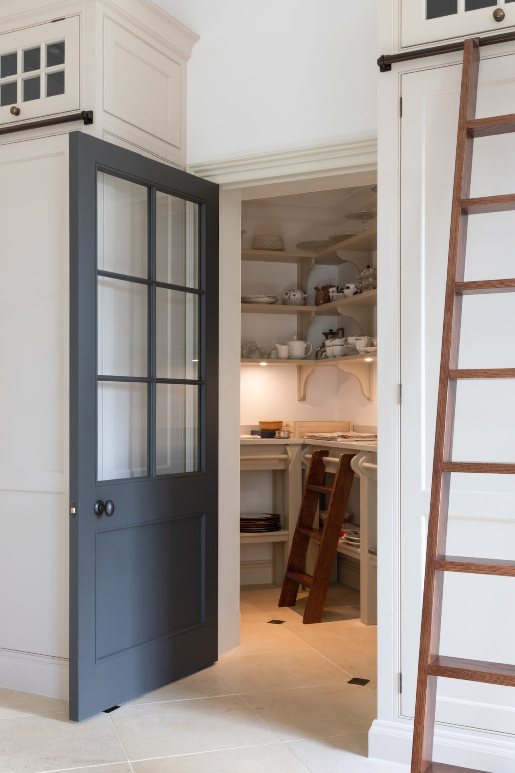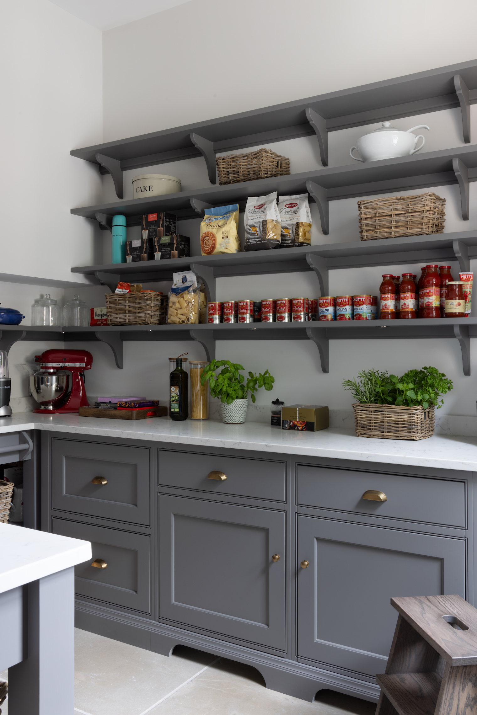 Creating your ‘wow’ pantry Published: 10-08-2025 Once a hidden, utilitarian space for storing bread and dry goods, the pantry has come a long way from its traditional English roots. With the rise of open-plan living, today’s kitchens call for smart, stylish storage solutions that keep clutter at bay. Enter the modern pantry, a functional yet beautiful extension of the kitchen, designed to work hard behind the scenes while blending seamlessly into everyday living. Whether you’re starting from scratch or rethinking your current setup, we’ve noted a few key elements of the pantry and their features to inspire you to create a space that’s as practical as it is beautifully considered. Storage Great Brickhill project Thoughtfully designed storage is at the heart of a truly functional pantry. Open shelving enables the space not to feel too dense but maintain plenty of storage space, perfect for displaying jars, dry goods, tins, baskets or those go-to ingredients you reach for daily. WATERFORD HOUSE Soft-close drawers are perfect for storing items out of the way and reduce visual clutter. Who doesn’t love a snack drawer? nickleby pantry, felsted Countertop space is always so welcome in a walk in pantry; it’s useful for storage of course but also serves as great prep space and really useful for plating up desserts and keeping things like a cheese board or birthday cakes out of the way until needed. WESTerham project The prep countertop space in a walk in pantry is also popular for frequently used countertop appliances. In the Westerham project the client does all the baking in the walk in pantry so she keeps everything she needs in there with the kitchenaid on the counter. It’s this careful layering of storage and thoughtful design that makes the pantry not only work harder but feel effortlessly organised. doors Surrey Hills Project The doors of the pantry set the tone for the room and influence how the space feels and flows. Pocket doors are a clever, understated choice, sliding away neatly into the wall to preserve openness. A firm favourite for our clients is our Oxford Doors by HM. Traditional glazed doors such as this offer a glimpse inside while keeping clutter at bay. They also allow natural light to pass through which can be helpful, especially if there are no windows which is often the case in pantries. Slim double doors are also favoured by HM clients, offering a slightly grander look. Another option is secret doors, where doors are integrated into cabinetry which can help when continuity needs to be preserved or simply for a unique wow factor. Choosing the right door is a really considered decision and you have to think about how you live day to day. Do you want to close off the space completely with a solid door, leave it open most of the time with a pocket door, or keep a glimpse in view with a glazed door? lighting Surrey Project Lighting is often the quiet hero of a well-designed pantry. Built-in lighting under shelves adds a layer of warmth, making the space feel both welcoming and open. It’s about more than just visibility; it’s about atmosphere. Discreet spotlights in the ceiling or above key zones can help to define the space. Together, these elements create a pantry that feels as beautifully intentional as the rest of the kitchen, illuminated not just for function, but for feeling. flooring Ascot Project Flooring in a pantry should be both practical and visually appealing, grounding the space with character. For example, our Kensington Chequered Marble does exactly that. Its classic look adds a subtle sense of classic English formality and style, while the natural stone brings depth, texture, and durability underfoot. Flooring such as this can offer an opportunity to define different zones and add a striking feature in a space where function leads. accessories Haslemere project At HM we offer a range of accessories to boost the functionality and practicality of our pantry projects. The Mini Steps and ladders (both full height and counter height) are functional accessories that bring higher storage spaces into reach, not only making it easier for the user, but it means the full wall space in the pantry can be used in its entirety. Our bespoke spice and condiment racks are another popular option that creates plenty of storage for smaller bottles and jars and ensures they are easily accessible. They can also be placed in areas where cabinetry wouldn’t fit meaning storage space is maximised. At HM every room is considered with equal measure, the functionality and look of the pantry are just as important as the kitchen and our expert design team are dedicated to helping you get the most out of your space. If you have a project in mind you’d like to discuss with us please contact us here. Images by Paul Craig Share this article Copy this link https://www.humphreymunson.co.uk/creating-your-wow-pantry/ Share Copy link Previous Article Porta Romana – Where light meets art Next Article Herby Roast Chicken Thighs with Fresh Kale Salad