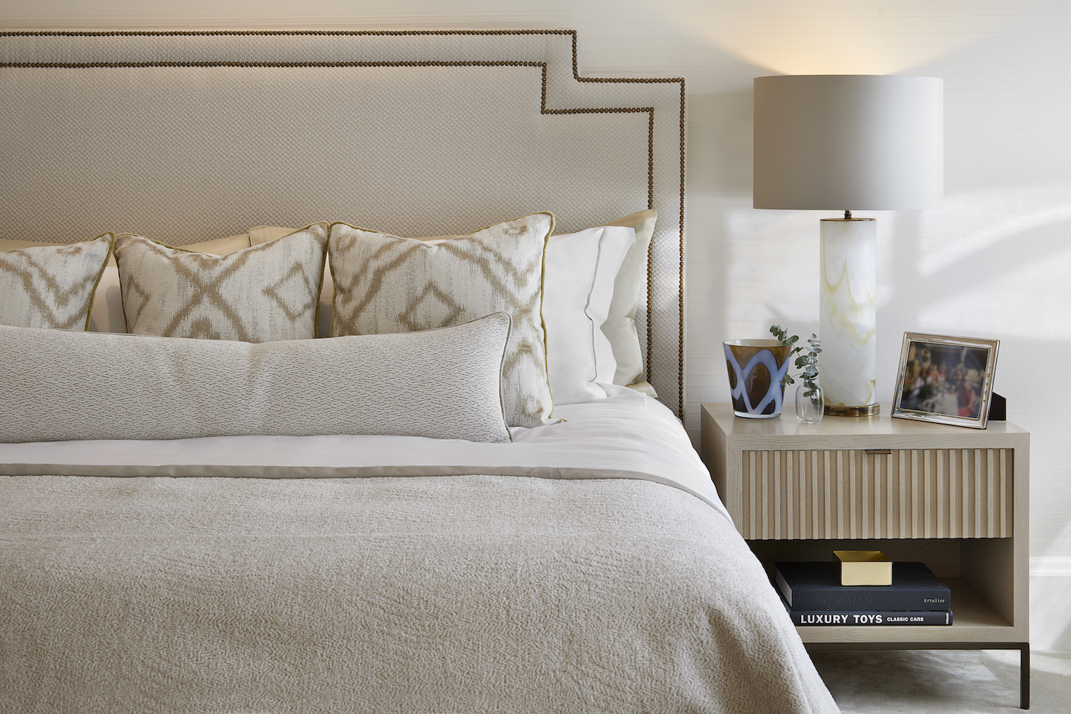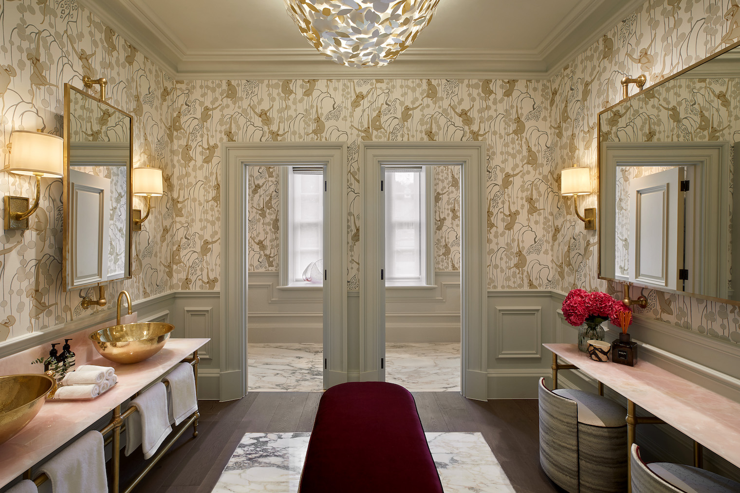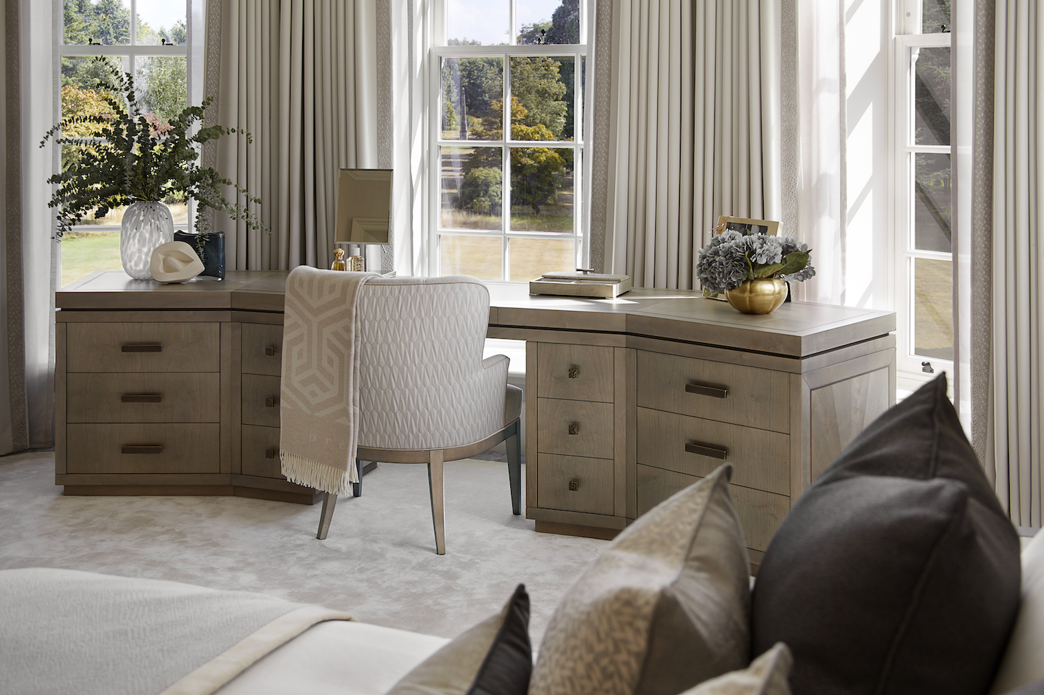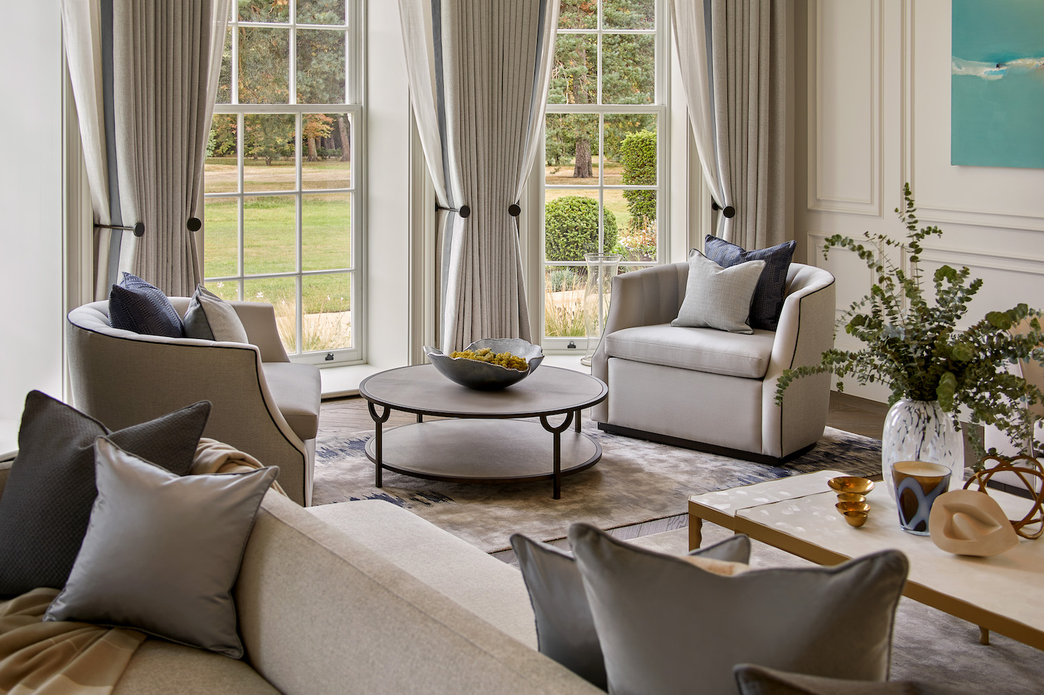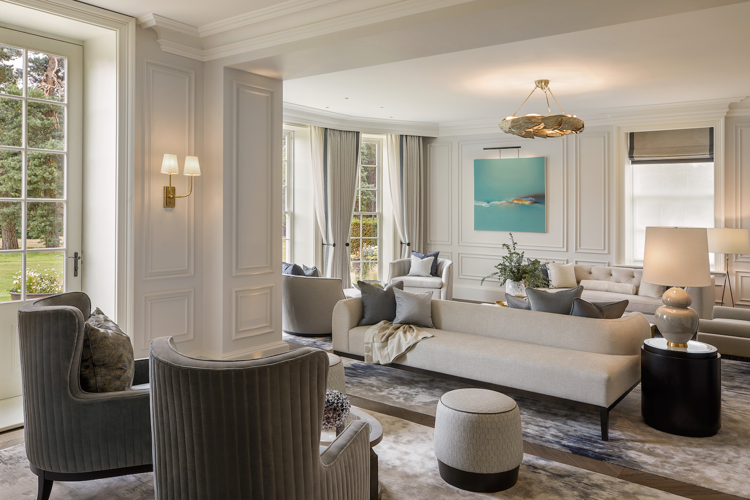 Design Notes with Helen Green Design | Surrey Project Published: 02-04-2023 To create a great house really depends on great clients whose vision, energy and time will ultimately define the architecture and interior design. Set in the beautiful Surrey Hills Area of Outstanding Natural Beauty, this residential estate has been extended and renovated to create an outstanding family home spanning over 25,000 sq ft. Our clients shared their holistic view of the architecture, interiors and landscape design during the initial design meeting; this was a chance to create a truly sympathetic relationship between the house and the surroundings promoting the laws of harmony and proportion. The vision for this renovation was directed by our clients whose unwavering commitment and unique vision has transformed it from a list of needs, wants and aesthetic preferences into a truly distinctive and enduring family home. They appointed Humphrey Munson and Helen Green Design to assist with undertaking this transformation and we caught up with Creative Lead at HGD, Alexandra Jurkiewicz, to discuss the interior design in more detail… The clients always had a strong vision from the start, so the original brief for Helen Green Design was to create a home that felt welcoming and that the family felt connected to. And so this connection was very important from the beginning; there is huge meaning in all of the rooms within the home whether it’s a nod to Scottish roots, or a colour palette inspired by a favourite holiday – this is a home that the clients wanted to walk into and feel instantly at ease with. Describing this particular project in a nutshell is tricky; it’s a classically designed house with a considered and thoughtful layering of finishes, textures and materials. When you walk in to any of the rooms, you feel that there is an organic sense of space, that everything has been carefully designed to fit the scale and proportion perfectly. Describing the design process as ‘pure joy’, the team at Helen Green led by Alex, have executed the design and installation of the interior design to the highest standard. Hours and hours across several years were spent in design development with input from the clients throughout in creating bespoke pieces to suit the house perfectly. Given the scale of the rooms in the home, most of the furniture was custom made for this project with upholstery pieces in particular designed to suit the need and function of the room. This incredible sofa design was created for this more formal drawing room which has an unusual shape; it works so well creating an easy sense of flow around the room as a whole but neatly divides it into two, thereby creating distinct areas to relax and unwind. The formal dining room brings in a slightly bolder design using pattern to create a little energy in the space so when you walk in you sort of say ‘wow’ but its under your breath. Nothing about this house is ostentatious, it’s a classic English country house with a modern and young family feel to it. The dining room is an exquisitely designed space with incredible views across the gardens. Beautifully curated tableware with plenty of personality makes each dinner party feel so individual and special with integrated lighting throughout to create the perfect ambience. The catering kitchen by HM is located just across the hallway through a secret door (not shown) to service the dining room. A favourite family space is the snug which is just located off the main open plan kitchen and dining area. Featuring comfortable but durable fabrics, we love the softness and layering of finishes including the textured wallpaper which instantly makes this space feel warm and cosy. The ground floor guest bathroom is a nod to private member’s club Annabel’s with its indulgent pink onyx, detailed wallpaper and brass hardware throughout creating the most exceptional powder room. A beautifully executed and fun room for guests to use, this inspiring space was completely directed by the clients who wanted a gentle reminder of their years spent living in London. The master bedroom is a triumph of quietly comfortable luxury. This is truly a sanctuary in which to relax after the day is done. The children’s rooms are thoughtfully decorated so that there is longevity and flexibility as the children get older. Again, durable finishes are key in these rooms, but the neutral and adaptable palette is perfect for now and later on too. Storage and planning have been integral throughout the design process for Helen Green Design. Thoughtfully specified fabrics and wallpapers pair perfectly. We love that the overall design aesthetic of the house is threaded through each of the rooms while still retaining their own personality. This guest room has beautiful detailing throughout. This was an incredible project to be part of, and the property perfectly tailors Helen Green Design’s timeless aesthetic to balance a classic contemporary home in a country setting whilst being functional for all family needs. Images kindly supplied by Helen Green Design Share this article Copy this link https://www.humphreymunson.co.uk/design-notes-with-helen-green-design-surrey-project/ Share Copy link Previous Article AlmaLusa Comporta | Portugal’s coolest new coastal retreat Next Article The Great Debate | Induction vs Gas Cooking