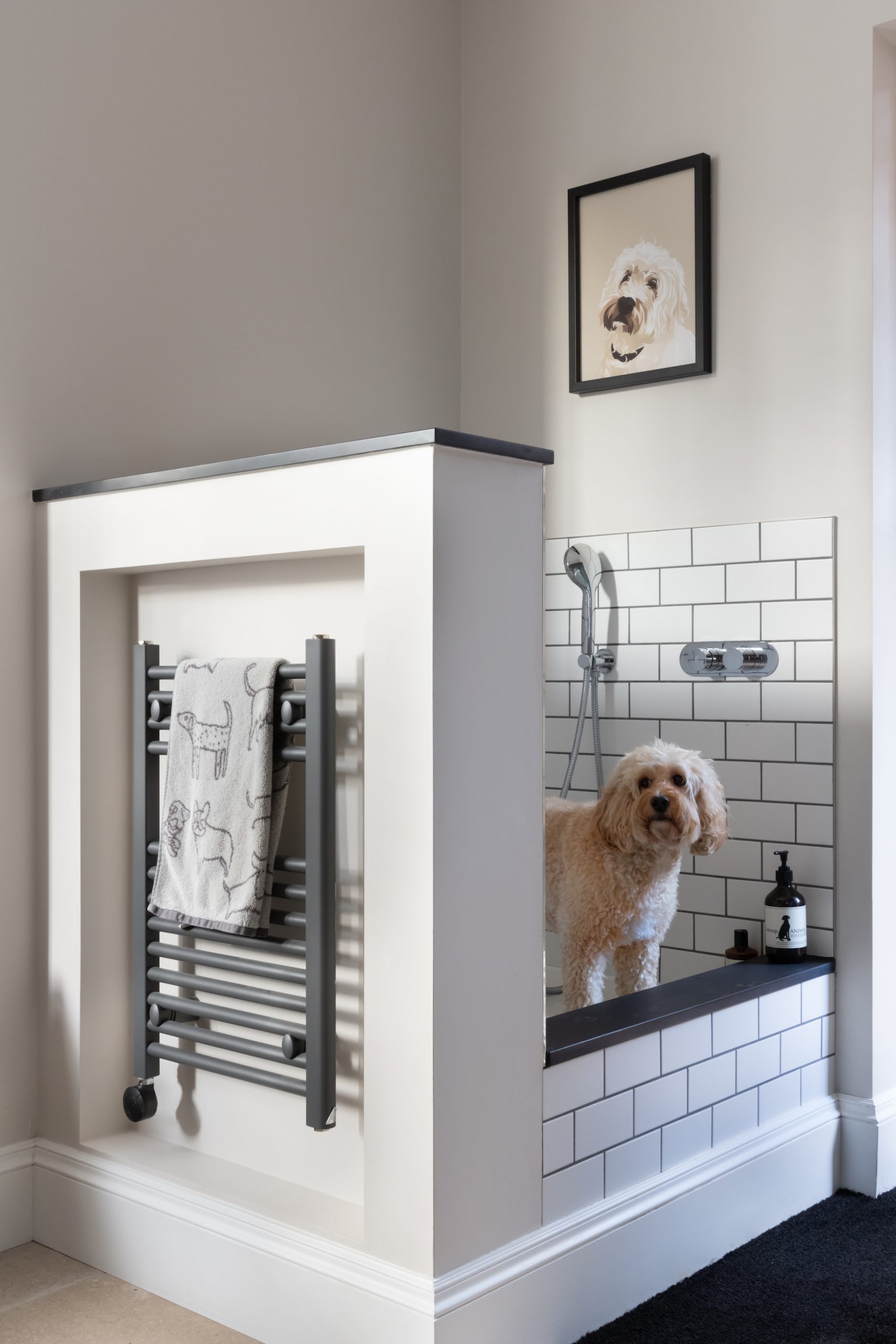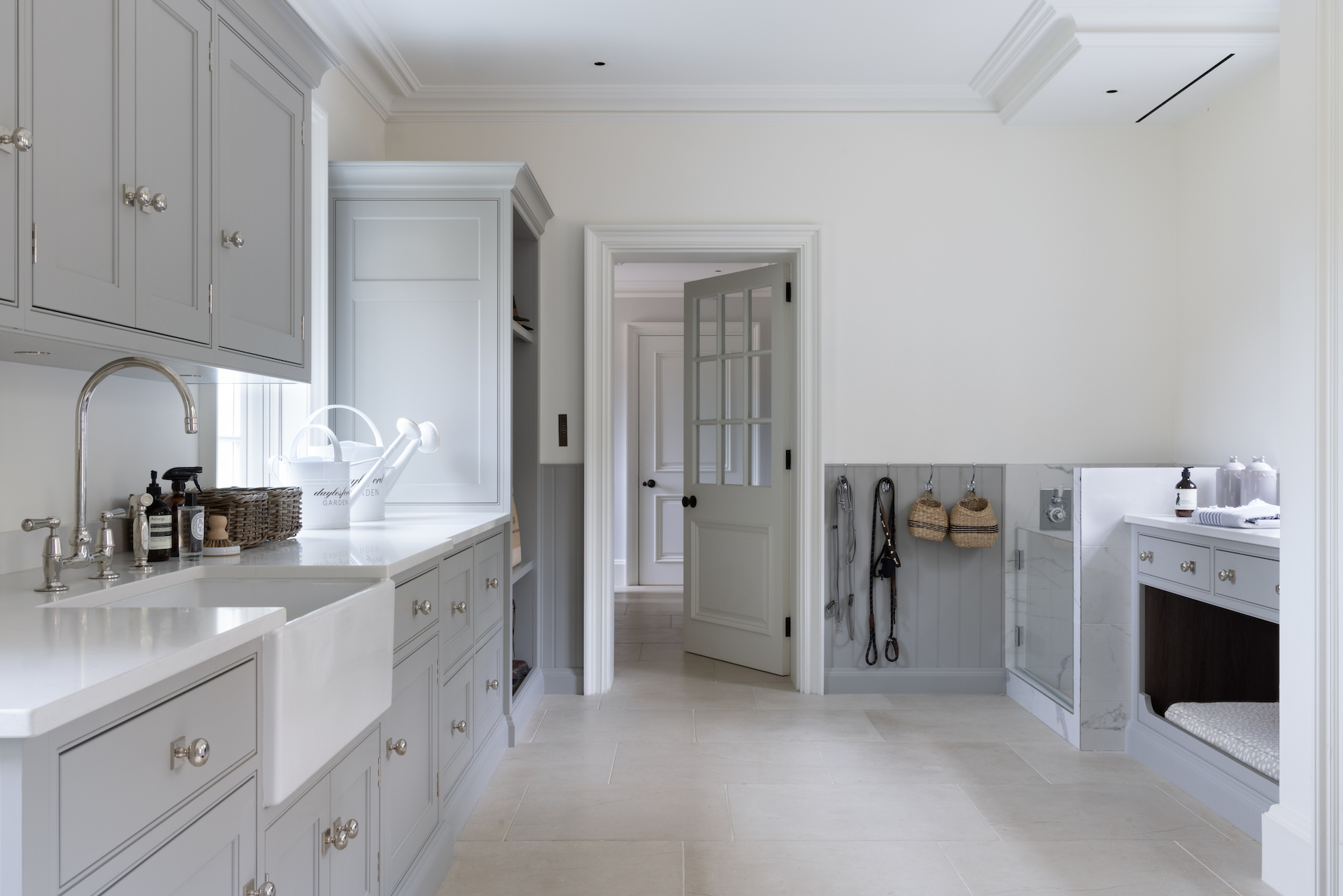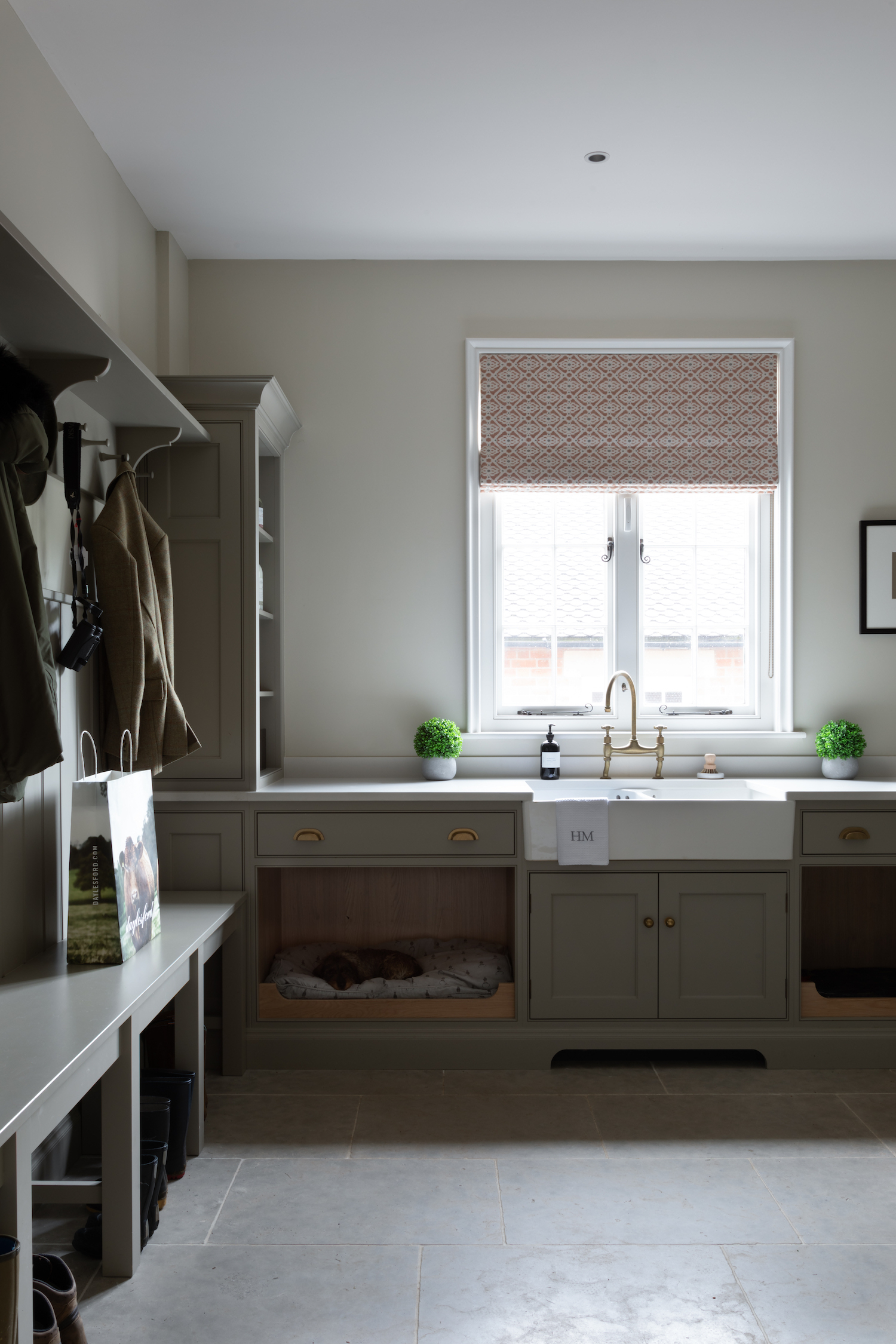 Design Tips For Creating The Perfect Pet Friendly Interiors Published: 02-07-2023 As pet lovers at Humphrey Munson, we understand that our four-legged companions are an integral part of our families. Their presence brings joy, love, and sometimes a bit of chaos into our lives. When it comes to designing your homes, it’s important to consider their needs too and create spaces that are not only stylish but also pet-friendly. We wanted to share a few simple tips on how to seamlessly integrate practicality, style, and comfort to ensure a harmonious environment for both you and your beloved pets… Pets, especially dogs and cats, can unintentionally cause wear and tear in our homes. When designing pet-friendly spaces, opt for durable materials that can withstand scratches, stains, and paw prints. In the kitchen, consider using pet-friendly flooring options such as limestone or natural effect porcelain, so that are easy to clean and resistant to moisture. Some wooden flooring like engineered oak can work well, but ensure you choose a tone that has enough grey to knock out any orangey tones, but is natural enough so that you don’t notice scratches! Verbier engineered oak is a great example of this. In boot rooms, we would always suggest opting for hard-wearing flooring, such as limestone – our bestseller for boot rooms at HM is the Earl Grey limestone followed by the Ragdale limestone, it’s so tough and you don’t notice every little mark! Pets come with their own set of belongings, from toys to food bowls, leashes, and grooming supplies so incorporating thoughtful storage solutions can help keep these items organised and within easy reach. In boot rooms, install hooks and shelves to hang leashes and store pet accessories neatly. By keeping these items organised, you can maintain a clutter-free and functional space. Installing a dog shower in your boot room is a brilliant idea for several reasons. First and foremost, it provides a convenient and dedicated space for cleaning and grooming your furry friend. No more struggling to lift them into a regular bathtub or dealing with messy bathroom floors. With a dog shower in the boot room, you can easily rinse off muddy paws and give your canine companion a refreshing bath right after their walk. It saves time and effort, allowing you to maintain a clean and hygienic home while keeping your pup happy and comfortable. Additionally, the boot room’s proximity to the entrance means you can quickly clean your pet before they track dirt and debris throughout the rest of the house. By incorporating a dog shower, you’re creating a functional and practical space that truly caters to your pet’s needs while effortlessly blending it into your home’s overall design aesthetic. Including a separate washing machine and tumble dryer in a utility area just for pets is an excellent idea if space allows. The unique needs of our beloved pets require special attention, particularly when it comes to their bedding, blankets, and other accessories. Having a dedicated set of appliances allows you to maintain cleanliness and hygiene specifically for your pet-related items. By separating their laundry from your regular clothes, you can avoid any potential transfer of pet hair, odours, or dander. This not only ensures that your own laundry remains free from any unwanted pet-related elements but also guarantees a thorough and effective cleaning process for your pet’s belongings. With a separate washing machine and tumble dryer, you can choose the most suitable settings and temperatures to tackle tough stains, remove pet hair, and eliminate any lingering odours. This level of care and attention not only promotes a healthier living environment for you and your pets but also extends the life and quality of their bedding and blankets. When designing your kitchen or boot room, think about the flow of movement for both you and your pets. Create designated areas where they can eat, drink, and rest comfortably, away from busy walkways. For example, include a cozy pet bed or a cushioned bench in the boot room where your furry friend can relax while you put on your shoes. Pets love spending time outdoors, so it’s important to provide them with easy access to the garden or backyard. Consider incorporating a pet door or a designated pet entrance in your boot room to allow your furry friend to come and go as they please. If a pet door is not feasible, ensure that the boot room has a designated area for leashing up before heading outside. Incorporating a utility sink in the boot room can also be handy for quick pet baths after muddy adventures. When selecting fabrics and finishes for your kitchen and boot room, opt for pet-friendly options that can withstand wear and tear. Choose stain-resistant fabrics for upholstery and curtains, making it easier to clean up any unexpected accidents. Opt for paints with a durable finish that can be wiped clean easily. Additionally, consider using pet-friendly wallpapers or tiles that are resistant to scratches and can withstand occasional paw prints. Designing pet-friendly spaces is all about finding the perfect balance between functionality, style, and the needs of our furry friends. By incorporating durable materials, thoughtful storage solutions, and a pet-friendly layout, you can create harmonious spaces that cater to both you and your pets. Share this article Copy this link https://www.humphreymunson.co.uk/design-tips-for-creating-the-perfect-pet-friendly-interiors/ Share Copy link Previous Article Master The Art Of Miso Cod @ Home | Cooking with Gaggenau Next Article The Epitome of HM Style & Comfort | Introducing the Langham Square Table & Bentley Dining Chairs