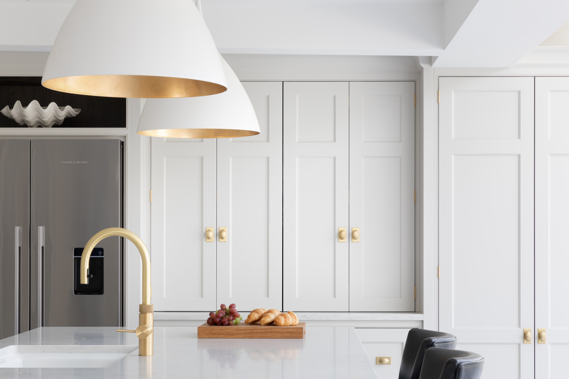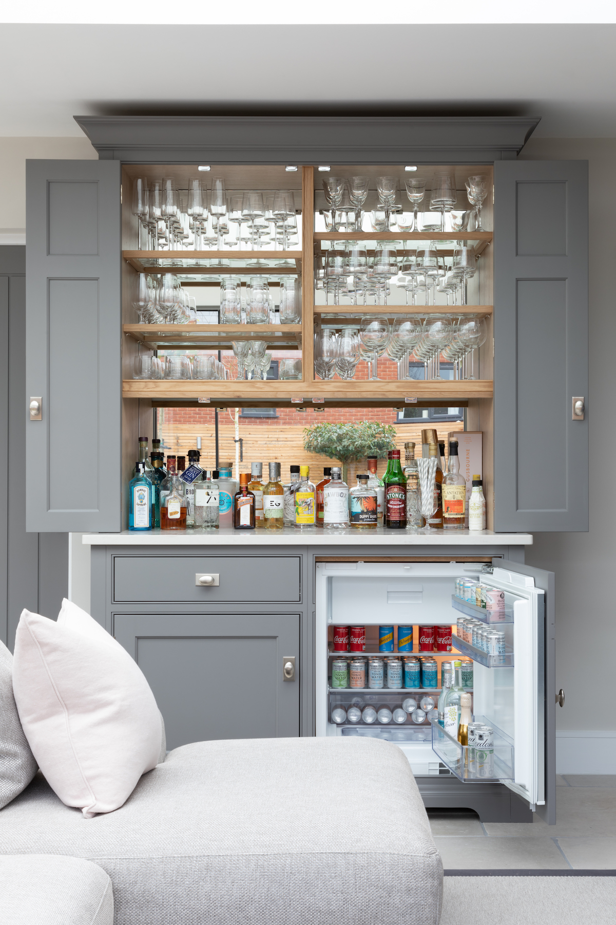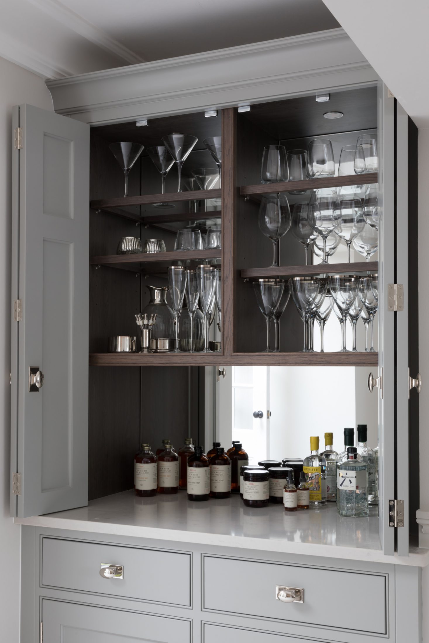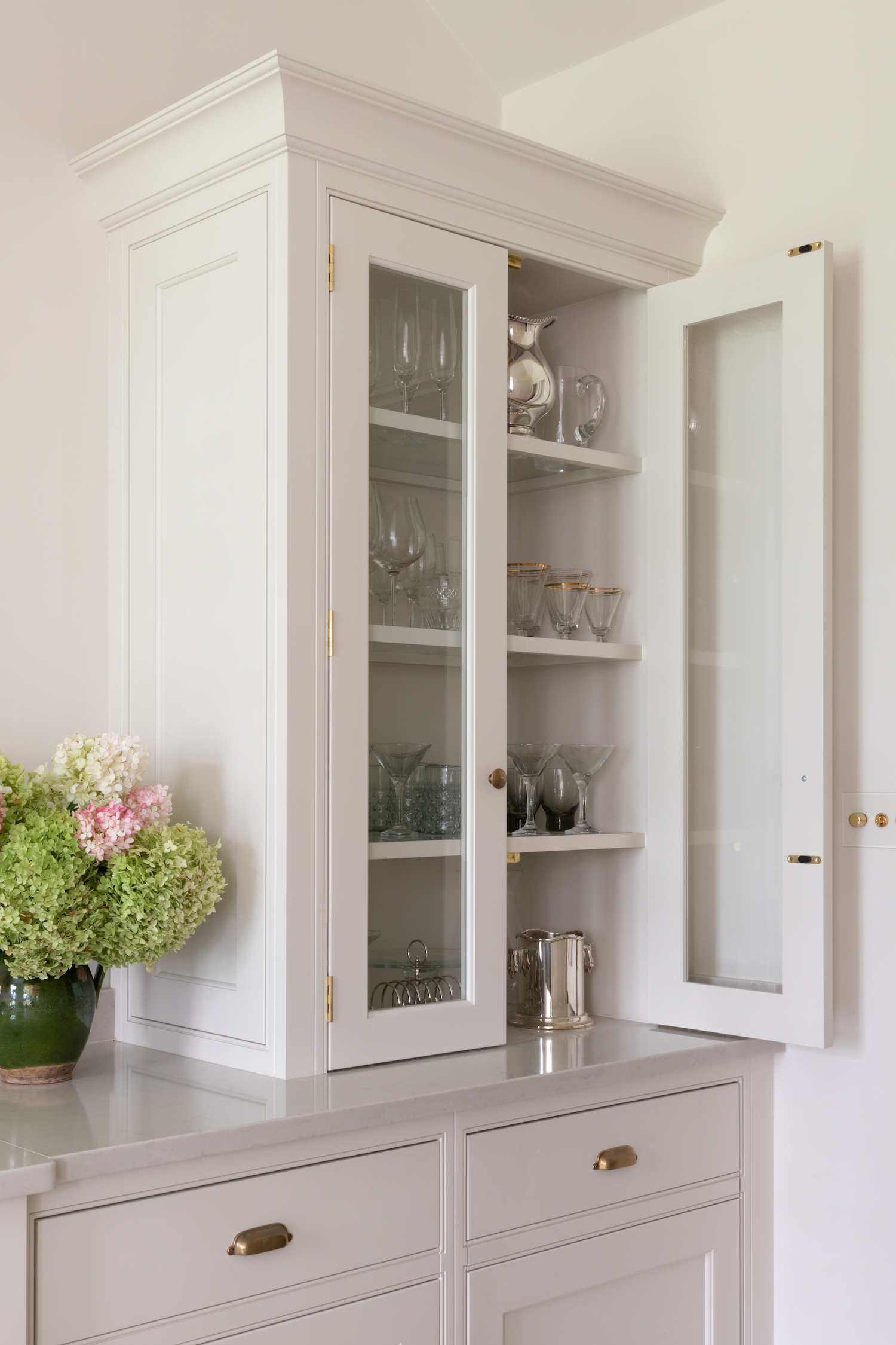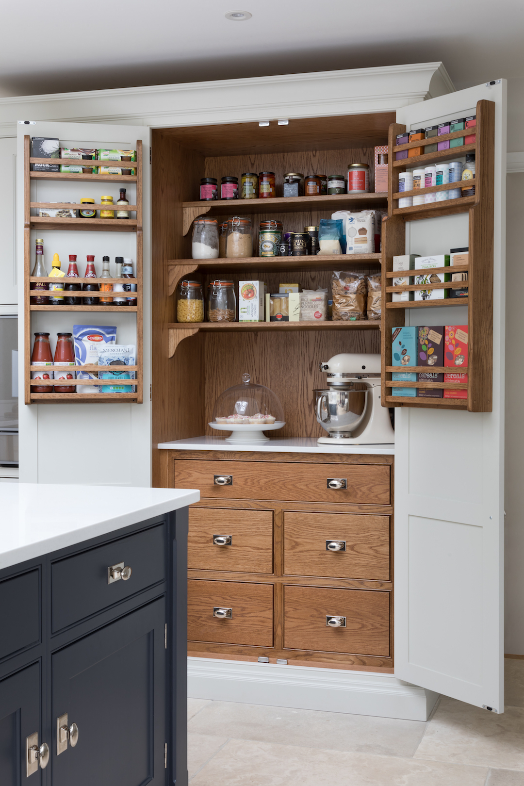 Design Your Dream Kitchen | Smart Storage Published: 31-12-2020 At HM we subscribe to the mantra that when it comes to storage, more is always more. There are some key elements we love to include for easily accessible storage in a kitchen design and we wanted to share those with you here… 1 / C R O C K E R Y C U P B O A R D The crockery cupboard comes in a few different guises, but each serves the same function – a space to store glassware, tableware and servingware in one convenient spot. The Hampstead project has a full height crockery cupboard for storage to the left hand side of the integrated Gaggenau fridge freezer. The interior is American walnut, while the exterior Spenlow cabinetry is finished in HM Tailored Grey. Designed as part of a scullery just behind the main kitchen, this countertop crockery cupboard can be used to store a plethora of tableware. The interior is HM Classic oak while the painted exterior Nickleby cabinetry is HM Farthing. This countertop cupboard at the Knightsbridge project is glazed with timber framed glazed shelves and has integrated lighting included to illuminate this cabinetry in the evening. 2 / P A N S T O R A G E Pots and pans are used so frequently in a kitchen that they are a special consideration when planning the design. Location is key – keep the everyday ones nearby and in drawers, while less frequently used options can be stored further away in cupboards. Two sets of three drawer chests either side of the Wolf range cooker at the Hampstead project provide masses of storage for pots and pans. The homeowners at the Crouch End project love to cook and have a huge amount of kit that needs to be easily accessible. We included these pot cupboards either side to allow for easy access to the equipment and accessories stored within. 3 / B R E A K F A S T C U P B O A R D As the busiest meal of the day, breakfast is all about getting what you need (coffee!) and what the children need, and doing it quickly! The breakfast cupboard provides space for the toaster and coffee machine as well as other essentials. The breakfast cupboard has space for the toaster and coffee machine as well as an integrated Gaggenau microwave for porridge. Spice and condiment racks maximise storage space in this hard-working cupboard. A similar design at the Warwickshire project has the integrated Miele microwave set above, and countertop space below for the toaster and coffee machine and also has the benefit of bi-folding doors so this cupboard can be left open when in use or closed away when not required. 4 / D A Y P A N T R Y One of the most requested items for an HM kitchen is the day pantry – a classic design with open shelving, countertop space and drawers to hide away all the stuff you don’t want out on show. The main storage run in the North London project features this full height cook’s pantry providing copious amounts of dry food storage and is conveniently placed next to the French door fridge freezer. The day pantry at the Langton House project in Theydon Bois has HM weathered Smithfield oak interiors with painted Spenlow cabinetry on the exterior finished in HM Tailored Grey. 5 / D R I N K S C A B I N E T An essential for entertaining at home, the drinks cabinet provides a space to store glassware and prepare drinks before and after dinner. This drinks cabinet at the White House project in Beaconsfield shown open here houses glassware and bottles providing a space for preparing and serving cocktails and pre-dinner drinks to guests sat at the formal dining table nearby. Finished in bespoke colour HM ‘Farthing II’, this ultimate drinks cabinet provides the perfect spot to decant and serve wine or fix a drink with countertop space for storing spirits and an under-counter integrated fridge for mixers and soft drinks that also includes a freezer section for ice cubes. Everything you need in one place. Share this article Copy this link https://www.humphreymunson.co.uk/design-your-dream-kitchen-storage/ Share Copy link Previous Article Design Your Dream Kitchen | Layout & Planning Next Article Design Your Dream Kitchens | The Perfect Finish