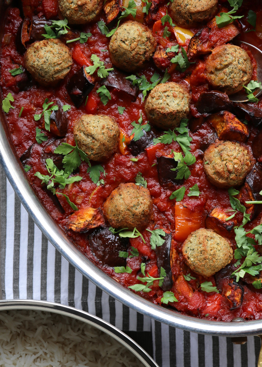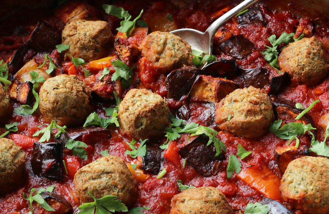 Falafel, Aubergine & Harissa Tomato Stew Published: 28-12-2021 We could have called this recipe “What to feed a vegan in winter” because it is brilliantly easy, absolutely delicious plus it’s also a really hearty dinner that will fill you up. It’s great served with plain basmati rice but we’ve had it before with quinoa (we always cook it in vegetable stock), or orzo pasta would be good too. The beauty of this recipe is that it is versatile which is great for fussier members of the family. Ingredients 1 onion, finely diced 2 aubergines, chopped into chunks 1 red pepper, large dice 1 yellow pepper, large dice 2 cloves of garlic, peeled and crushed 1 jar rose Harissa paste, 1 jar of Belazu 170g 400g of tin tomatoes 300ml of stock Salt and pepper 12 falafels (homemade or pre-prepared, either is fine) Fresh flat-leaf parsley, chopped Method 1. Preheat the oven to 180°C fan, 200°C static and line a large baking sheet with parchment or bake-o-glide. 2. Add the aubergine, peppers and drizzle with a little olive oil and sprinkle with fresh sea salt. If you like it a bit spicy, add some dried chilli flakes too. Toss to coat and roast for 30 minutes or until golden and crispy on the edges. 3. While the veggies are roasting, heat a large pan over a medium heat. Once hot, add oil (or water) and onions. Fry off for 3-4 minutes, stirring frequently, or until soft and slightly caramelised. Next, add the garlic and stir well – don’t let the garlic catch – just give it a minute. 4. Add the harissa paste and fry off a little with the onions and garlic for 2 minutes. Add the tomatoes and stock then cover. Bring it up to a good bubbling heat, and then reduce to simmer. 5. Once the veggies are done, add to the tomato stew mixture and leave for 5 minutes or so to let it all combine (when you take the veggies out, don’t turn off the oven). Season well with salt and pepper. 6. Add the falafels to the top of the stew and bake in the oven for 10 minutes. Garnish with the flat leaf parsley and serve. Images: HM Share this article Copy this link https://www.humphreymunson.co.uk/falafel-aubergine-harissa-tomato-stew/ Share Copy link Previous Article Gaggenau 200 Series | Buckinghamshire Project Next Article Gayle Warwick Fine Linen | Cashmere & Cashlinen