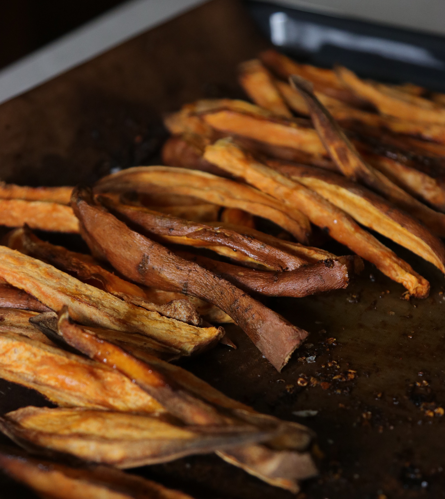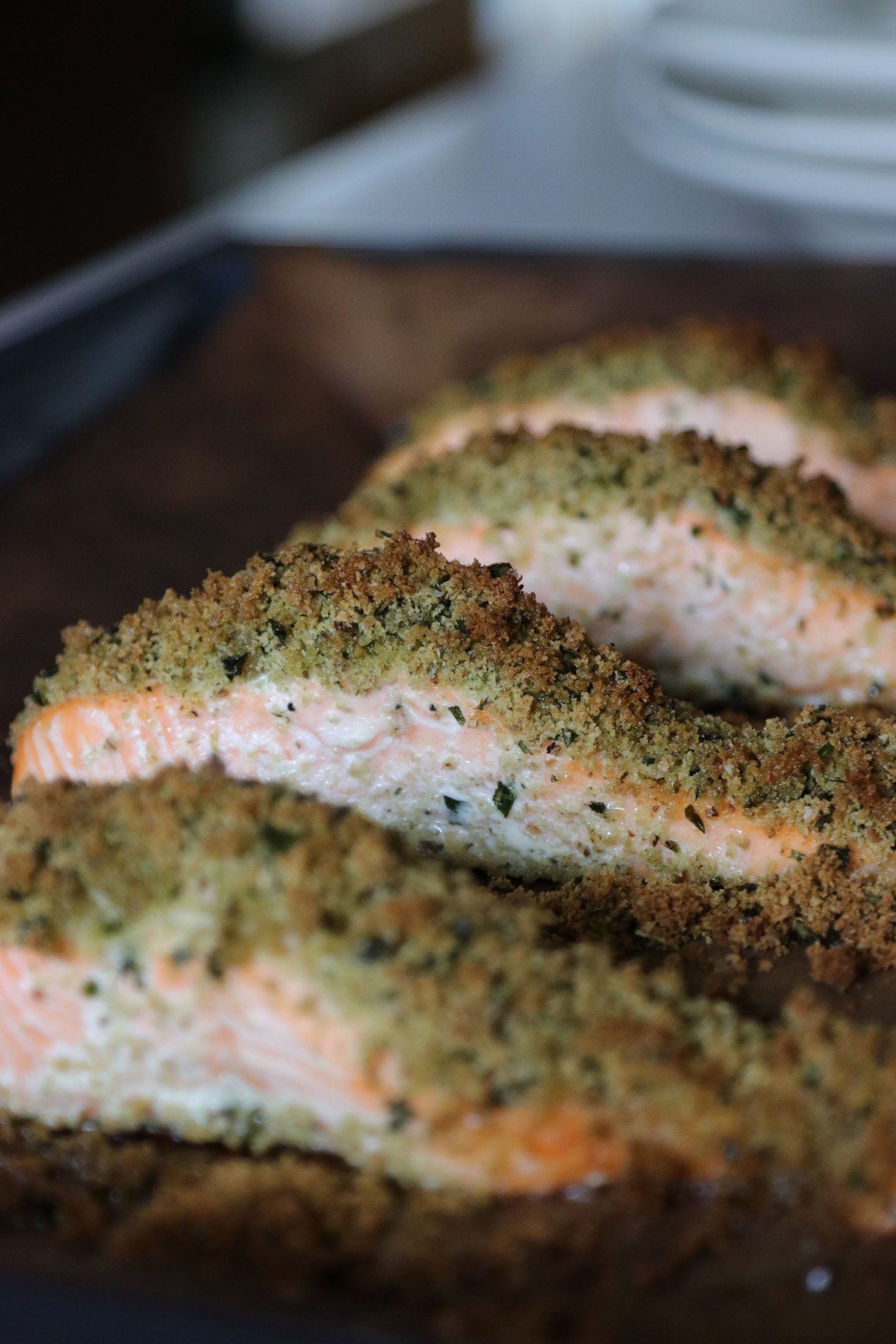 Recipe Notes | Herb Crust Salmon, Sweet Potato Chips and Parmesan Broccoli Published: 30-08-2018 Packed full of protein and essential nutrients, salmon is the perfect brain food. This tried and tested recipe with a gluten free herb crust, sweet potato chips and steamed broccoli with parmesan is the perfect candidate to feed a hungry crowd after a busy day. And it’s quick too! Ingredients 2 x large sweet potatoes 2 x slices of Gluten free bread Handful fresh tarragon 4 x fresh salmon fillet 2 x packs of tenderstem broccoli Handful of freshly grated parmesan or pecorino Salt and pepper Method 1. Pre-head the fan oven at 180C. 2. Cut the sweet potato into thin-ish strips and place on an oiled tray with baking paper and place in the oven for 30 minutes. 3. Blitz the gluten free bread in a blender with the fresh tarragon and salt and pepper until very fine. Place baking paper on a large tray along with the four salmon fillets (or use bake-o-glide which we love). Cover fillets with a large spoonful (or two) with the breadcrumb mixture and drizzle with olive oil. 4. Place salmon in the oven for approximately 15-20 minutes. While the salmon and sweet potatoes are cooking, either turn on the steam oven at 100% steam, (or fill a pan with water to put on the boil for the broccoli. Steam the broccoli for 3-4 minutes, then remove and spread out on a baking tray. Sprinkle with the remaining breadcrumbs and some parmesan and then pop in the oven for the final 5 minutes. 5. Once cooked through and browned remove the salmon fillets, sweet potatoes and broccoli from the ovens and serve with a sprinkle of salt and pepper. Images: HM Share this article Copy this link https://www.humphreymunson.co.uk/herb-crust-salmon-sweet-potato-chips-parmesan-broccoli/ Share Copy link Previous Article Recipe Notes | Moroccan Spiced Freekah Bake Next Article Recipe Notes | Cacio E Pepe