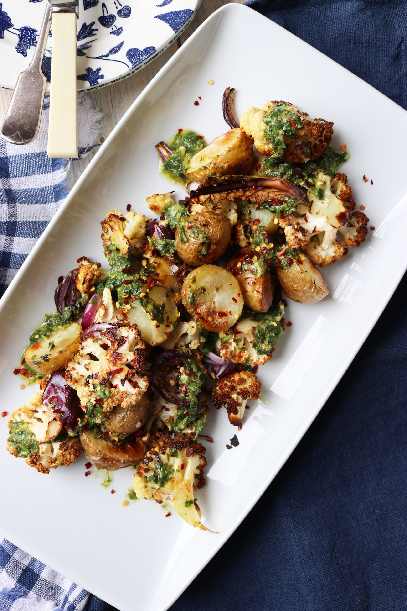 Herby Roast Potatoes, Cauliflower & Red Onion Published: 26-06-2022 This was one of those recipes that isn’t really a recipe, it’s just some leftovers in the fridge, all cobbled together to make something absolutely delicious! It’s so simple, just new potatoes, cauliflower and red onion. We put the red onion into the baking dish first then added the potatoes and cauliflower. We seasoned well with salt and pepper, drizzle of olive oil and some garlic cloves smashed up. Garnish with red chilli flakes and we added a bit of our favourite Italian salsa verde for a kick. Roasting is a great way to use up and bring back to life any veggies that are looking a bit sad in the fridge and often taste – as this did – better than a proper recipe. We always try to ensure zero waste in the kitchens at HM and this ended up being a total winner! Images: HM Share this article Copy this link https://www.humphreymunson.co.uk/herby-roast-potatoes-cauliflower-red-onion/ Share Copy link Previous Article The One Mistake To Avoid When Cleaning Natural Stone Flooring Next Article Humphrey Munson Furniture