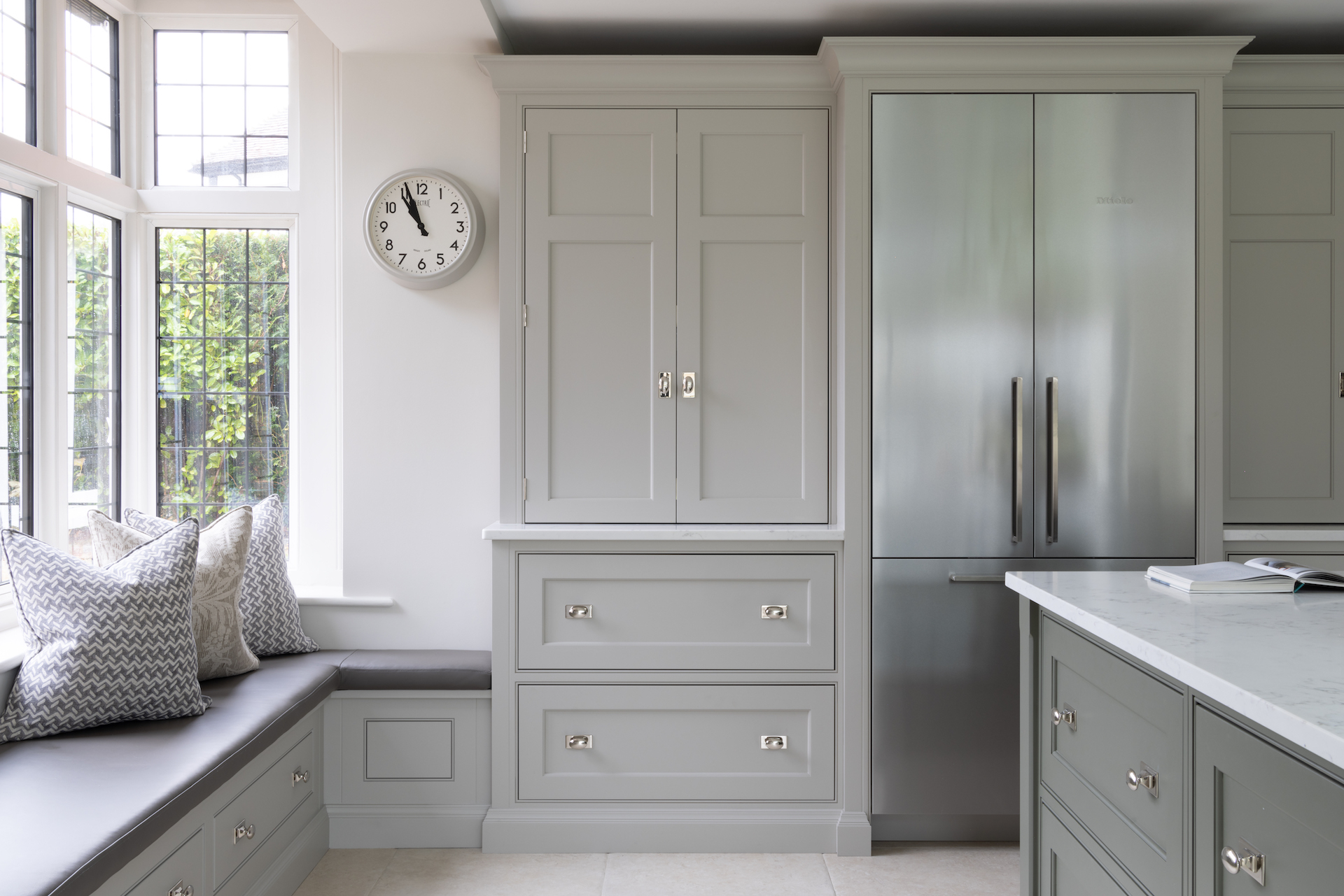 How to Create the Ultimate Sustainable Kitchen with Humphrey Munson Published: 03-09-2023 Our commitment to sustainability is evident in every aspect of our work, from the materials we use to the way we manufacture our kitchens. It’s really important to note that sustainability is a journey and although we are not perfect, we are committed to doing better for people and for the planet. When you’re planning your own project, as well as using sustainable materials, there are other ways to make your kitchen design as sustainable as possible and we have shared some of these tips below to help design a sustainable kitchen that not only looks beautiful but also promotes environmental responsibility. 1. A well designed kitchen, made to last forever At Humphrey Munson, we believe that the ultimate sustainable kitchen is one that is handmade with the finest materials, and designed to last a lifetime. If a kitchen is designed well with function first and foremost, it will always work. The HM cabinetry is renowned for its superior quality and our design team are committed to the functionality and workability of every kitchen we create. Designing a kitchen that will last a lifetime like our Humphrey Munson kitchens is by far the best way to create a sustainable kitchen. During the design stage, avoid trendy designs and choose classic styles that will remain in fashion for years to come. But if you do decide you fancy a change after 10 years, you can easily re-paint and refresh the entire kitchen. This will prevent the need for frequent renovations and reduce waste over time. 2. Maximise natural light Incorporate large windows or skylights to allow as much natural light into the space as possible. This reduces the need for artificial lighting and saves energy. In the Suffolk Project there are two large windows either side of the main cooking area. 3. Choose energy-efficient appliances Look for appliances with an excellent energy efficiency rating. They use less energy and help reduce your carbon footprint. In the UK, the energy efficiency of fridge freezers is rated on a scale of A+++ to D, with A+++ being the most efficient. Miele fridge freezers (such as the French door model in the Westerham project pictured above) typically have an energy efficiency rating of A+++, making them an excellent choice for those who want to reduce their carbon footprint and save on energy bills. Additionally, Miele appliances are built to last, so customers can be sure they are investing in a product that is both energy-efficient and built to withstand the test of time. 4. Install water-saving fixtures Choose a dishwasher with a half-load or ECO option to save water and energy. Miele dishwashers come equipped with an ECO mode setting that is designed to be more environmentally friendly than standard washing cycles. This setting uses less water and energy by extending the wash cycle time, which allows for a more thorough cleaning using less resources. By using the ECO mode setting, not only are you helping to reduce your carbon footprint, but you’re also saving money on your energy bills. Additionally, Miele dishwashers are engineered to be some of the most energy-efficient on the market, with many models receiving top ratings for their low water and energy consumption. Overall, using the eco mode setting on a Miele dishwasher is a great way to reduce your environmental impact without sacrificing cleaning performance. 5. Plan for proper ventilation A well-ventilated kitchen can improve indoor air quality and reduce energy costs. Make sure your kitchen has proper ventilation to prevent moisture buildup and improve air circulation. We love to work with Westin on our Humphrey Munson projects; Westin is the leading brand in the UK when it comes to cooker hoods. They have a range of stylish and practical cooker hoods that are designed to remove cooking odours and smoke from your kitchen. One of the things that make Westin cooker hoods really special is their high-performance extraction system that ensures efficient air purification, keeping your kitchen smelling fresh and clean. Their cooker hoods are also energy efficient and come with LED lights (we supply ours in a custom kelvin level) that provide excellent illumination for cooking. Additionally, Westin cooker hoods are available in a variety of finishes and designs to suit any kitchen style. 6. Optimise storage Efficient storage solutions can help reduce waste and promote sustainability. Consider pull-out bins and compartment recycling bins to make sorting waste easier. 7. Consider natural flooring Choose flooring made from natural materials such as limestone which is a natural flooring material that has been used for centuries due to its durability, versatility, and beauty. Limestone is a sedimentary rock composed primarily of calcium carbonate, which is formed from the accumulation of shell, coral, and other organic debris. One of the reasons limestone is considered sustainable is that it is a natural material that does not require a significant amount of energy to produce. Additionally, limestone is a long-lasting material that requires minimal maintenance and can be easily repaired if needed, reducing the need for replacement. Limestone is also a non-toxic material that does not emit any harmful chemicals, making it a safe and healthy flooring option for homes and businesses. 8. Choose LED lighting LED lighting is energy-efficient and long-lasting, making it a smart choice for sustainable kitchens because it can help reduce energy consumption and minimise environmental impact. LED lights consume much less energy than traditional incandescent bulbs and have a much longer lifespan, which means that they need to be replaced less frequently, reducing waste. Additionally, LED lights do not contain toxic materials like mercury, making them a safer and more environmentally friendly lighting option. By choosing LED lights for your kitchen, you can significantly reduce