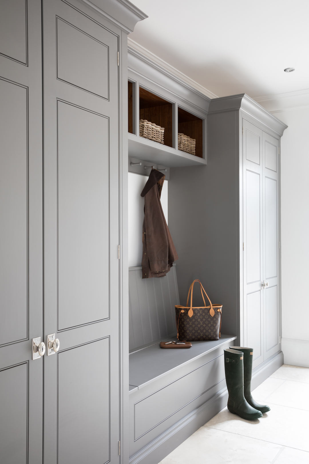 How To Design A Boot Room Published: 14-11-2018 When it comes to how to design a boot room, the key thing to remember is that this is the room that connects the outdoors to the indoors… designed as the ideal everyday entrance point to the property, a boot room provides the perfect area for a family to decamp after school or a busy weekend away. A mixture of open and closed storage as well as a hard-wearing stone flooring combine to create a multipurpose room where you can take off muddy shoes, dry dogs after wet winter walks and store away coats and bags all in one place. It’s not just a boot room anymore, it’s a glimpse of what’s to come as you make your way into the inner sanctum of the home. Designing a boot room is really about combining a mix of storage and seating. I. C L O S E D S T O R A G E Designating an area just off the main kitchen, ideally near the back entrance, which incorporates storage and a cloakroom is the ideal placement for a boot room. Closed storage is ideal for coats that might only be used infrequently, as well as a plant room and/or server units which can be hidden away behind a tall run of cabinetry. No one wants to see piles of clutter when they walk in the door so closed storage is essential to keep the overall look and feel of the space very calm and uncluttered. Tall cupboards with hanging space can accommodate coats and jackets with boots and shoes stored in pull out trays at the bottom. When it comes to closed storage, more is always more! II. O P E N S T O R A G E Open storage is ideal for busy family life as everyday items are on hand and accessible whilst still being stored away – reducing clutter in the boot room. Baskets on open shelving are easy to reach so you can grab the car keys easily on your way out the door but look sufficiently tidy and in keeping with the uncluttered feel of the boot room. III. B E N C H S E A T I N G For families whose focus is on outdoor pursuits, incorporating additional storage under bespoke seating that can hide away wellies, walking boots and trainers will always prove invaluable particularly during the colder months. Bench seating provides a practical place to sit whilst putting on shoes or preparing a bag for the day. A handy spot to put on or take off boots / wellies, the bench seat is a dual purpose piece of cabinetry because you can utilise the lift up storage underneath for infrequently used items… IV. C O A T H O O K S & A R T I S A N S H E L V I N G Another type of open storage, artisan shelves with coat pegs ensures that coats and jackets are easily accessible when coming in and out of the home and also provides additional storage above for bulkier items like cricket helmets or horse-riding hats. V. H A R D W E A R I N G F L O O R I N G Lastly, a key consideration for the boot rooms is the flooring. A hard-wearing and robust stone is essential in what is inevitably an area of high traffic. At HM Flooring Library we source the finest stone flooring from quarries all over the world. The ultimate natural stone flooring, our Babington Natural Limestone is a stunning limestone imported from Iran with beautiful natural fissures across the surface giving this flooring a unique finish. The Babington Natural Limestone works really well in kitchens, hallways, boot rooms, utility rooms and bathrooms and can also be used for wall tiling. Due to the grey undertones in the colouring of the Babington natural stone flooring and the soft tumbled finish, the overall finished look is really calm and understated – perfect for traditional or contemporary spaces. To find out more contact us at info@humphreymunson.co.uk or call us on 01371 821300. Share this article Copy this link https://www.humphreymunson.co.uk/how-to-design-a-boot-room/ Share Copy link Previous Article Recipe Notes | Watercress, Leek and Potato Soup Next Article Kitchen Confidential | The Old Vicarage Project