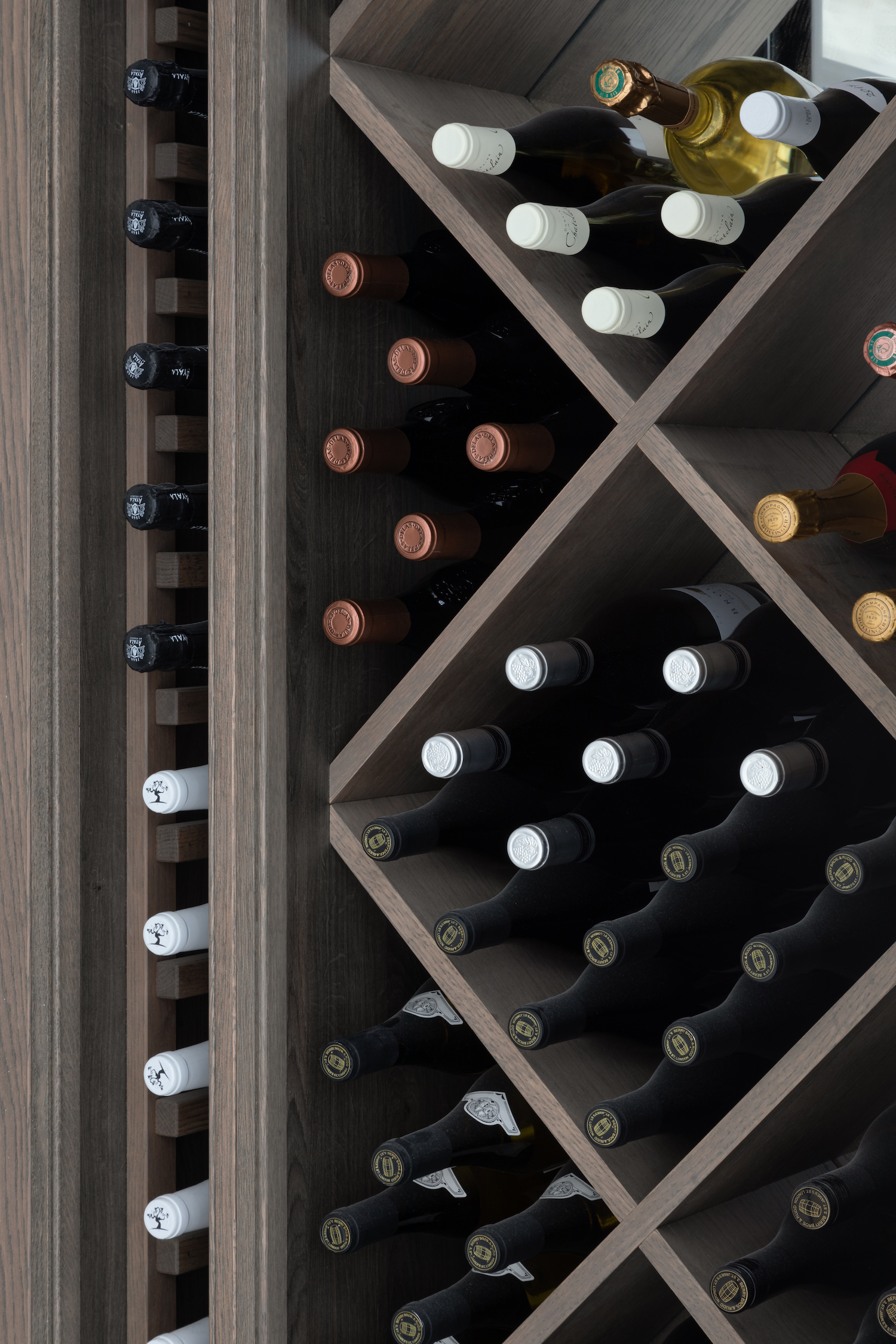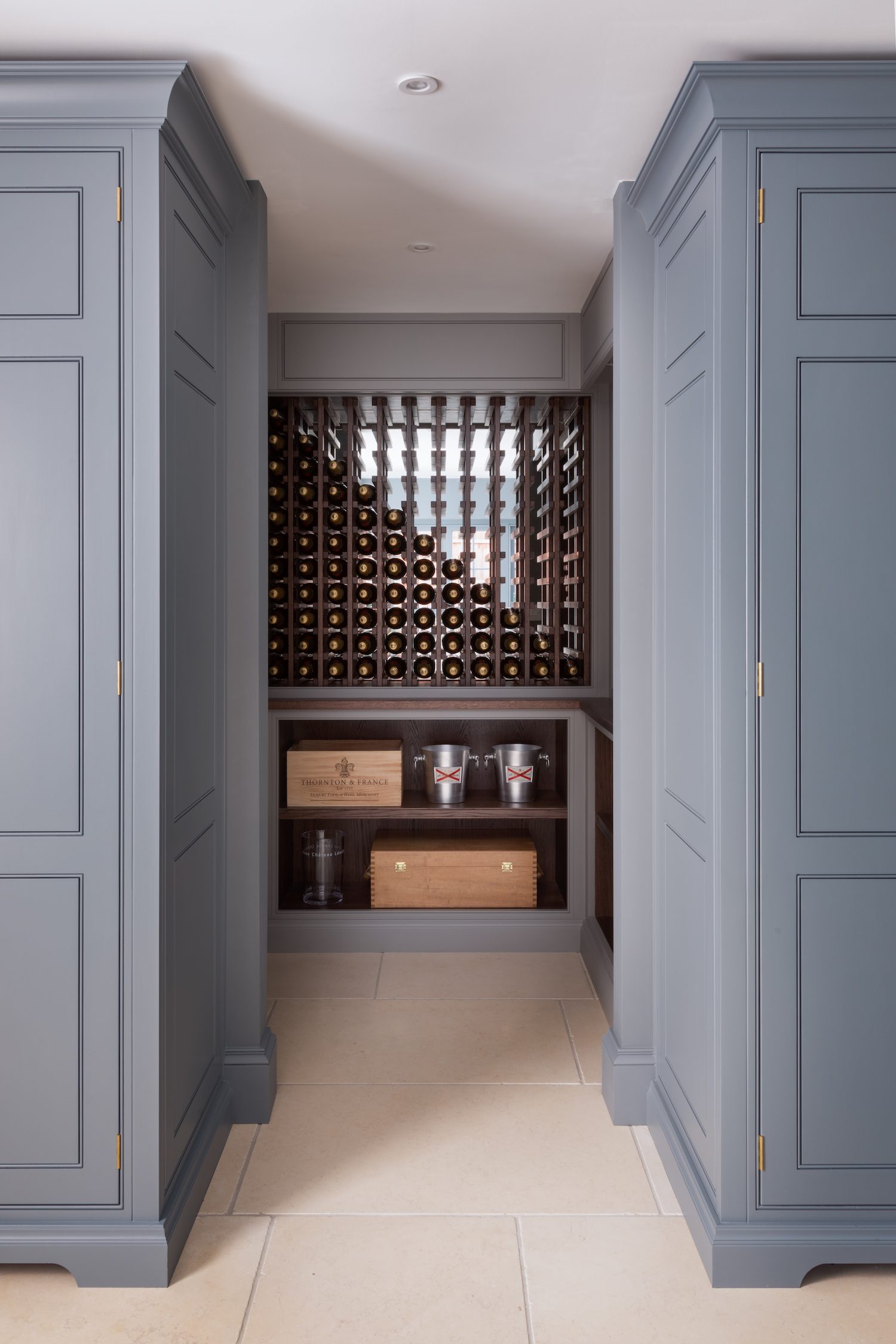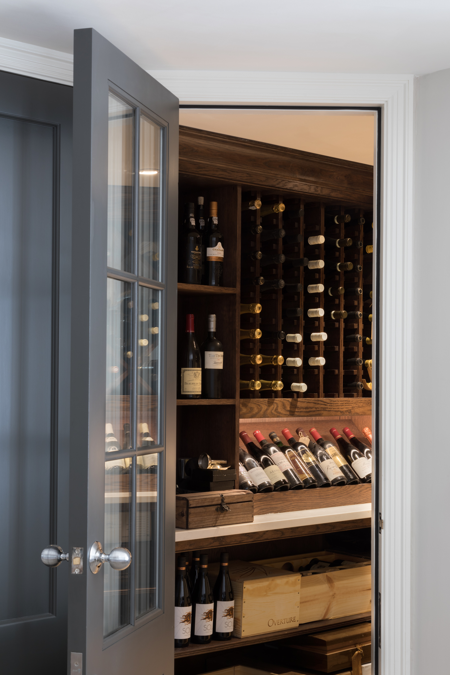 How To Design A Wine Room Published: 29-08-2020 For wine lovers that love to entertain, a wine room is an essential part of their project. At Humphrey Munson we design and manufacture rooms of all shapes and sizes from a simple display in a dining room to ‘active’ wine rooms which are sealed and self contained using bespoke cooling systems. Regardless of design, good quality wine is to be celebrated and storing it properly is vital when hoping to keep it for long periods of time. It’s not something you generally think about but one of the many enemies of wine is vibration. Vibration can disturb the sediment present in the bottle, but it also causes complex chemical reactions which are less visible. We recommend that you reduce or only allow minimal movement around the wine. A great place for wine for example is out of the way in a formal dining room or off the main kitchen in areas with less traffic in the home. Light and temperature are another key thing to consider when thinking about installing a wine room. Sudden change in temperature can be very damaging to wine, so with this in mind it’s essential to keep the temperature stable at around 8°c-13°c if possible. As for light, wine should be kept out of direct sunlight. A little moisture in the atmosphere is actually.a good thing. Humidity helps to stop the cork from drying out which then exposes the wine to oxygen. Be warned though, too much oxygen can damage cardboard, wooden cases and labels, and so the optimum level of humidity is 70%. Mixing storage is a lovely way to break up the density in a wine room, so we love to incorporate individual bottle storage, x-frame wine storage, and open storage for cases. The above example at the White House project is a great example of mixing the storage to create a beautiful wine wall but also the presentation area for wines you are planning to drink imminently. Side note – you can’t store wine in the presentation area longterm (unless it is corkless) as the cork needs to stay in constant contact with the wine. If you don’t have space for a wine room, you can always incorporate an under-counter wine cooler which will hold around 4o-45 bottles, or a tall wine storage unit that will hold around 80 – 95 bottles depending on the brand. We will do a separate post on these options soon! Share this article Copy this link https://www.humphreymunson.co.uk/how-to-design-a-wine-room/ Share Copy link Previous Article Dressing Room Design Details Next Article Humphrey Munson Storage Solution | Swan Neck Drawers