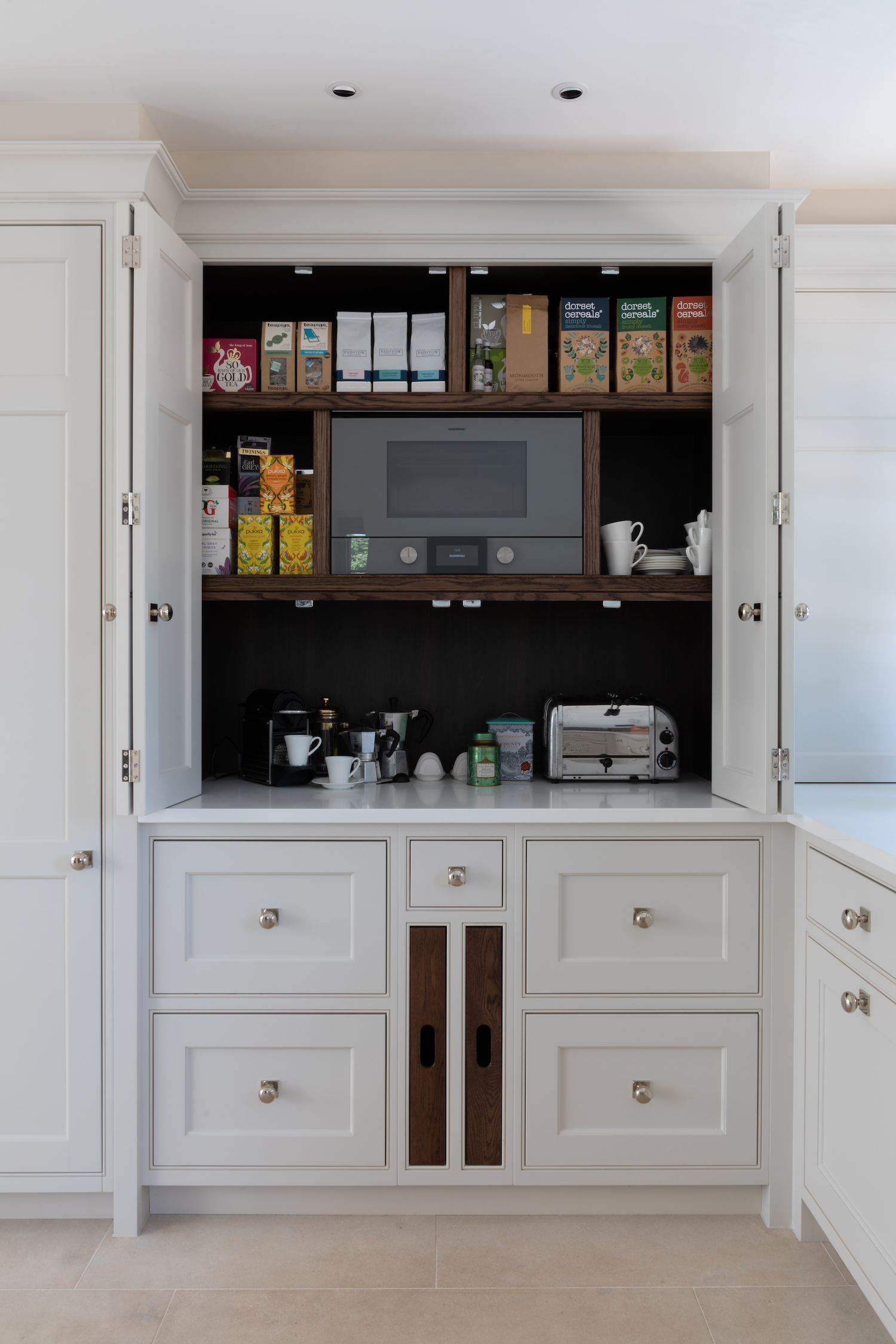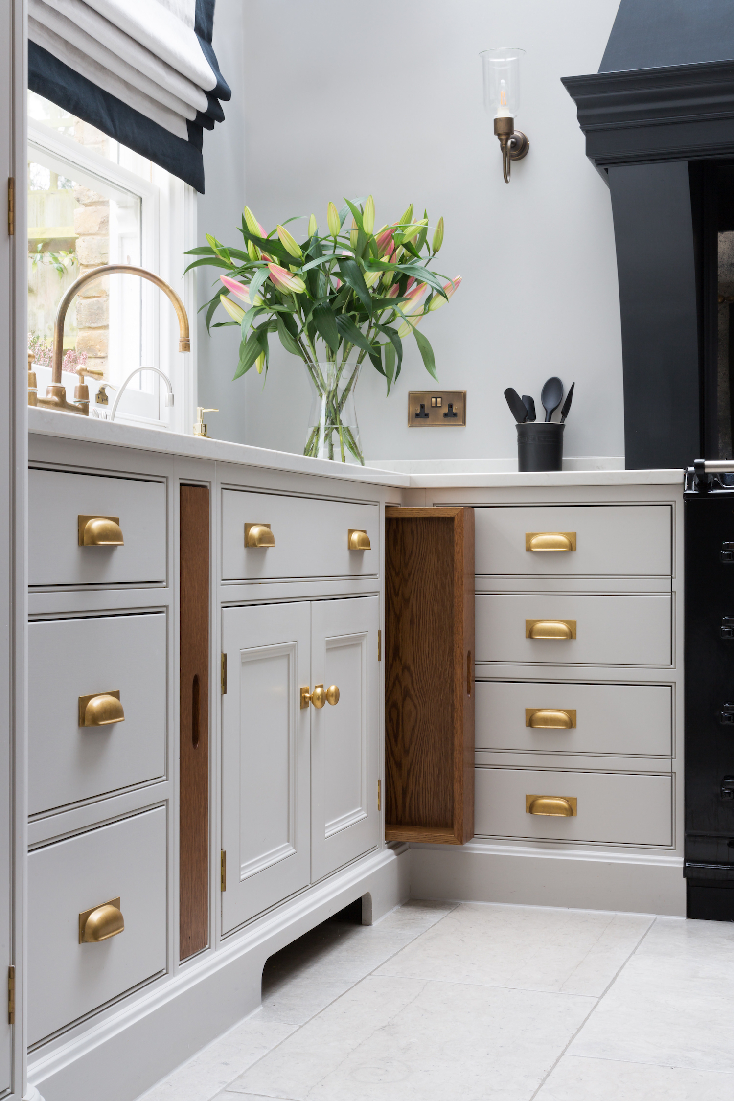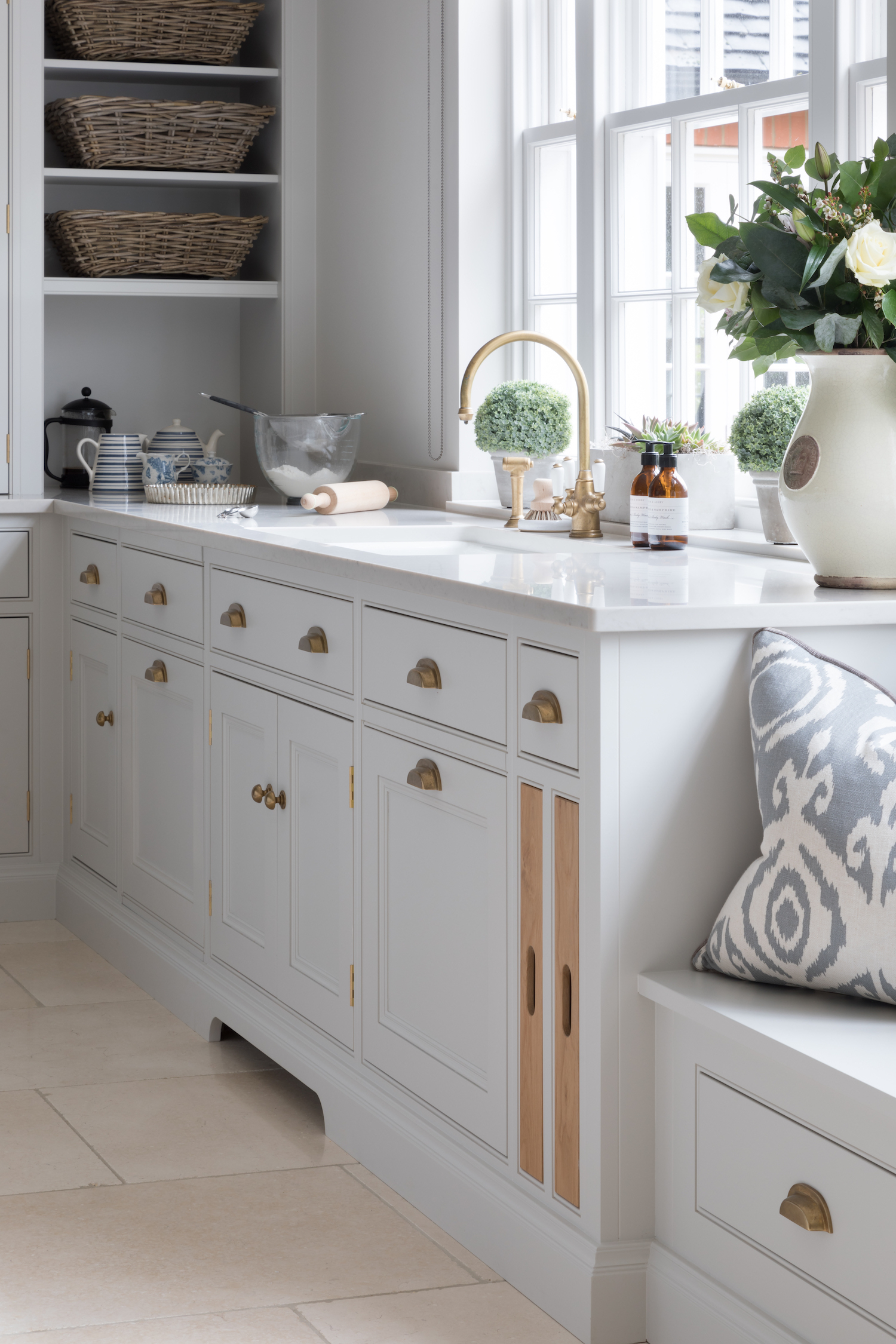 Humphrey Munson Bespoke Integrated Trays Published: 26-09-2020 A much loved (and extremely useful) addition to almost any kitchen project, our bespoke HM integrated trays are proving so popular with our client projects. Designed to be stored in cabinetry, often in the island near the food prep area, near a scullery or either side of a coffee machine, integrated trays are made to match the wood accent used throughout the kitchen project. We love how the wood accent can help to break up a run of cabinetry, often providing warmth and character particularly when the painted run is finished in cooler tones. More than just aesthetically pleasing, integrated trays are used for multiple purposes. For those who like to entertain outside for example, integrated trays designed near the entrance to the garden is useful as you can load a tray up with food (or drinks) for guests waiting eagerly by the barbecue outside. If you are a coffee enthusiast (or you entertain a lot and love to show off your barista skills on the weekends), integrated trays can be designed into the cabinetry either side of a coffee machine, whether it’s part of a run or hidden behind a bi-fold door. For those who like to entertain on a larger scale or prefer a more formal dining experience when they host guests, integrated trays can be designed into a scullery run. This is particularly useful when setting up the table as crockery can be carried in bulk, and equally, can be transported back to the scullery when plates are dirty. Here’s a selection of integrated trays to help illustrate the ways in which they can be both designed and used in kitchen projects… K I T C H E N Gerrards Cross project. Warwickshire project Worcestershire project C O F F E E / D R I N K S Essex project. St. Albans project. Walton Barn project. S C U L L E R Y R U N Cranbrook project. Blackheath project. Images: Paul Craig Share this article Copy this link https://www.humphreymunson.co.uk/humphrey-munson-bespoke-integrated-trays/ Share Copy link Previous Article The Quintessential Utility Cupboard Next Article Humphrey Munson Bespoke Drawer Inserts