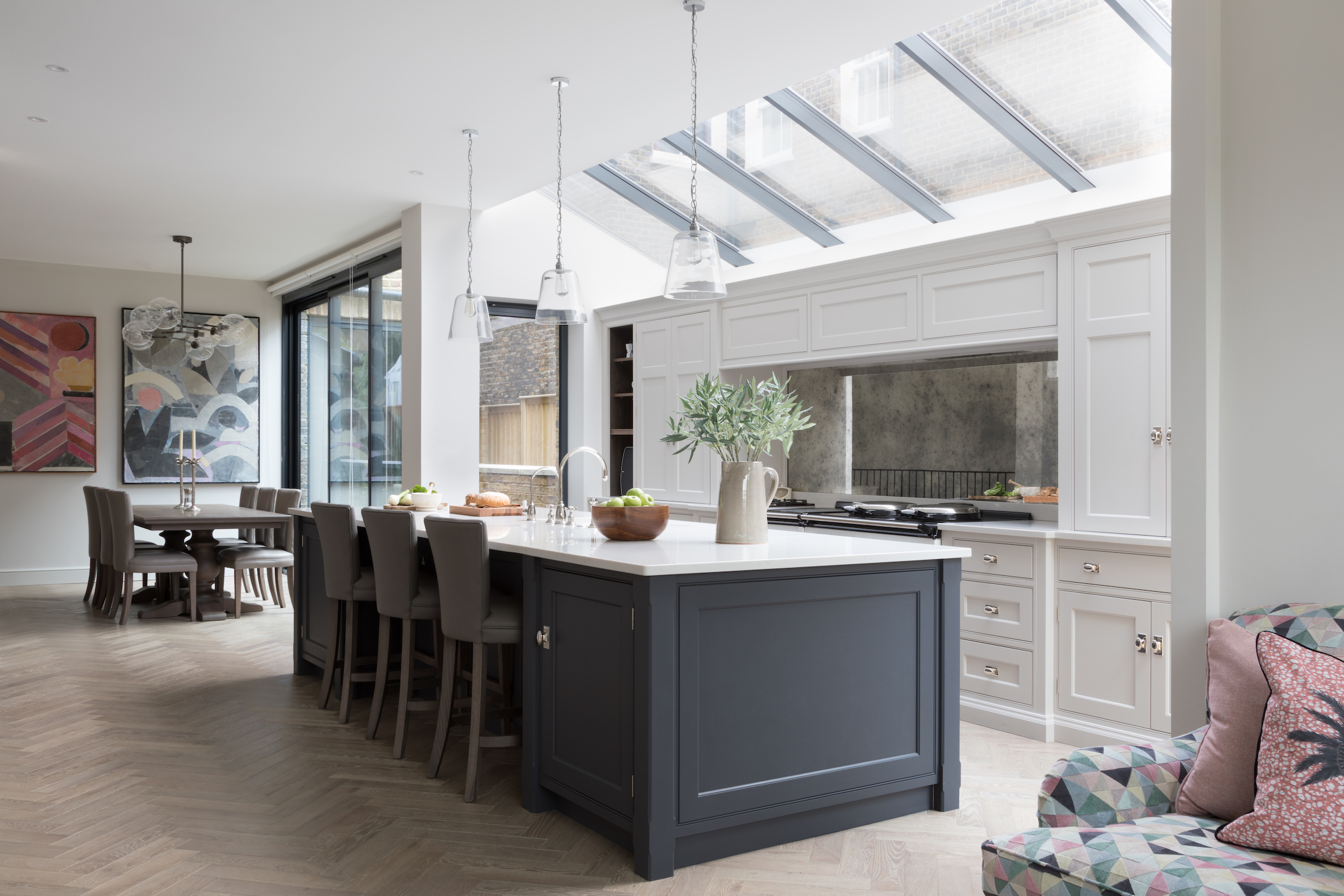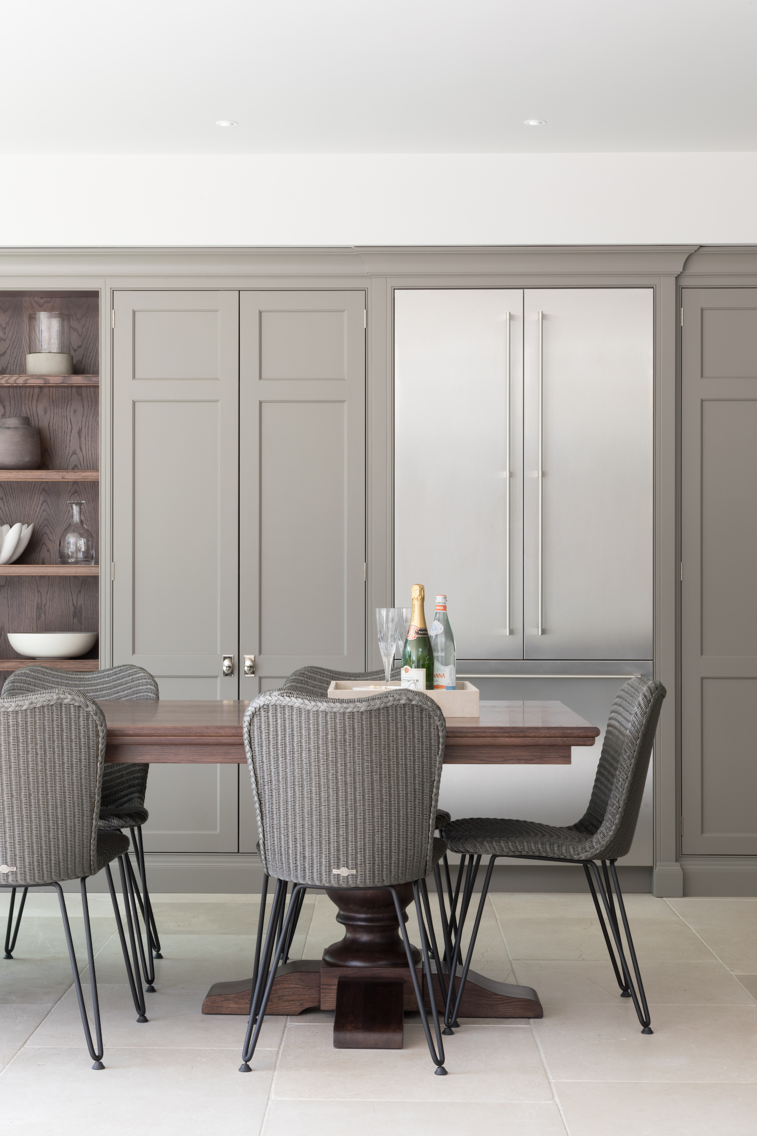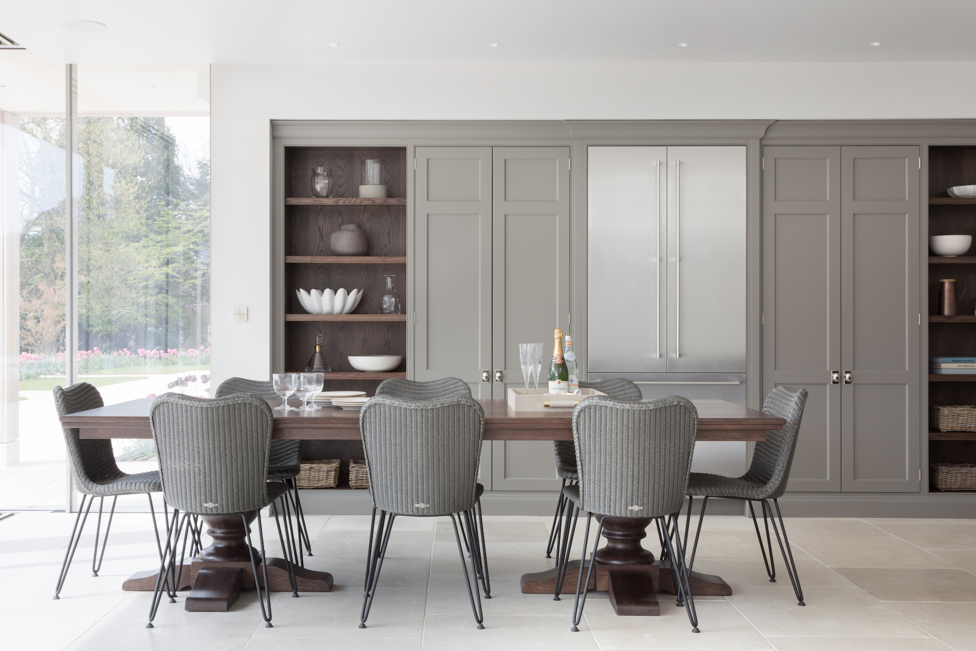 Lexington Dining Table Published: 30-08-2020 Dining tables are deeply personal pieces of furniture that can make or break a kitchen or dining space and choosing the right table can be difficult. If like many of our clients you are looking for a durable, beautiful, made to order dining table that suits both classic and contemporary spaces, the Lexington might just be the perfect choice. The Lexington table is available in three finishes: Classic oak, Portobello oak and Berkeley oak, and three sizes: 1100mm x 2400mm (6-8 people), 1100mm x 3000mm (8-10 people) and 1100mm x 3600mm (10-12 people). The base of the table features intricate solid pedestal legs that offer an effortless luxurious look and feel which can be painted in a Humphrey Munson colour (exclusive to HM by Mylands). As well as a painted base, you can also opt for a Quartz top (as seen in the Orchard house project) which provides a more opulent look that works so well in larger or more extravagantly decorated spaces. The Lexington dining table at the Hampshire project is finished in Portobello oak and seats 6-8 people. View the full project here. The Lexington dining table at the North London project is finished in Berkeley oak and seats 6-8 people. View the full project here. The Lexington dining table at the Traditional Spenlow, Felsted is finished in Berkeley oak and seats 6-8 people. View the full project here. To find out more information about the Lexington dining table or to make an order contact us at info@humphreymunson.co.uk or call the team on 01371 821300. Images: Paul Craig Share this article Copy this link https://www.humphreymunson.co.uk/lexington-dining-table/ Share Copy link Previous Article Mainsail Next Article Drying Cupboard