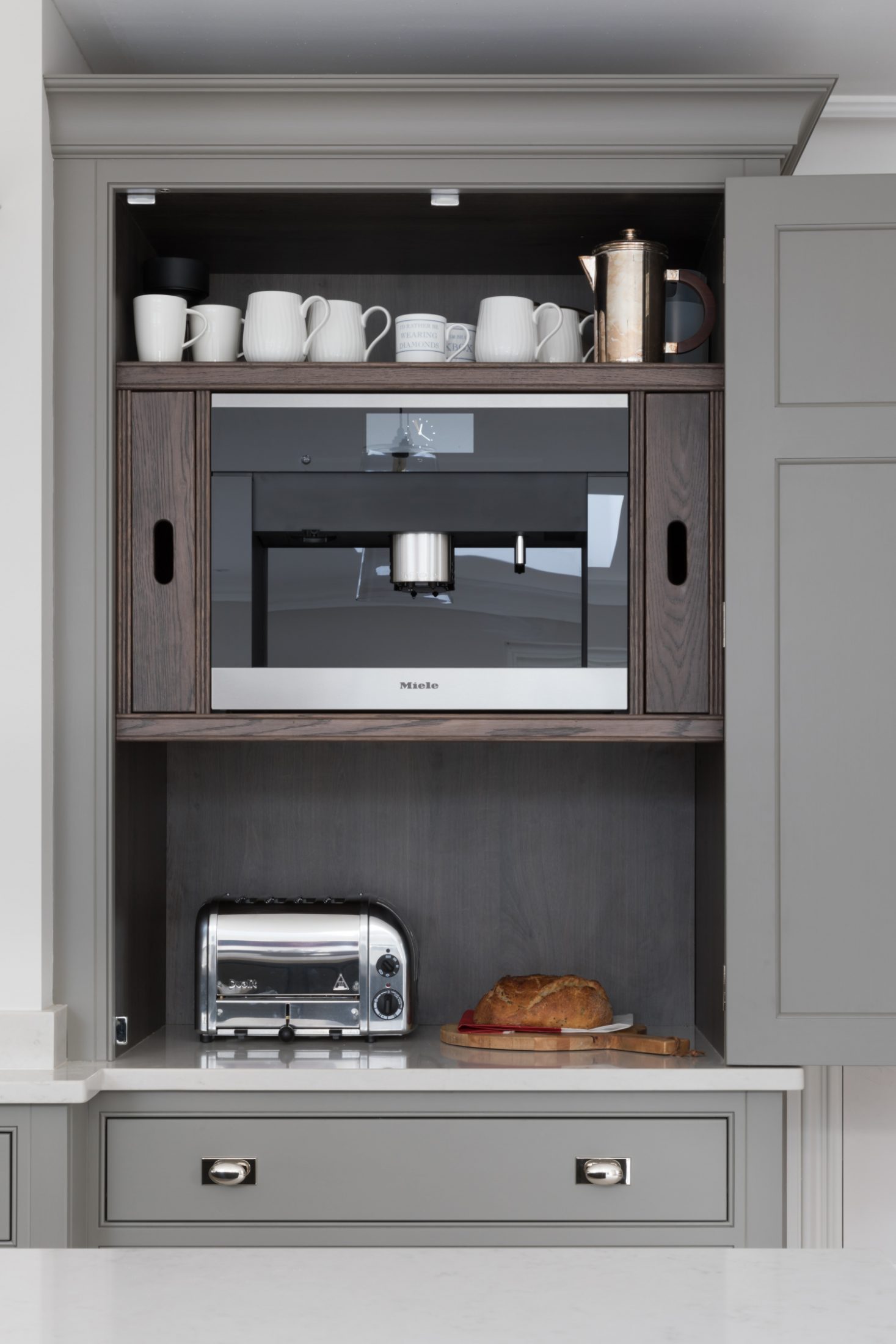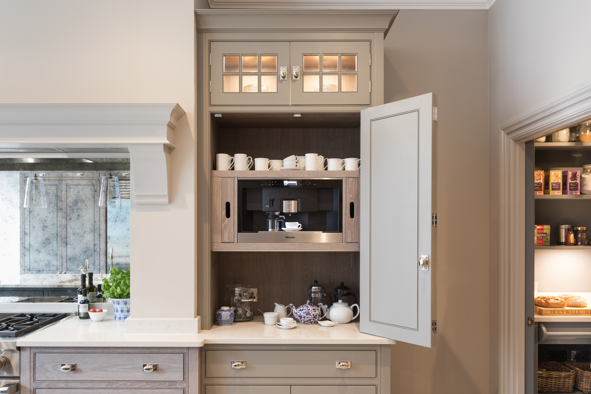 Miele Coffee Machine 101 Published: 28-04-2019 It’s safe to say at Humphrey Munson we love coffee and so do many of our clients- especially when it’s made with a Miele coffee machine. It can however be hard to choose between the Miele bean-to-cup models and the Nespresso models as they are similar but fantastic in their own right. If you’re struggling to choose, here is everything you need to know… We all prefer certain types of coffee (unless of course you don’t like it at all!) and the great thing about the Nespresso is that the carousel can hold up to 20 capsules in five different varieties at a time – that’s a lot of coffee choice! Using the Miele Nespresso machine like the one pictured above is a walk in the park. Miele’s intuitive systems are easy to use and are self-explanatory. The really great thing about the Nespresso is that you can set up to ten different user programmes, meaning your double shot cappuccino will always turn out just the way you like it. It is also worth mentioning that many of the Miele Nespresso compartments can actually go in the dishwasher (although we would advise checking which parts via the manual before doing so) which helps to make thoroughly cleaning the coffee machine easier than ever. Alternatively, the built in CVA 6401 bean-to-cup coffee machine (pictured above at the Tudor Manor house project) is available in graphite grey, brilliant white and obsidian black to better suit the surrounding cabinetry/ overall style of the kitchen. The bean-to cup has a whole host of features, for example you have the option to programme no less than ten customisable individual user profiles – so both friends and family can have their very own type of coffee set up. It also has a high-quality conical grinding mill and Miele’s EasyClick milk system which can be snapped into place or removed really easily which helps to ensure that preparing a range of hit drinks like espressos and creamy lattes is always super easy. The bean-to-cup also has three containers for coffee beans so that you always have a choice of which freshly ground coffee you fancy. Exclusive to Miele, the patented ComfortDoor system on the bean-to-cup gives convenient access to the removable water container, the drip tray and the waste container whilst the system lock prevents inadvertent operation by children for peace of mind. For those looking for a plumbed in option, the CVA6405 model offers the same impressive features with the option to use fresh water, saving time on refilling the water container – perfect for busy kitchens like the Ingatestone project above. To find out more about Miele Bean-to-cup and Nespresso coffee machines visit the Miele website here, or to make a kitchen enquiry email us at info@humphreymunson.co.uk or call our team on 01371 821300. Images, Paul Craig. Share this article Copy this link https://www.humphreymunson.co.uk/miele-coffee-machine-101/ Share Copy link Previous Article The Pantry Ladder | by Humphrey Munson Next Article Recipe Notes | Salmon & Roast Veggie Rice Salad