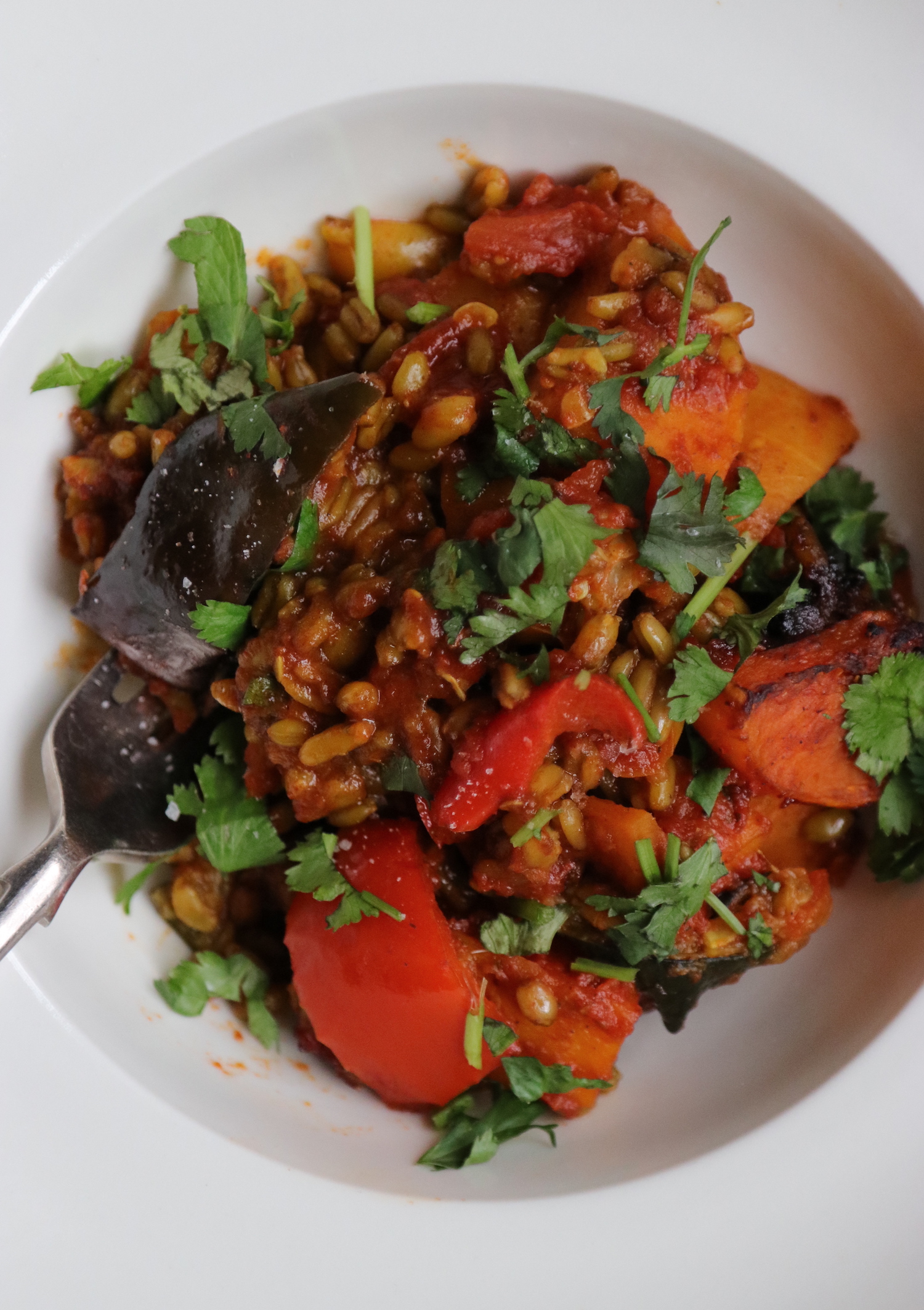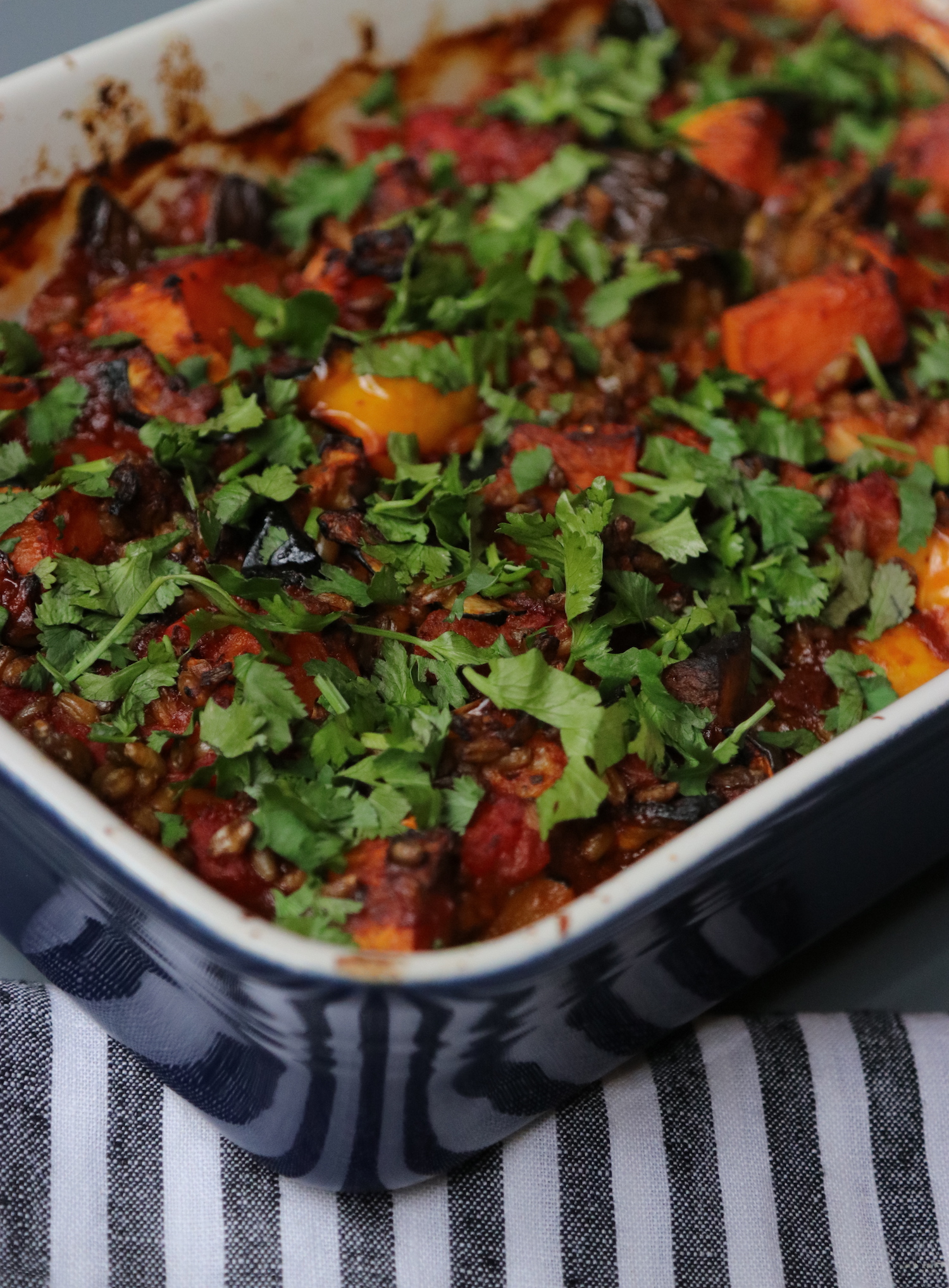 Recipe Notes | Moroccan Spiced Freekah Bake Published: 30-08-2018 This vibrant plant based recipe is quick and easy to prepare making it an ideal mid-week meal choice. Full of delicious flavours and nutritious ingredients it is sure to be a crowd pleaser. Ingredients 1 x butternut squash, chopped 1 x red pepper, chopped 1 x yellow pepper, chopped 1 x aubergine, chopped 1 x courgette, chopped 2 tbsp ras el hanout spice mix (we use this one) 3 tbsp Bomba tomato paste 1 x tin of tomatoes 25g cooked freekah (we use Merchant Gourmet) Fresh coriander to serve Salt & Pepper method Oil a large deep baking dish and turn on oven at 180C fan. Peel the butternut and chop into 2 inch thick pieces and sprinkle with the ras el hanout mix. Add dry chilli flakes for a good kick! Roast in the oven for 30 minutes. Next remove the baking dish after 30 mins, and add the chopped peppers, aubergine and courgette. Place in oven again for 20 minutes. Remove from the oven and stir in the bomba paste, tinned tomatoes and freekah then put in the oven for another 10 minutes. The mixture should feel quite loose but add some water if it feels a little dry. Garnish with fresh coriander and serve with steamed green veggies. Images: HM Share this article Copy this link https://www.humphreymunson.co.uk/moroccan-spiced-freekah-bake/ Share Copy link Previous Article Sub-Zero Wine Storage Next Article Recipe Notes | Herb Crust Salmon, Sweet Potato Chips and Parmesan Broccoli
