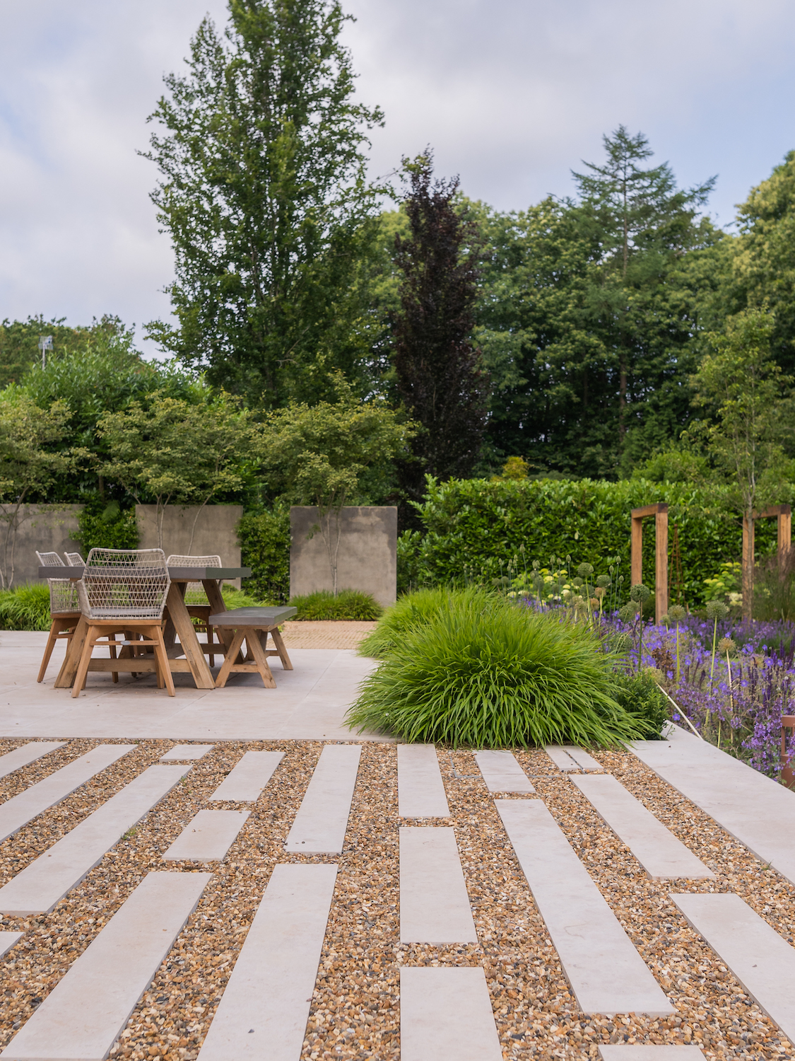 Q & A with Polly Wilkinson | Pollyanna Wilkinson Garden Design Published: 25-07-2021 We are huge fans of Polly Wilkinson at HM and love to follow her brilliant insights into garden design via her instagram account where she engages with a loyal following of garden enthusiasts covering everything from what bees need in a garden to advice on choosing limestone vs porcelain for outdoor flooring. We were thrilled to catch up with Polly to share this Q&A: Was there a catalyst moment where you decided to switch from a career in marketing to garden design? As with many women, it was having children that made me readdress my career goals. I was very conscious that if I was going to be a working mother that I wanted to do something that I really loved and derived a great deal of satisfaction from. Whilst marketing provided me with an excellent grounding in business, it didn’t scratch my creative itch, so after much consideration I realised that combining my love of design with horticulture was the ideal solution. I retrained shortly after my second son was born and set up the studio soon after. What would you say inspires you most when it comes to a new design? For residential spaces, my inspiration is usually drawn from the client and their home. A garden needs to be in conversation not only with the house and its interior; but with its surroundings, so the design will also be informed by the location – whether it be town or country for example, can have a huge bearing on the appropriacy of a design. I spend a lot of time with my clients to understand their lifestyle, as well as their personal aesthetic and this can steer the direction of the design too. Can you talk us through the design process and the service you offer? We start with a consultation. This is where I come to site and meet with the client. We have a cup of tea and tour the garden, and talk through likes and dislikes, their lifestyle, aspirations, and how they expect to use the space. From there we arrange a topographical survey, measuring up the site to captures all levels, utilities and features so that we can get started on a scaled design. Next up is the concept design. This is a 2d layout plan and 3d visuals, along with moodboards of the look and feel of the space. This is where we focus on the actual layout of the garden – what will go where and how the garden will flow as a space. Once this is agreed we move on to the developed design, where we focus on the materiality and finer details such as laying patterns, grout colour, lighting etc. Then it’s on to the technical detailing. This includes all the information the contractor needs to build the garden, whether it be technical specifications on building retaining walls or pergolas, to setting out plans for the overall garden. And finally – the very best bit – the planting plans. This is a map of every single plant to be included in the garden – as well as moodboards and plant schedules which list every plant, pot size and quantity for ordering and setting out. This is all packaged up and sent to the contractors to quote for the work and once appointed, we kick off the build! Do you have any advice for anyone who is looking to re-design their outdoor space? And what sort of things should they think about prior to engaging a garden designer? My most common piece of advice for those doing house works, is to consider the garden design at the same time as planning the house. I am very used to collaborating with architects, to make sure the designs are cohesive, and in an ideal world you want a plan in place for the garden before building works get under way to avoid any rushed decisions. The house and garden are in conversation, so having a plan in place, even if not executed until later down the line, means they will feel like two parts of a cohesive whole. For those that are solely looking at garden works, I recommend taking your time to find the right designer for you. There is a temptation to rush these things to be ready for the summer, but gardens can take several years to mature and so as with any build works, it pays to get the right team in place. In the meantime you can spend time taking notice of how the light moves in the garden – which areas you are drawn to and how you want to use the space. We are designing more outdoor kitchens than ever before at HM, do you have any advice for planting / design for projects including an outdoor kitchen? They are very popular aren’t they! I would say outdoor kitchens are on almost every brief I receive at the moment. My main tip is – if your outdoor kitchen doesn’t include a fridge, keep it near the house. You are far more likely to use it if it’s near the interior kitchen so you can shuttle food out easily. Alternatively, it can be lovely to have a dining space further away from the house so that it becomes a destination in its own right, rather than an extension of your kitchen, and in which case I recommend including a fridge so that you have what you need to hand rather than adding a journey back and forth to your interior kitchen. Also remember, I highly recommend you have more than one seating space in a garden, so if you have a dining space, don’t be afraid to add in a more relaxed seating space elsewhere – that way you have different areas for different purposes which means you will almost certainly use more of your garden. Even pre-pandemic, we found our clients at HM wanted to create a seamless flow between indoor and outdoor spaces with an emphasis very much on natural materials, lots of light and space for both private family time and entertaining on a bigger scale. Do you have any top tips for creating a seamless flow from inside the home to outdoors? I have found exactly the same. I spend a lot of time looking at the materials used inside the house and I will echo them outside to make sure the garden feels harmonious with the house. For example, it’s not uncommon to extend limestone ti