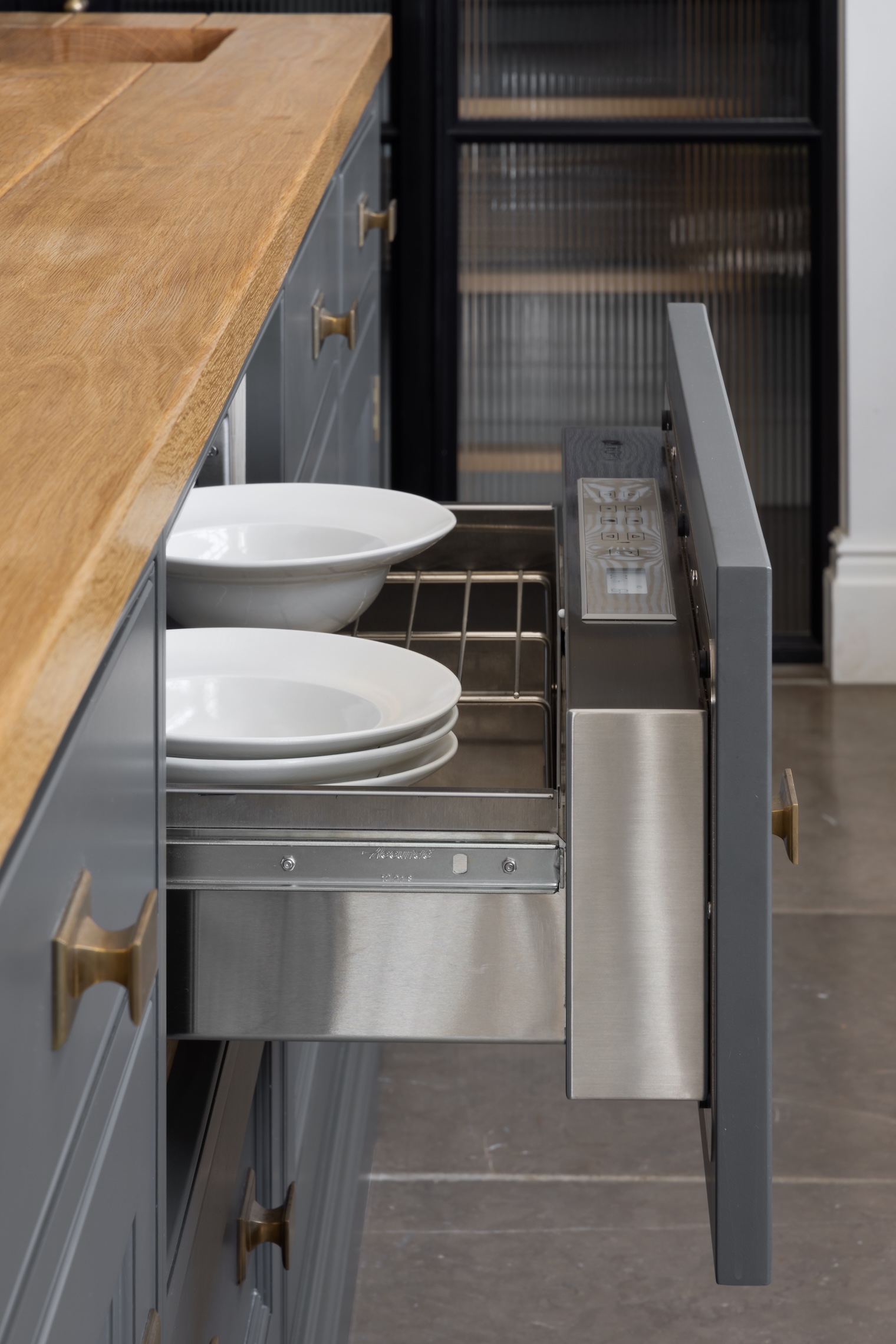 We’re proud to design and manufacture all our kitchens at our workshop in Felsted where the traditional joinery of the past meets the technical innovation of the present. We employ only the finest cabinetmakers whose passion for their craft is proudly displayed in each beautiful handmade kitchen. As well as kitchens, we also design, manufacture and install cabinetry throughout the rest of the home. In order to offer a truly bespoke kitchen design service, we provide a curated selection of accent woods, worktops and hardware along with our own paint range produced exclusively for Humphrey Munson by Mylands.