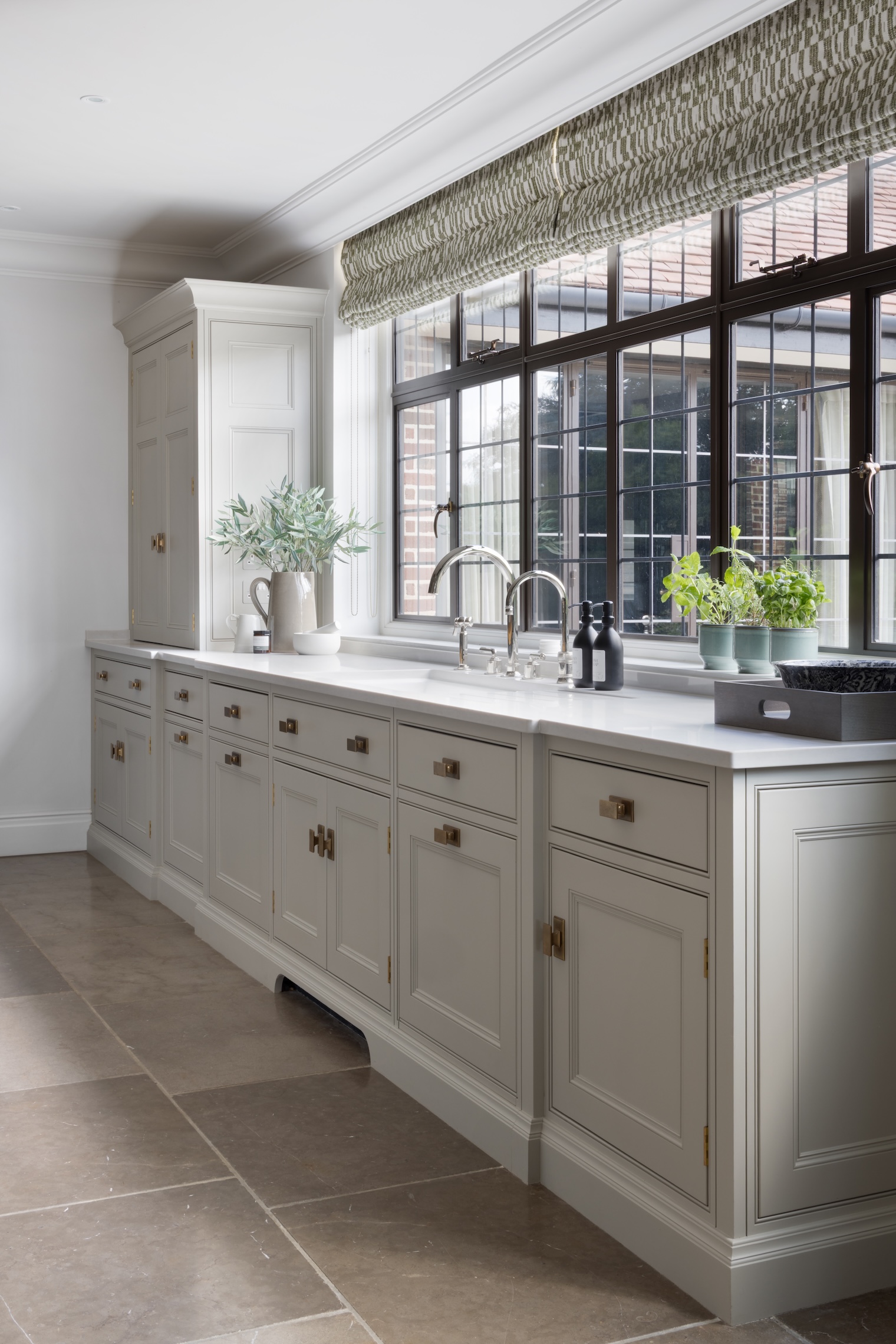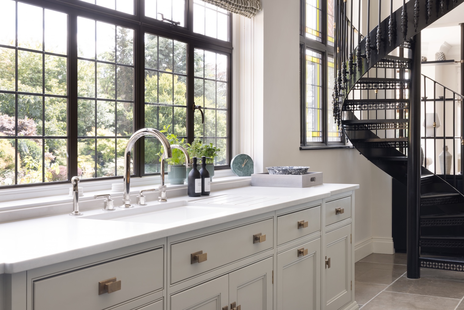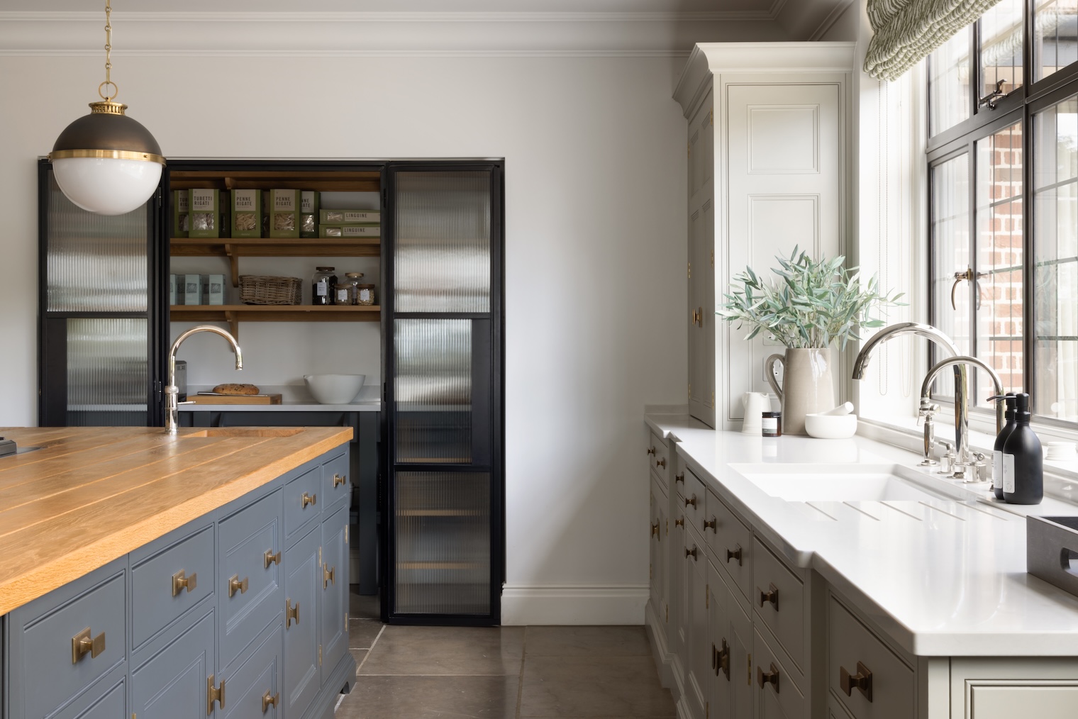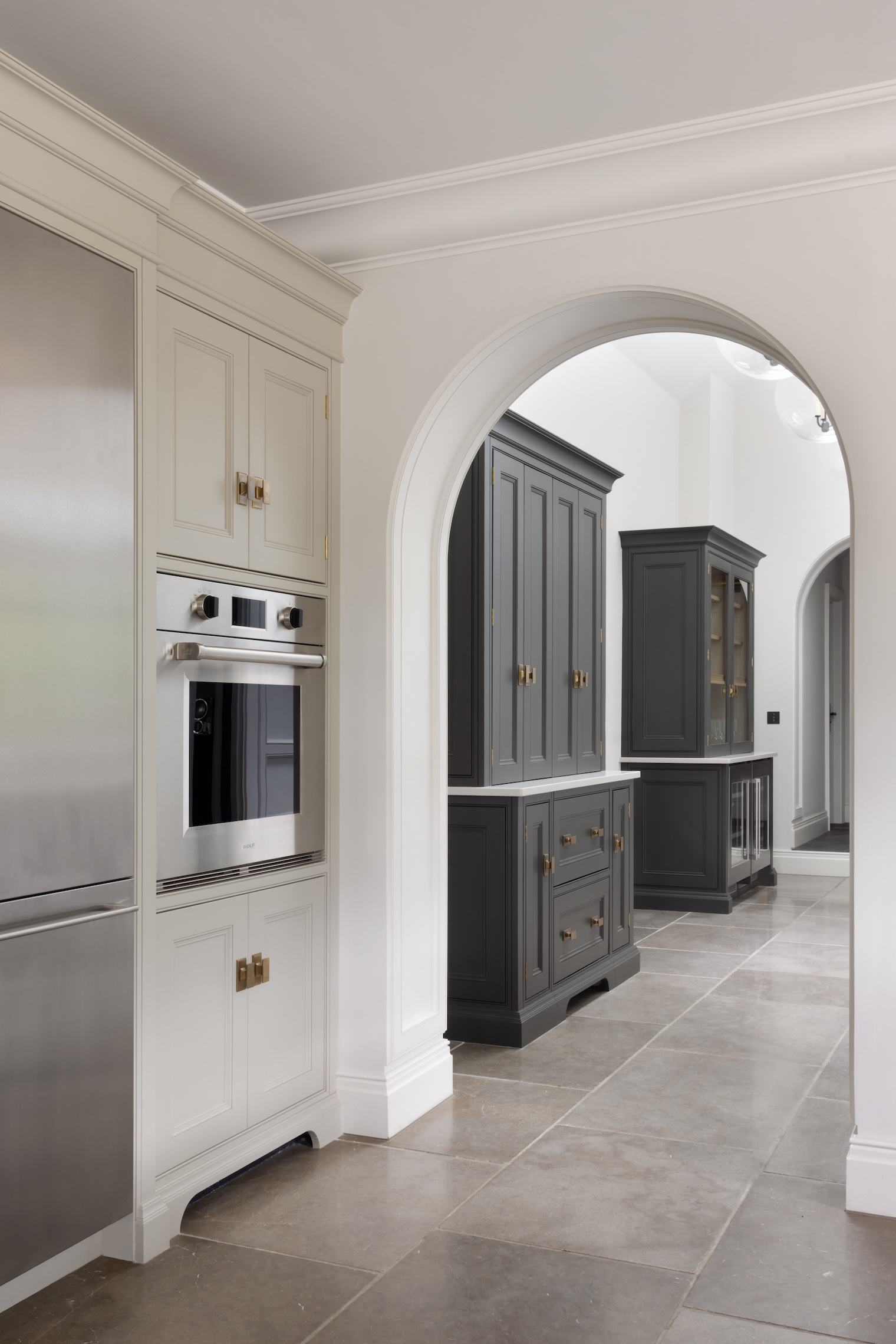 Originally drawing inspiration from the working kitchens of French châteaus, the Arts and Crafts Country Estate, kitchen, pantry and hallway is a blend of textures materials and colours that all work in harmony to create a finished look that feels cohesive, welcoming and warm. A home perfectly designed to embrace the rhythm of busy family life.