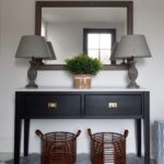 This exceptional Spenlow dining room cabinetry is finished in Half Windsor with contrasting Soot for the interior, which creates an unexpected and daring backdrop for the incredible array of tableware and servingware displayed within.