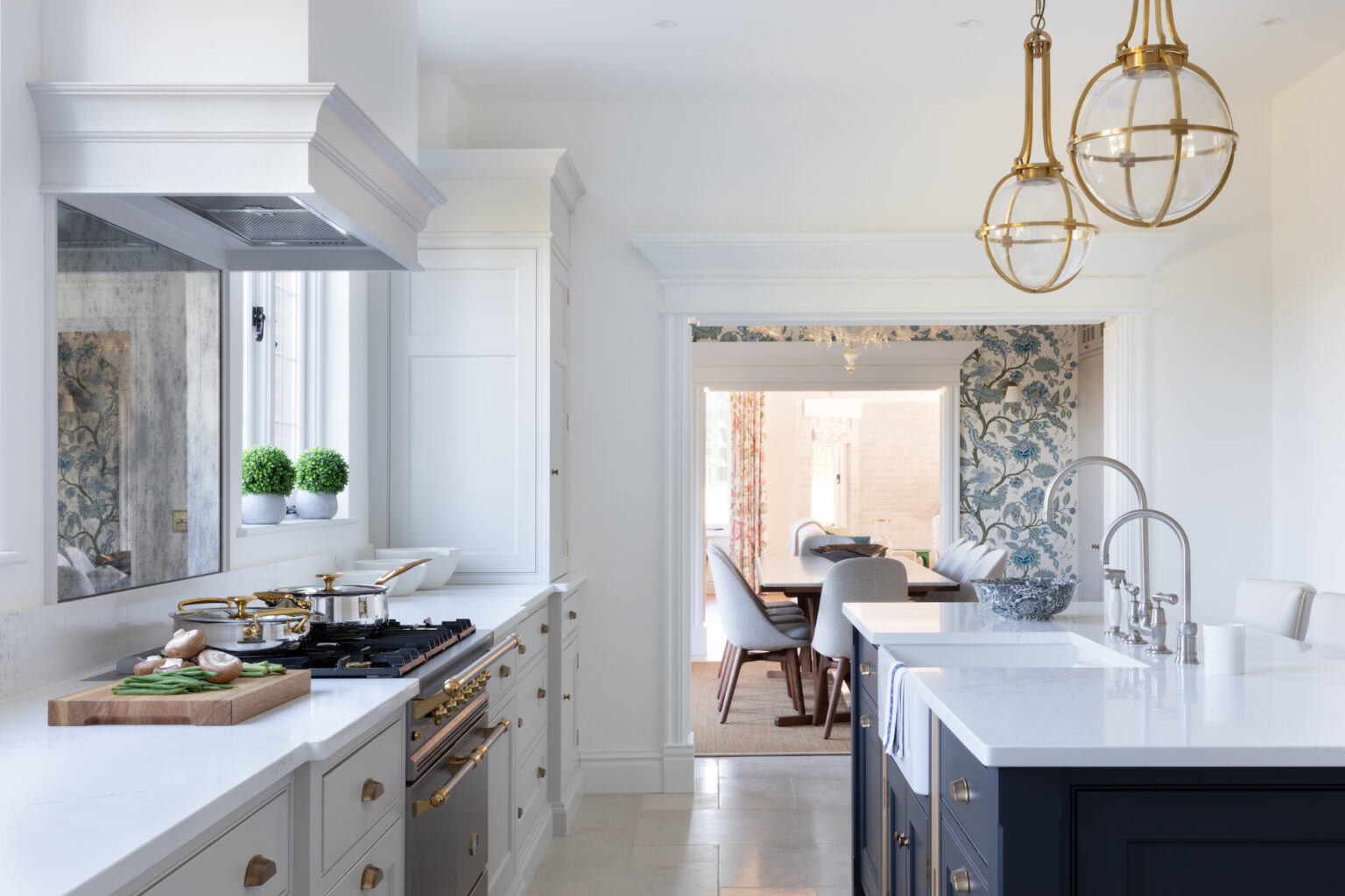 We loved working on the Chobham project for which we designed, made, installed and finished a large everyday kitchen, a prep kitchen for entertaining, walk in refrigerator, pantry, china room, informal dining room and a utility/boot room. This is a historic family home that needed a full refresh including minor structural work and an overhaul in design and layout. From the start, the goal was to achieve something timeless, bold and practical for entertaining on any scale.