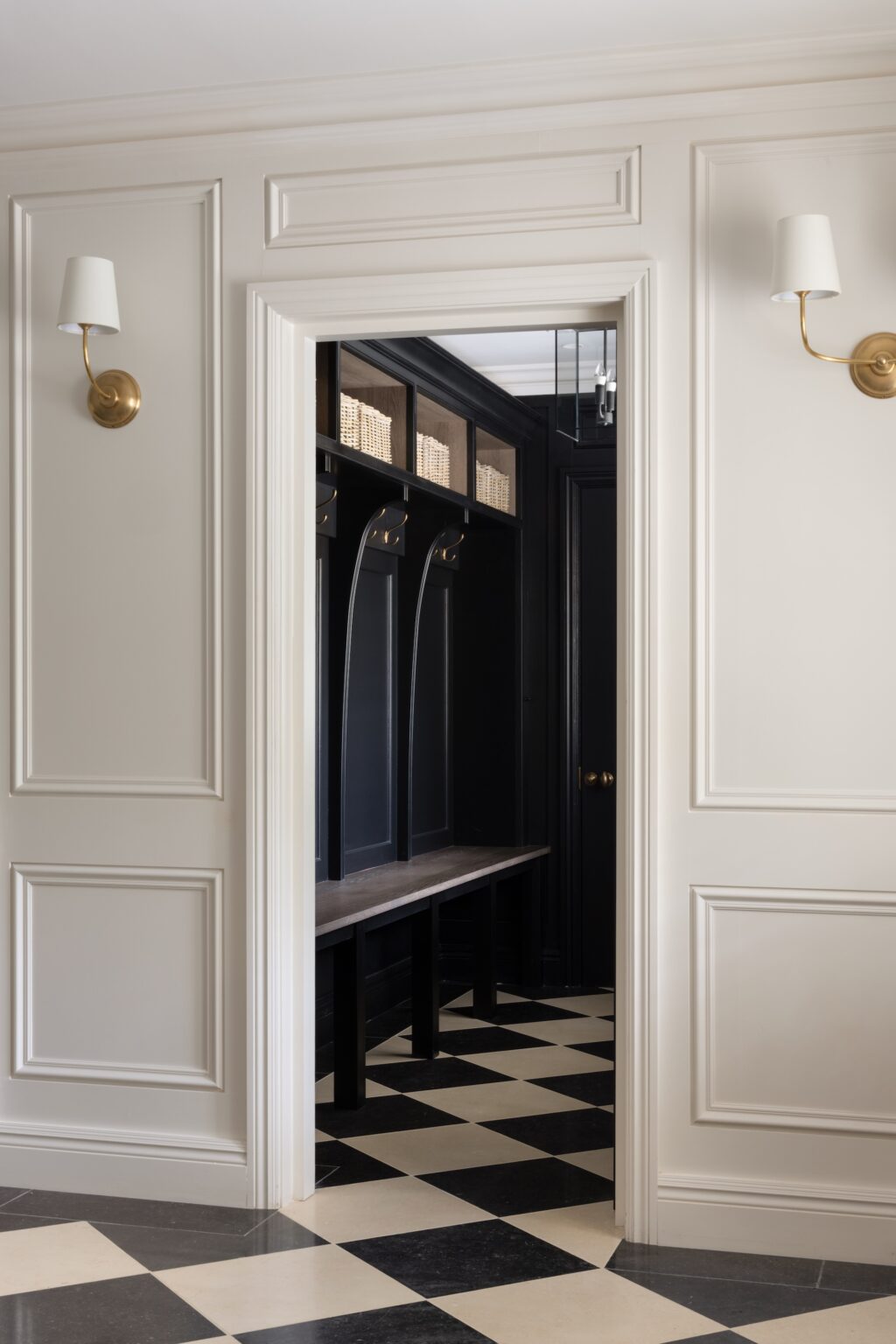 The utility room at the Chobham Project is a quirky little space but with clever spatial planning, we were able to accommodate everything on the wishlist including the LG Styler for dry-cleaning at home and a small bench and closed cabinetry for school bags, coats and shoes.