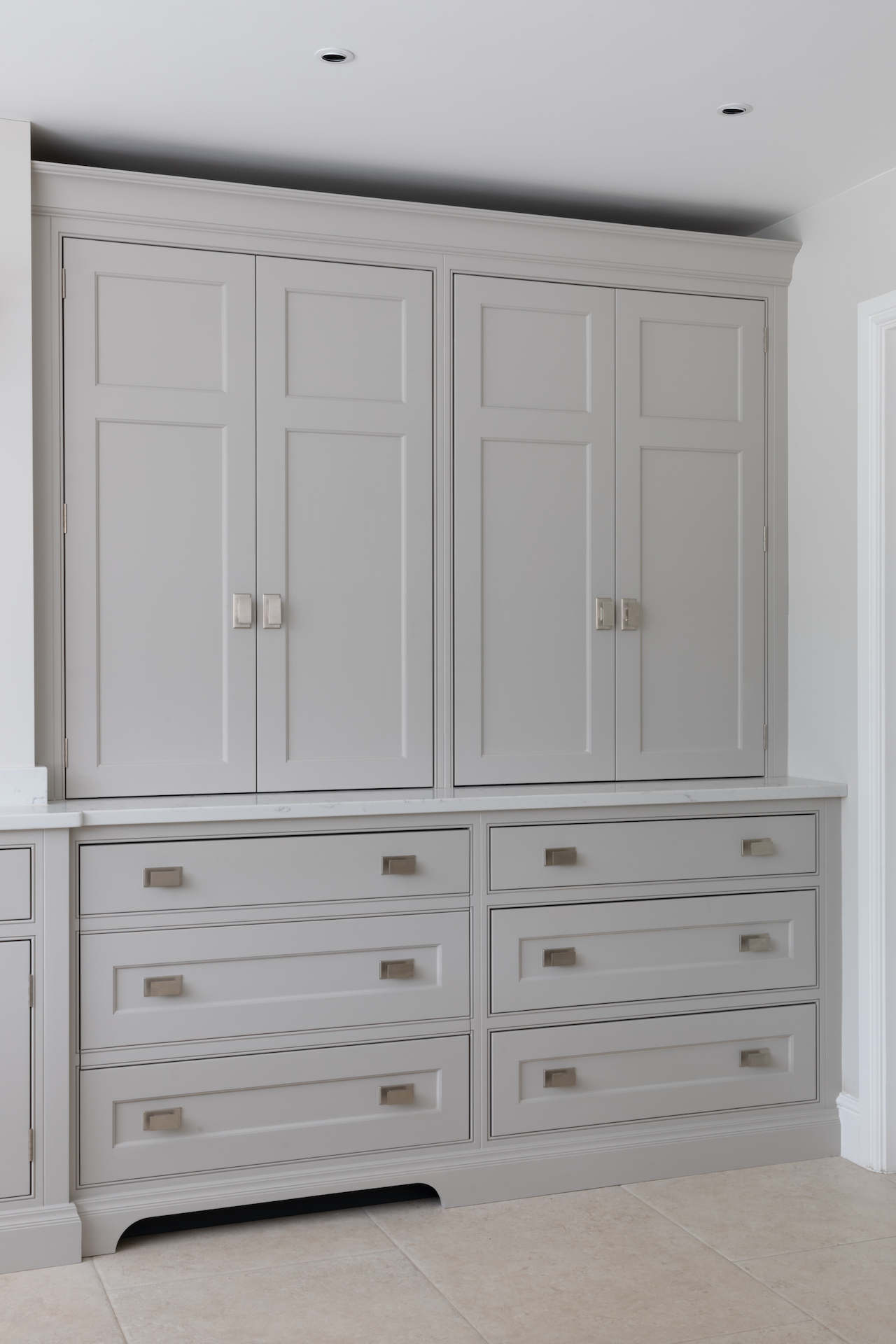 We’re proud to design and manufacture all our kitchens at our workshop in Felsted where the traditional joinery of the past meets the technical innovation of the present. We employ only the finest cabinetmakers whose passion for their craft is proudly displayed in each beautiful handmade kitchen. As well as kitchens, we also design, manufacture and install cabinetry throughout the rest of the home. In order to offer a truly bespoke kitchen design service, we provide a curated selection of accent woods, worktops and hardware along with our own paint range produced exclusively for Humphrey Munson by Mylands.