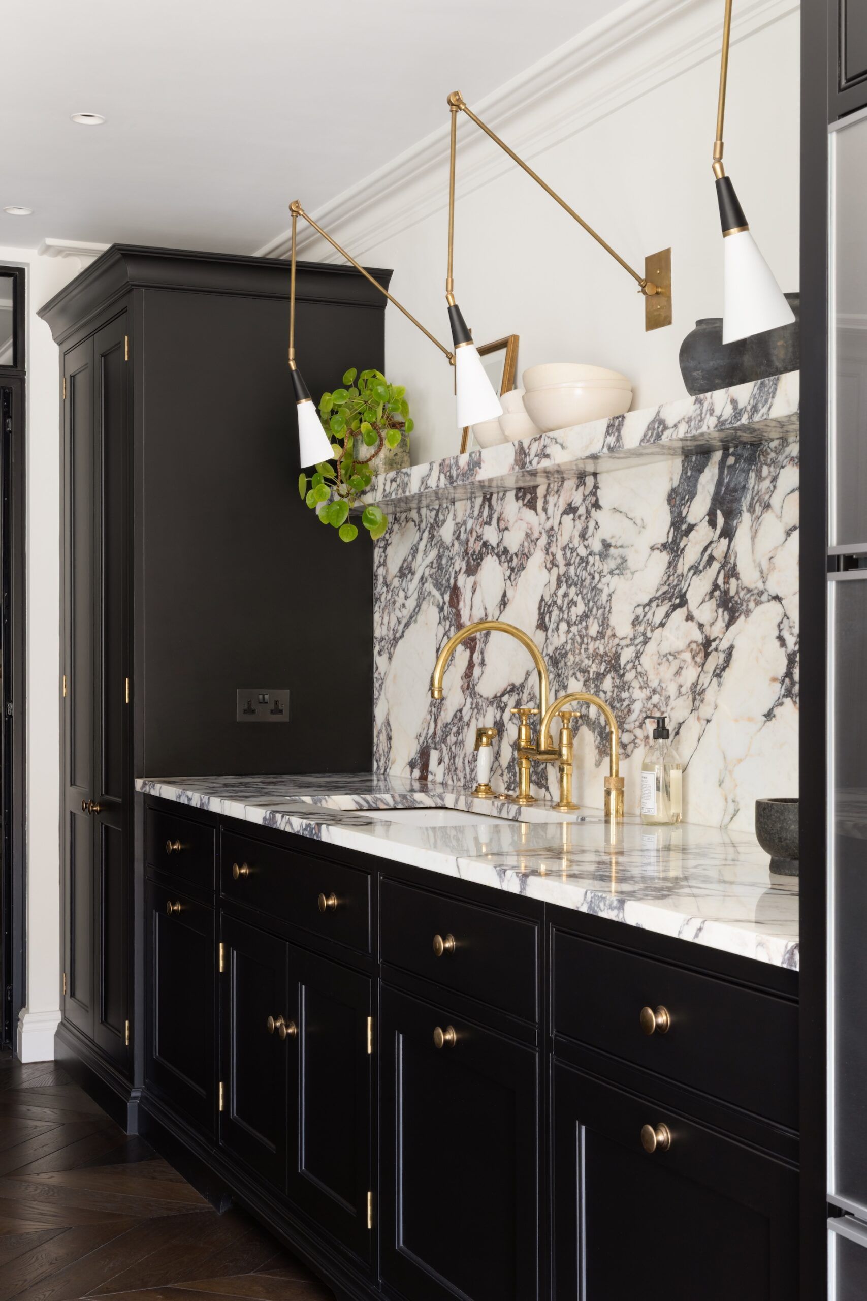 Now this is a kitchen to entertain in; bold, striking and fun. It was a huge pleasure to work with Edwards McCoy to bring this project to life. The Calacatta Viola marble takes centre stage and acts as the perfect foil to the Nickleby cabinetry finished in HM’s Mr. Banks. A clever and convivial design…