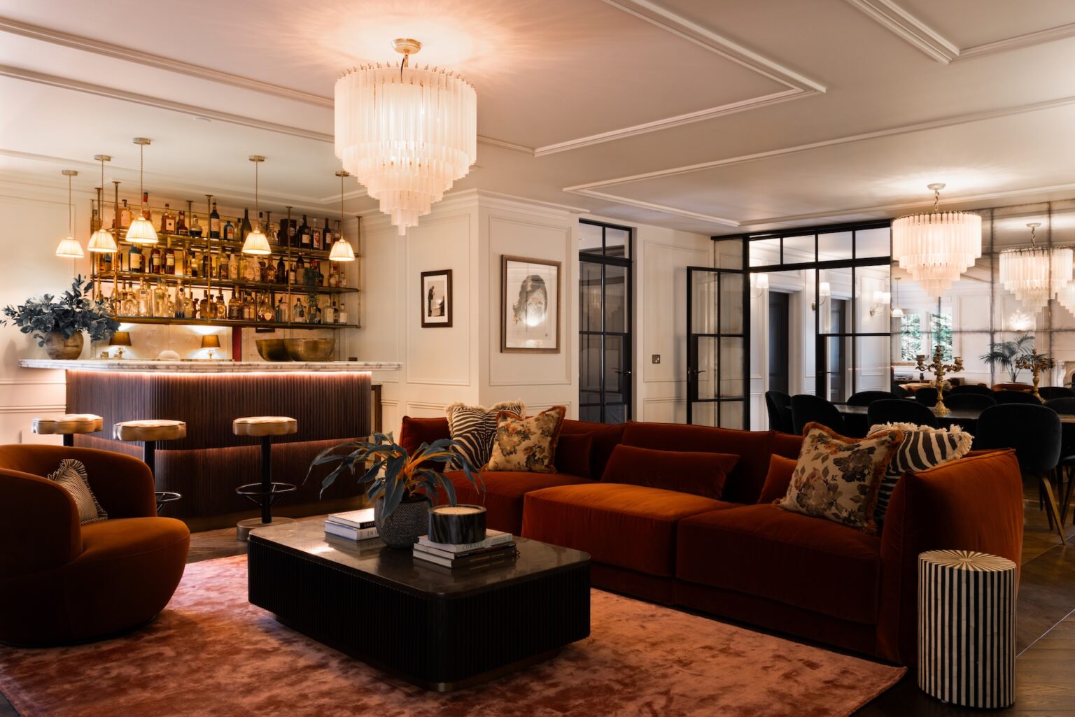 Despite being a family home, the comprehensive renovation by interior designer Sally Anne of Edwards McCoy reimagined every space with bold style and distinctive character. Striking marble, luxurious finishes, carefully designed lighting and personal artworks come together seamlessly, resulting in a home that is both stylish and sophisticated.