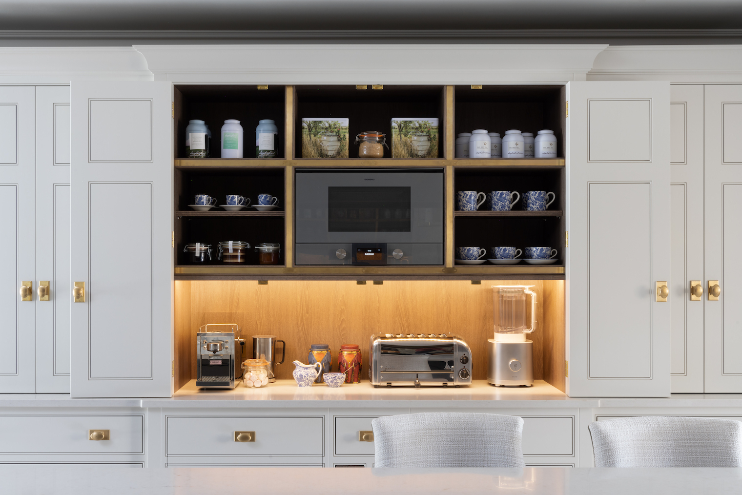 We’re proud to design and manufacture all our kitchens at our workshop in Felsted where the traditional joinery of the past meets the technical innovation of the present. We employ only the finest cabinetmakers whose passion for their craft is proudly displayed in each beautiful handmade kitchen. As well as kitchens, we also design, manufacture and install cabinetry throughout the rest of the home. In order to offer a truly bespoke kitchen design service, we provide a curated selection of accent woods, worktops and hardware along with our own paint range produced exclusively for Humphrey Munson by Mylands.