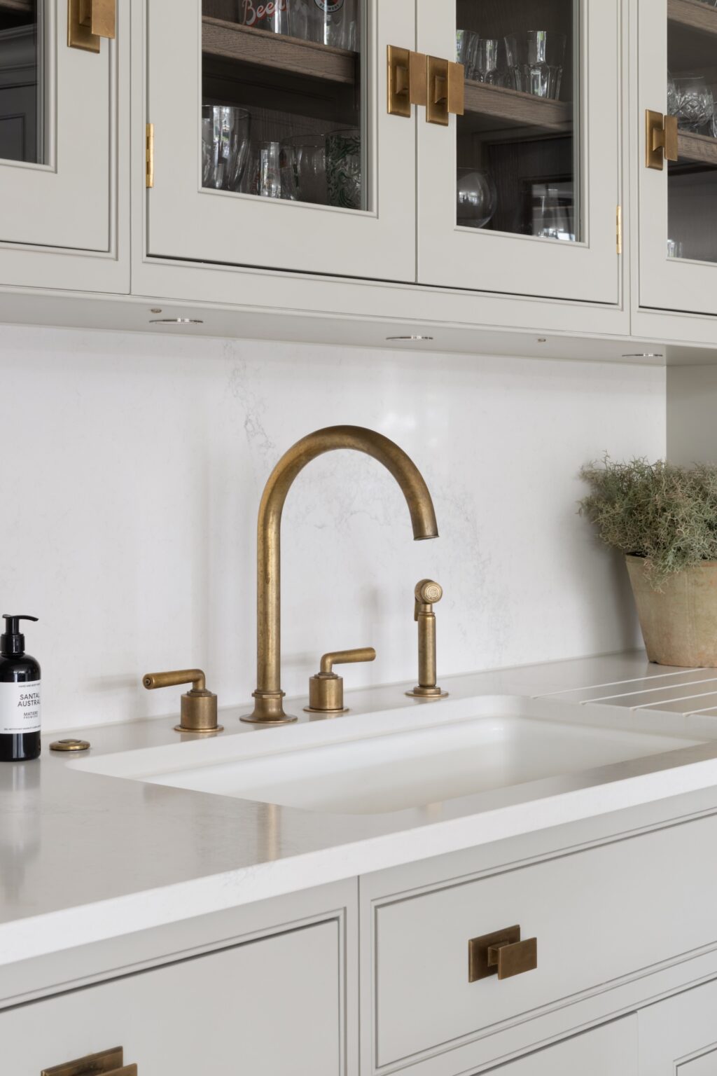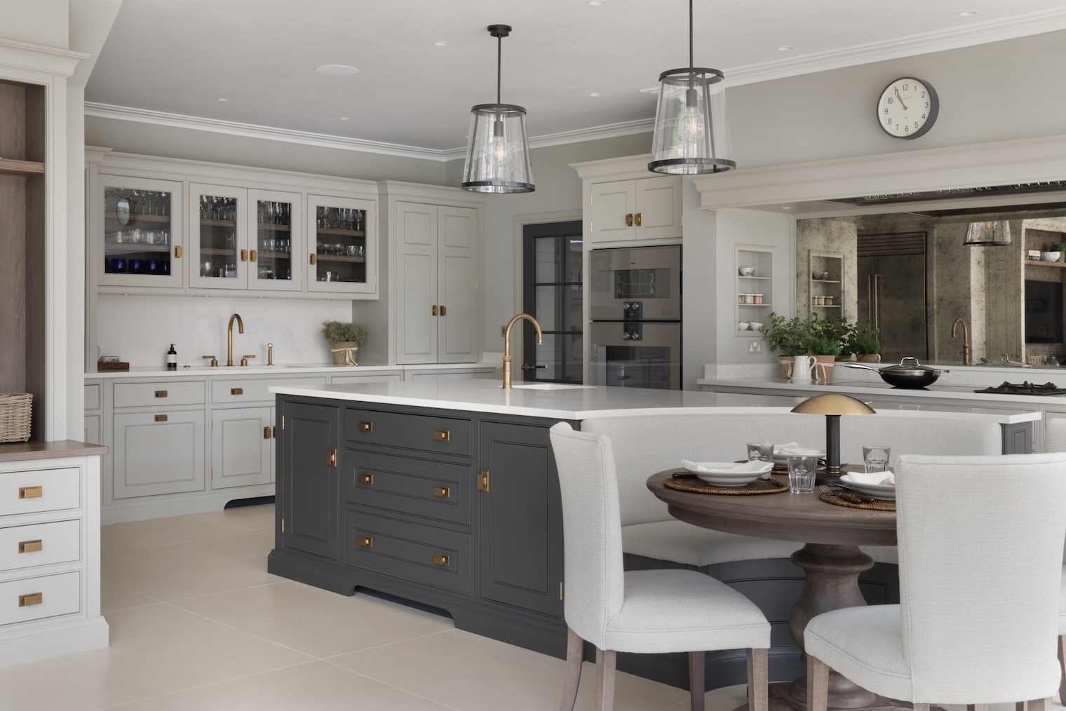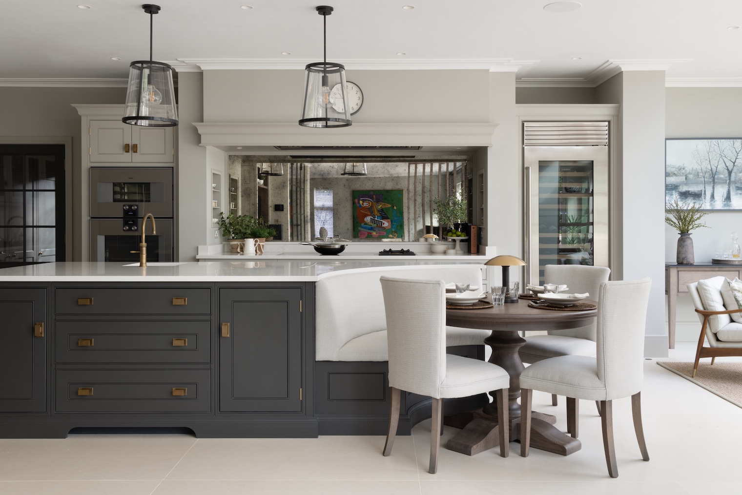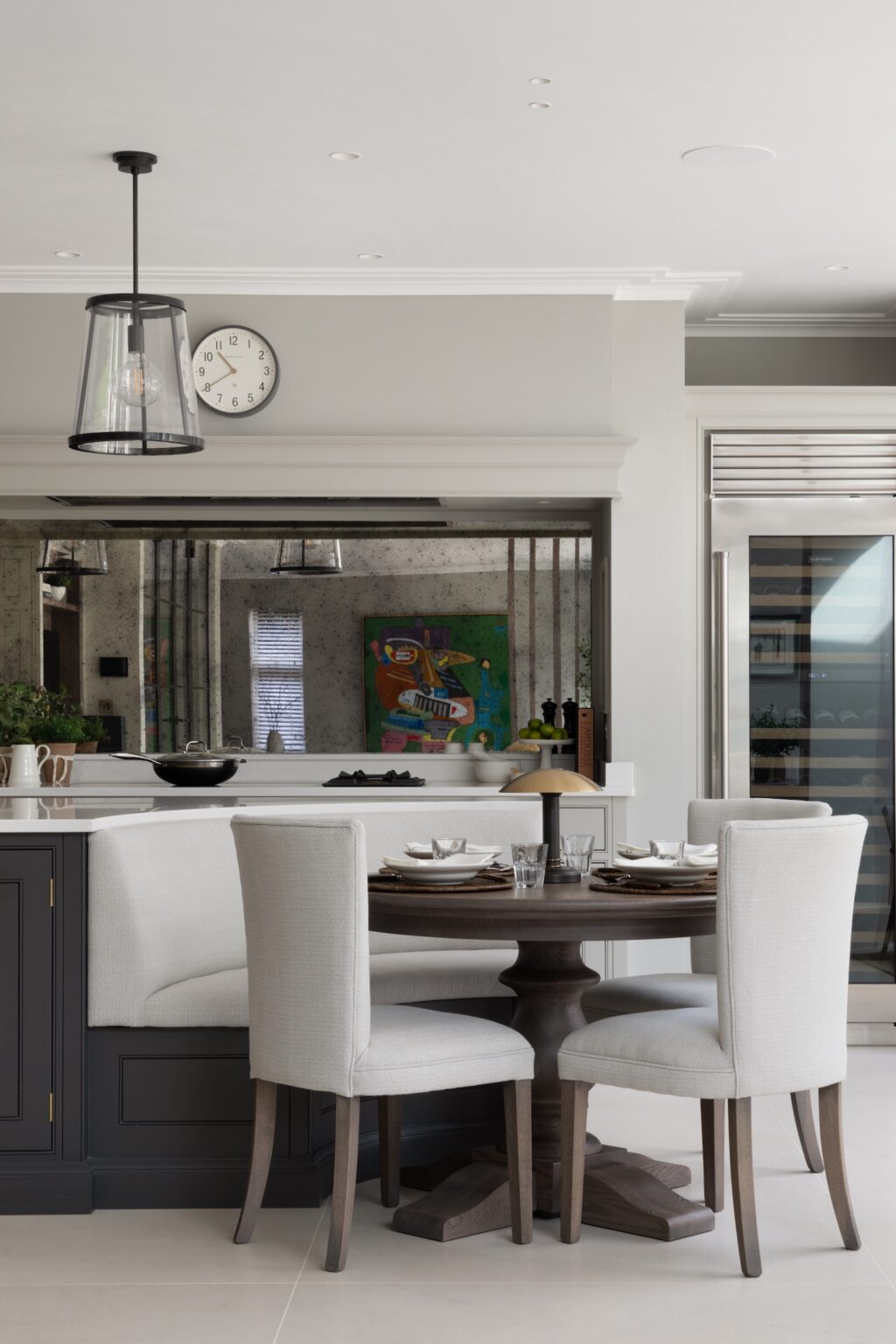 The inclusion of the banquette was something the clients felt strongly about, having seen it in one of our previous projects; it was high up on their wish list and it really steered the kitchen layout. Next to the banquette, there is an additional soft seating area that creates a natural pause point, overlooking the beautiful terrace and garden. It is a quiet spot for coffee in the morning or early evening drinks with the doors open.