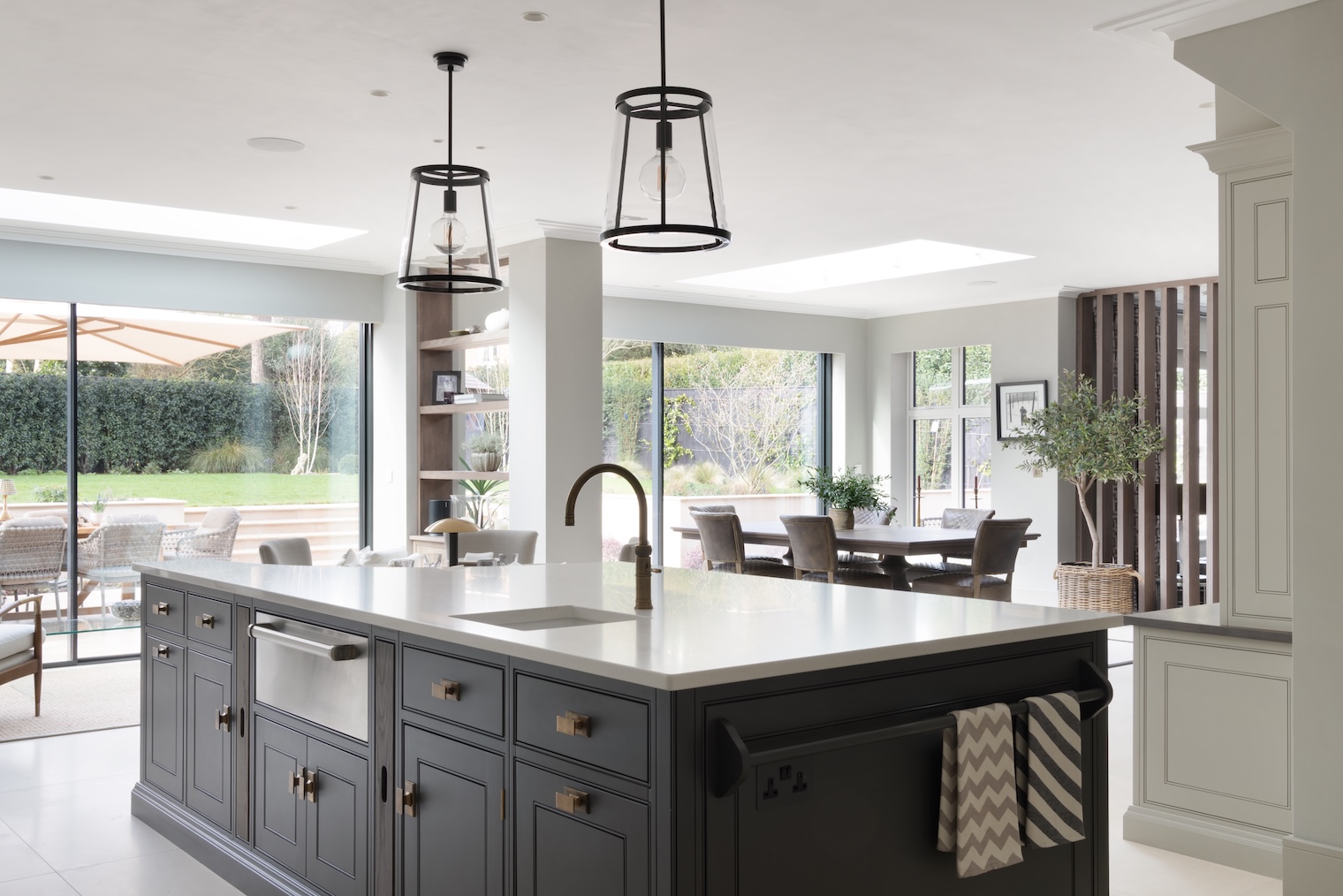 Even the garden was considered an extension of the kitchen. Designed afterwards to ensure alignment, the outdoor seating sits just beyond the patio doors nearest to the kitchen, making dining outside feel completely natural and wonderfully easy.