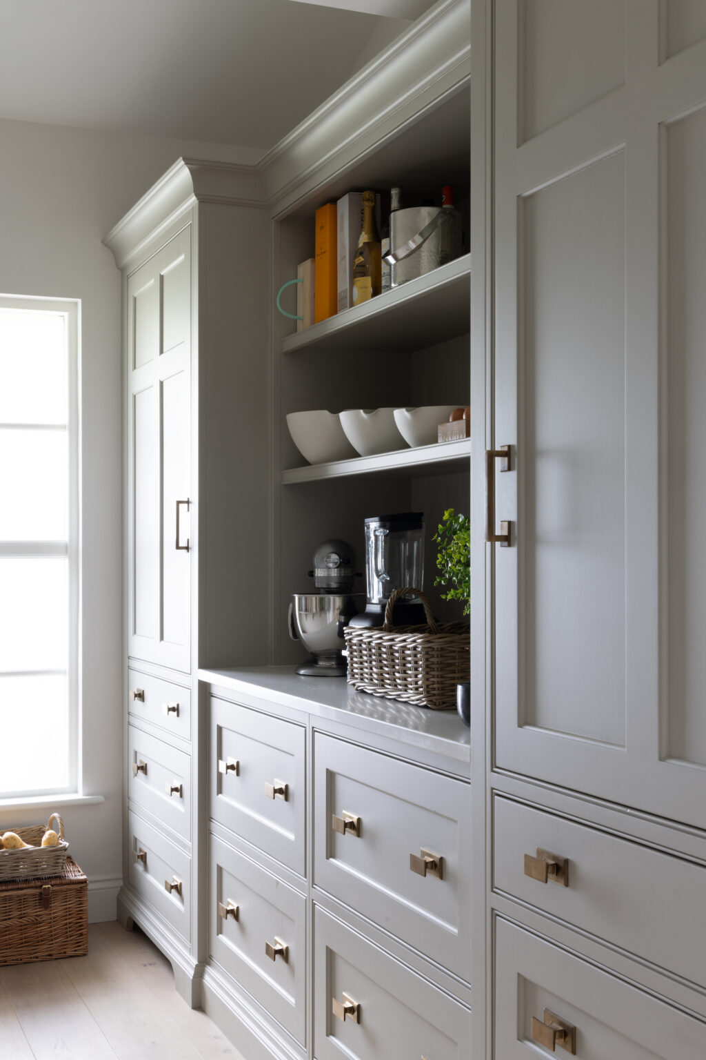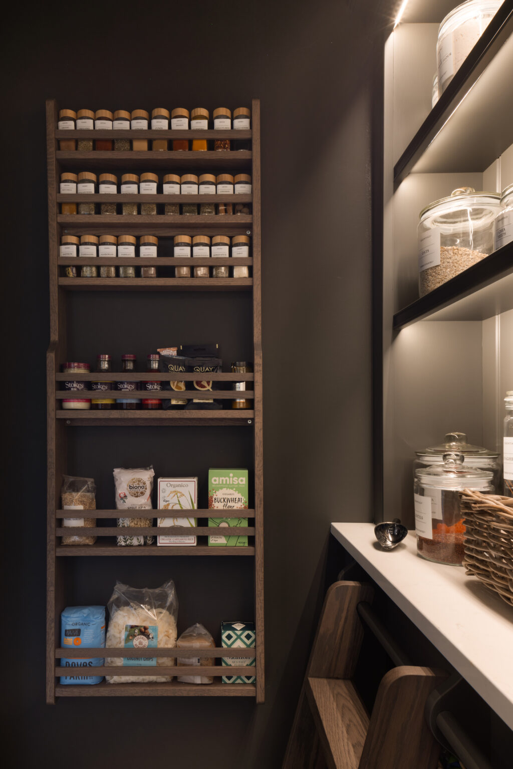 In order to keep the main kitchen area uncluttered, it’s necessary to incorporate storage into other areas – cue the modern pantry.