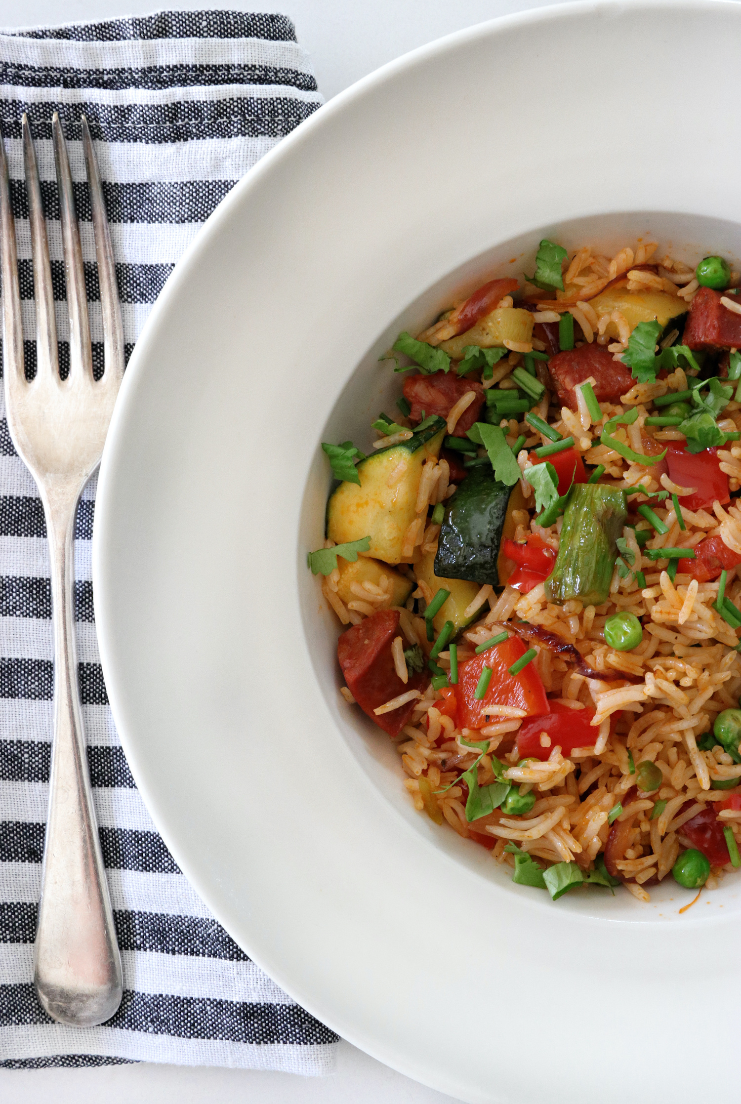 Recipe Notes | Chorizo And Veggie Rice Published: 28-06-2020 A super quick lunch or light dinner dish that’s reminiscent of a good old fashioned Spanish paella without the lengthy cooking time (and the faff), this chorizo veggie rice is perfect for using up the bottom of the fridge contents… It’s so simple and easy it doesn’t really need a recipe at all. You just steam some basmati rice and while that is steaming sauté veggies and chorizo sausage in a pan, add a splash of wine and the steamed rice and season with fresh herbs and black pepper (you may not need salt as the chorizo is very salty but do check!) We used up leftover veggies from the fridge – courgette, asparagus, tomatoes and peppers – you can use anything though, just throw it in with the chorizo over a decent heat. Images: HM Share this article Copy this link https://www.humphreymunson.co.uk/recipe-notes-chorizo-and-veggie-rice/ Share Copy link Previous Article Fisher & Paykel CoolDrawer Next Article 4 Ways to Incorporate a Bench Seat into a Kitchen Design
