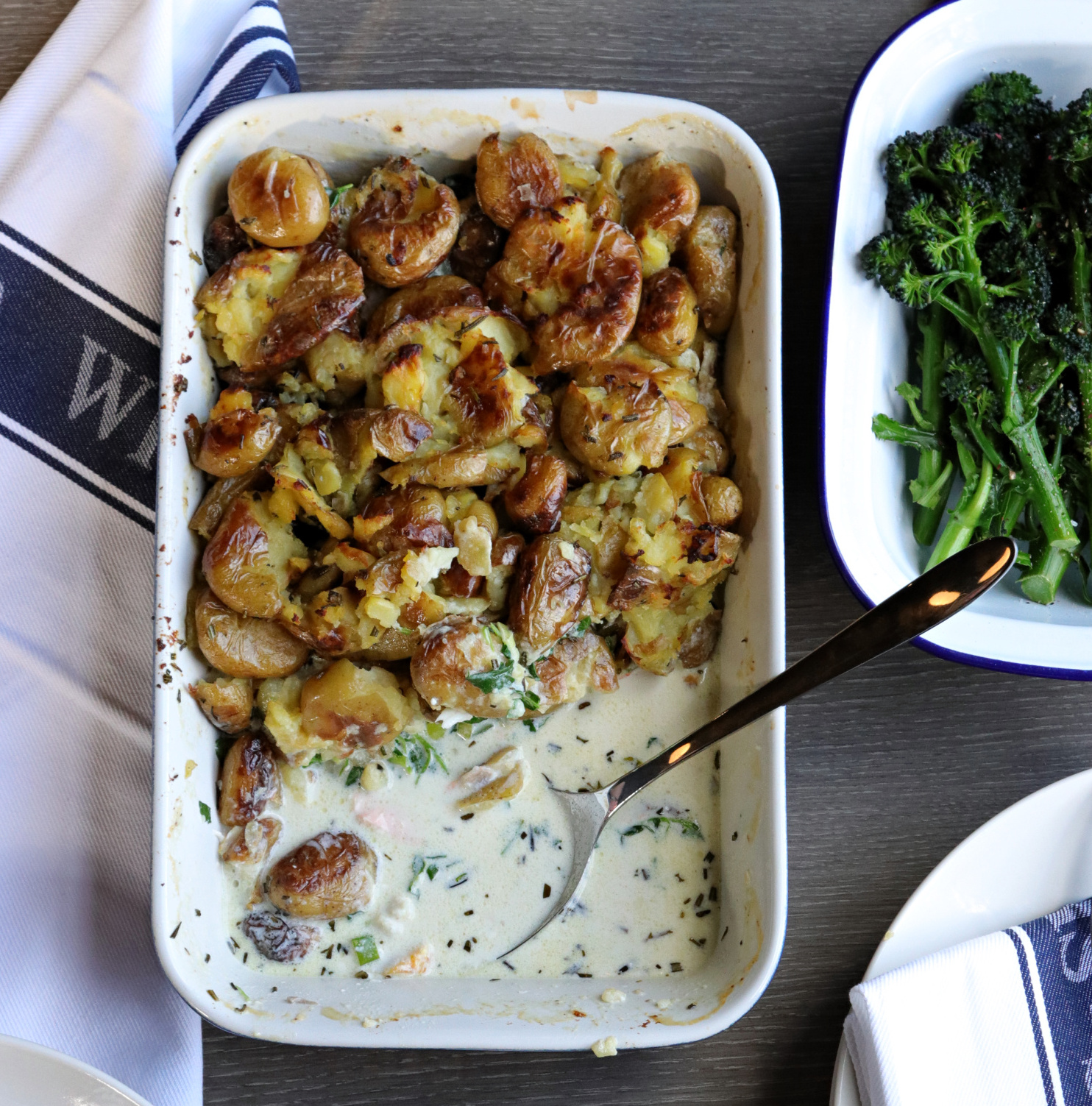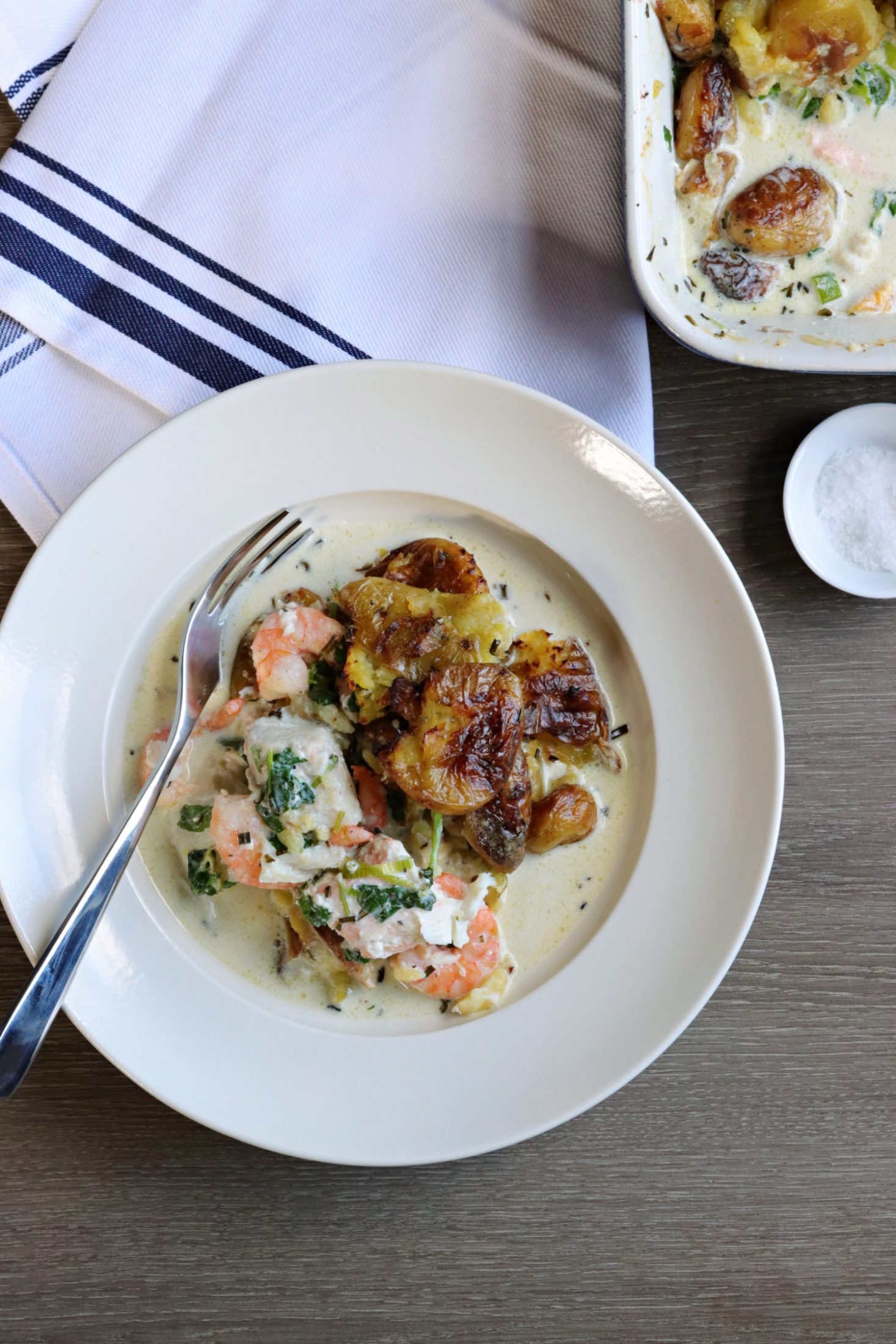 Recipe Notes | Gluten & Dairy Free Fish Pie Published: 31-03-2019 Well we’ve tried this a few times and it’s a winner! The recipe for this dairy and gluten free fish pie is so simple, light and delicious you just have to try it… Ingredients 500g mixed fish – smoked haddock, cod, salmon (we like this one) 180g (or so) raw prawns (these are good) 350ml Oatly cream 3 spring onions, finely chopped Handful of chives, finely chopped 500g new potatoes, sliced in half 100g watercress, chopped Salt and black pepper Fresh nutmeg, approx. 1/2 teaspoon grated (optional) method 1. Place the potatoes on a baking tray curved side down, drizzle with some light olive oil and roast in the oven for approximately 30 minutes or until cooked through and slightly browning. You don’t want them to be too crispy as they are going back in the oven. Remove from the oven and squash on the tray with a potato masher. 2. Next add the cream to a pan and bring to the boil carefully – don’t let it catch, and then reduce to a simmer. Add a little grated nutmeg and salt and pepper and then add the fish (not the prawns) – you can use any fish but we love to include the smoked haddock as it adds such a wonderful flavour. Leave to simmer for 5-6 minutes. 3. Once the fish has simmered, add the mixture to an ovenware dish and mix in the prawns, watercress, chives and spring onions. Top with the squashed potatoes (you could also obviously use normal mashed potato instead if you prefer). 4. Place in a pre-heated oven at 200C fan oven, and cook for 25 minutes until the potatoes are really crispy on top and you can see the sauce bubbling up. 5. Serve with fresh greens! Images: HM Share this article Copy this link https://www.humphreymunson.co.uk/recipe-notes-gluten-dairy-free-fish-pie/ Share Copy link Previous Article Dog Beds Next Article Burleigh Pottery & Ralph Lauren | Spring Collection