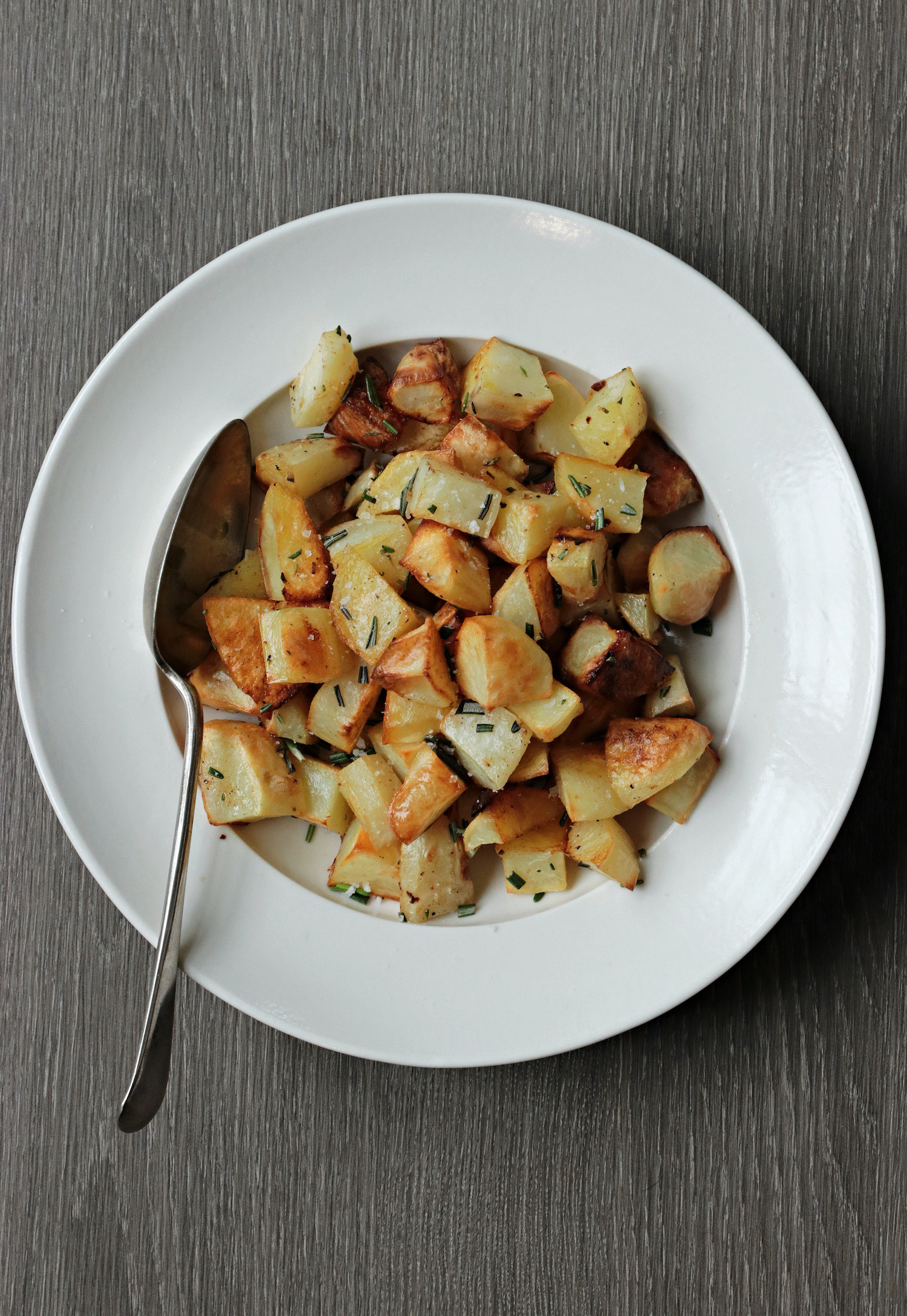 Recipe Notes | Rosemary Roasted Parmentier Potatoes Published: 31-10-2020 A super fast alternative to traditional roasted potatoes, we love these quick rosemary parmentier potatoes and my goodness do they taste incredible. Method We used King Edward potatoes and pre-heated the oven to a fan setting at 200C. While the oven was heating up, we peeled and cubed the potatoes. Then simply add them to a baking tray with a good drizzle of olive oil and shake around to cover evenly with the oil. Season with a little salt and pepper and then place in the oven. The potatoes are quick – it’s a hot temperature and they should take around 30 minutes. Around 5 minutes before the end add some chopped rosemary and shake around in the tray. Place back in the oven for the final few minutes. You don’t want the rosemary to fizzle out in the high temperature so if you even add them at the last second they will still be delicious. You could add a few cloves of squashed garlic too. We served these with the perfect roast chicken and a roasted veggie winter salad – click here to see. Images: HM Share this article Copy this link https://www.humphreymunson.co.uk/recipe-notes-rosemary-roasted-parmentier-potatoes/ Share Copy link Previous Article Recipes Notes | The Perfect Roast Chicken Next Article Recipe Notes | Roasted Winter Vegetable Salad