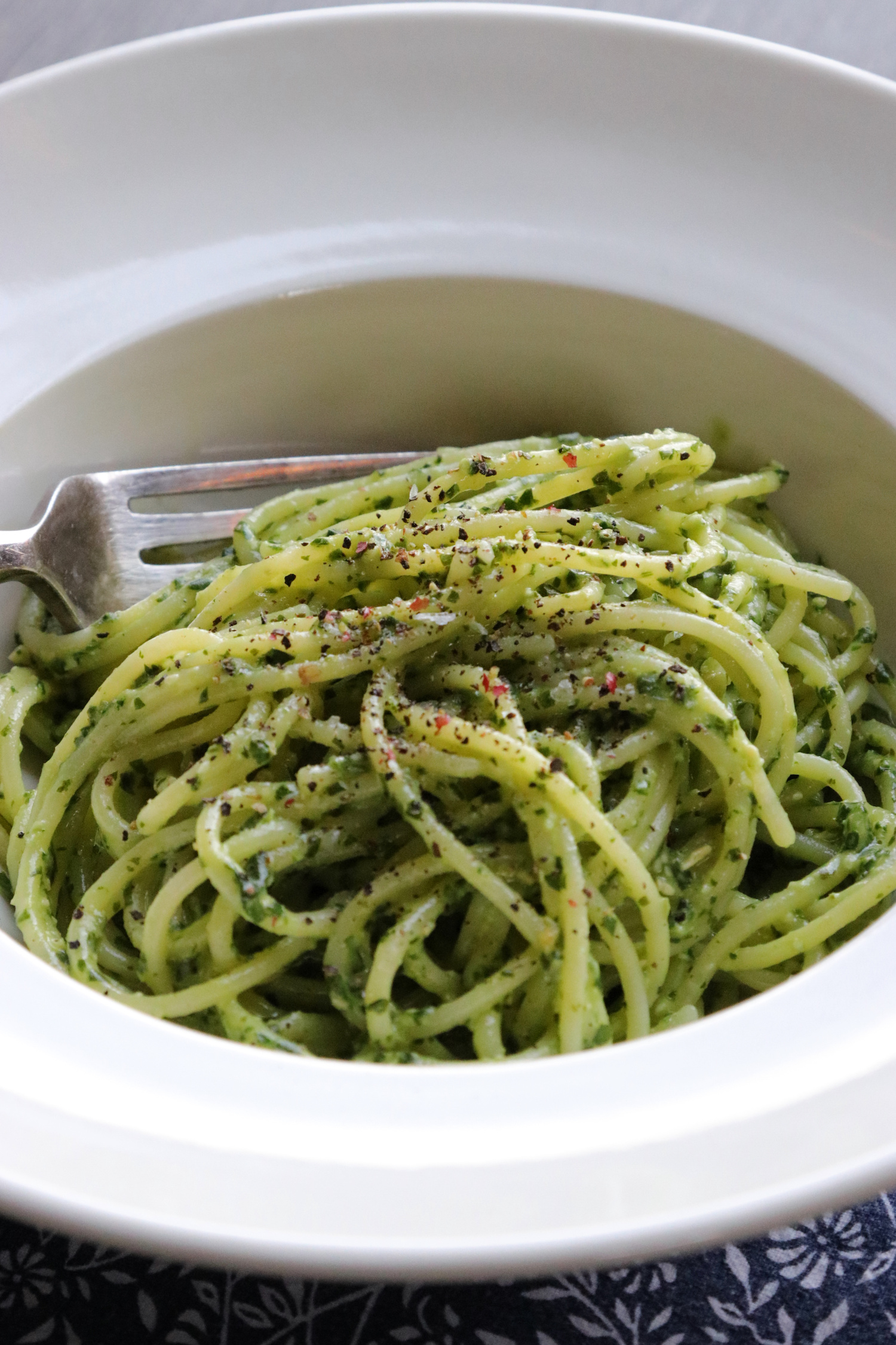 Recipe Notes | Vegan Pesto Pasta Published: 24-07-2019 We have been trying out various versions of a vegan pesto for a few weeks now and we think we have cracked it! This recipe for vegan pesto is really quick – you just add all the ingredients to the MagiMix and combine until you’re happy with the flavour and consistency. Ingredients 400g gluten-free spaghetti 2 large handfuls of fresh basil Finely chopped 1 garlic clove Finely chopped or crushed juice of 1 lemon A few glugs of extra virgin olive oil 1 tbsp of nutritional yeast B12 2 – 3 tbsp pine nuts sea salt and black pepper to taste Method 1. Boil a pan of water and add a pinch of salt. Add the gluten free spaghetti pasta and cook according to packet instructions. 2. Add the basil, pine nuts, garlic, lemon, nutritional yeast and a good pinch of salt and pepper to the MagiMix and blitz. Once you have a paste add the olive oil while the motor is still running and you can do this to suit your own tastes. 3. We serve this with a sprinkle of chilli pepper flakes for an extra kick. Enjoy! Images: HM Share this article Copy this link https://www.humphreymunson.co.uk/recipe-notes-vegan-pesto-pasta/ Share Copy link Previous Article Recipe Notes | Super Fast & Easy Crab Linguine Next Article *New* Spenlow Pantry At The HM Showroom in Felsted, Essex