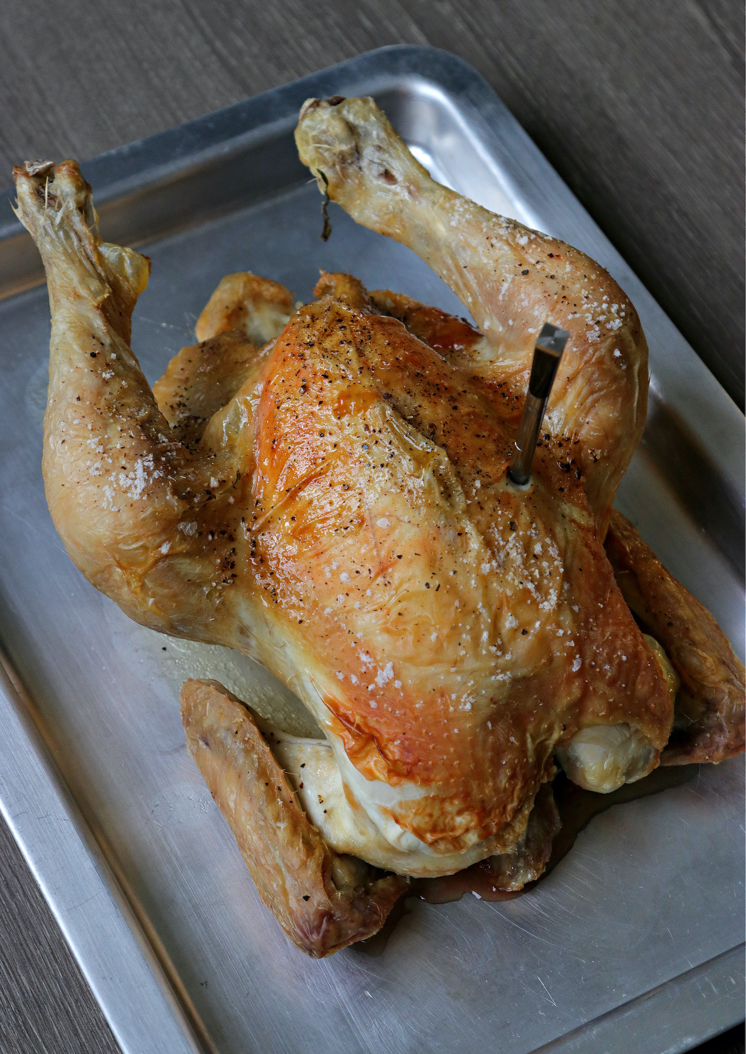 Recipes Notes | The Perfect Roast Chicken Published: 31-10-2020 Is there anything more irresistible or homely that the smell of a chicken roasting in the oven? We love to cook in our HM kitchens and you can guarantee that the waft of roast chicken will make its way into the office and design studio and get everyone’s noses in the air! We wanted to share with you the most perfect roast chicken and how we did it but must confess it was all down to the MEATER probe we used – this is the secret weapon you need in your kitchen! The MEATER probe cooks both meat and fish to utter perfection; so if you want to cook the best roast chicken of your life (think delicate, crispy skin and juicy meat full of flavour) you need this MEATER probe in your kitchen drawer. Developed with state of the art technology combined with an insatiable passion for mouth watering, perfectly cooked food; the MEATER probe is probably one of the best kitchen gadgets we’ve ever used. For clients specifying the Lacanche range cooker, an AGA or any single oven that does not come with a built in probe, we recommend purchasing a MEATER probe so that meat and fish can be cooked perfectly. One of the main benefits of probe cooking for us is that you can just relax when you’re cooking because you’re not worrying about meat being over-cooked; it comes out perfectly every time. For Christmas Day with all the pressure of cooking, the MEATER probe will ensure the turkey (or goose, or frankly whatever you’re having) is cooked perfectly and with zero fuss. We used the MEATER probe which we have in the showroom to cook this chicken – it is so brilliantly simple: 100% wire-free, no fuss, super simple to set up on your phone and it’s seriously clever. The MEATER probe has 2 sensors within a single probe so it monitors the internal meat temperature and ambient temperature of the inside of the oven. The guided cook system literally walks you through every step of the cooking process to guarantee perfect and consistent results and it also included an advanced estimator algorithm so it provides consistently accurate estimate of how long is left to cook and rest your food to help plan your meal and manage your time. For this roast chicken we stuffed the cavity with fresh lemons, garlic and tarragon. We did ensure that the chicken was brought up to room temperature before we roasted it and simply seasoned with salt and pepper. We order organic chicken from Coombe Farm (link here) which are reared in the heart of Pembrokeshire, West Wales, By choosing organic Hubbard chickens from Coombe we feel comfortable that the meat we are eating has been reared ethically and sustainably to organic standards. All Coombe Farm Organic chicken comes from Capestone Organic Poultry, whose family farming heritage dates back to 1826. Here they enjoy free-range lives, with freedom to roam, follow their natural instincts and are fed a bespoke organic feed. We set the Lacanche chalonnais range cooker to convection fan setting at 180C, inserted the probe and then got on preparing the rosemary roasted parmentier potatoes and winter veggie salad. The probe pictured above is the MEATER block which has 4 probes that we use for the Wolf outdoor BBQ for steaks so can ensure they are all cooked to the correct temperature. This has means you can use the stand to set the temperatures and programme the probe without using your phone. It has a long range of up to 50m. It’s always great when you find a truly brilliant gadget that really enhances your time in the kitchen and we have had wonderful feedback from clients who have enjoyed the freedom and peace-of-mind when cooking. To take a look at the MEATER probes available click here, we have the single MEATER probe plus with 5x longer range that is £99, and the MEATER block which has 4 probes and a stand alone function, £279. The block is useful if you think you’ll use it for the BBQ in the summer or if you are doing an extra large turkey at Christmas and want to have two probes to check the temperature of the breast and leg meat at the same time. Otherwise the single longer range option is brilliant and you can set up on your phone so easily. If you want to order a MEATER probe, we have a special code to use which is HUMPHREYMUNSON15 and this will give you 15% off the price. To find out more about MEATER click here. Share this article Copy this link https://www.humphreymunson.co.uk/recipes-notes-the-perfect-roast-chicken/ Share Copy link Previous Article Step inside the London home of Interior Designer Lily Paulson-Ellis Next Article Recipe Notes | Rosemary Roasted Parmentier Potatoes