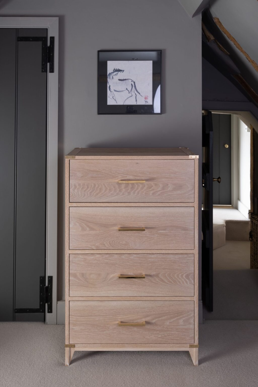 The Lancaster chest of drawers combines beautiful proportions, practical storage and classic design. Handmade using traditional joinery techniques at Humphrey Munson’s workshop in Felsted, Essex, the Lancaster chest of drawers is available in several finishes and shown here in Berkeley oak. If you would like any guidance choosing an oak finish, please don’t hesitate to
