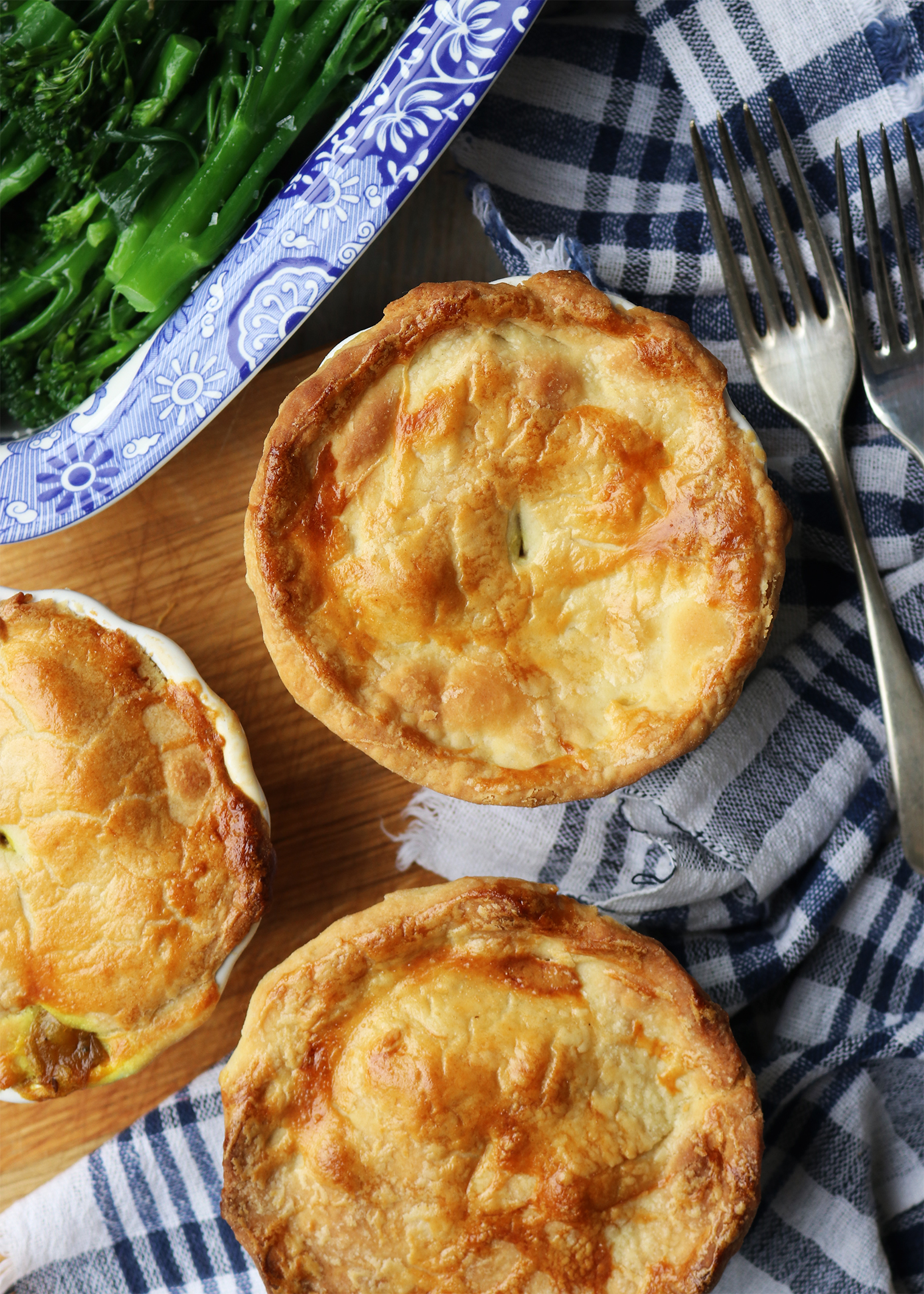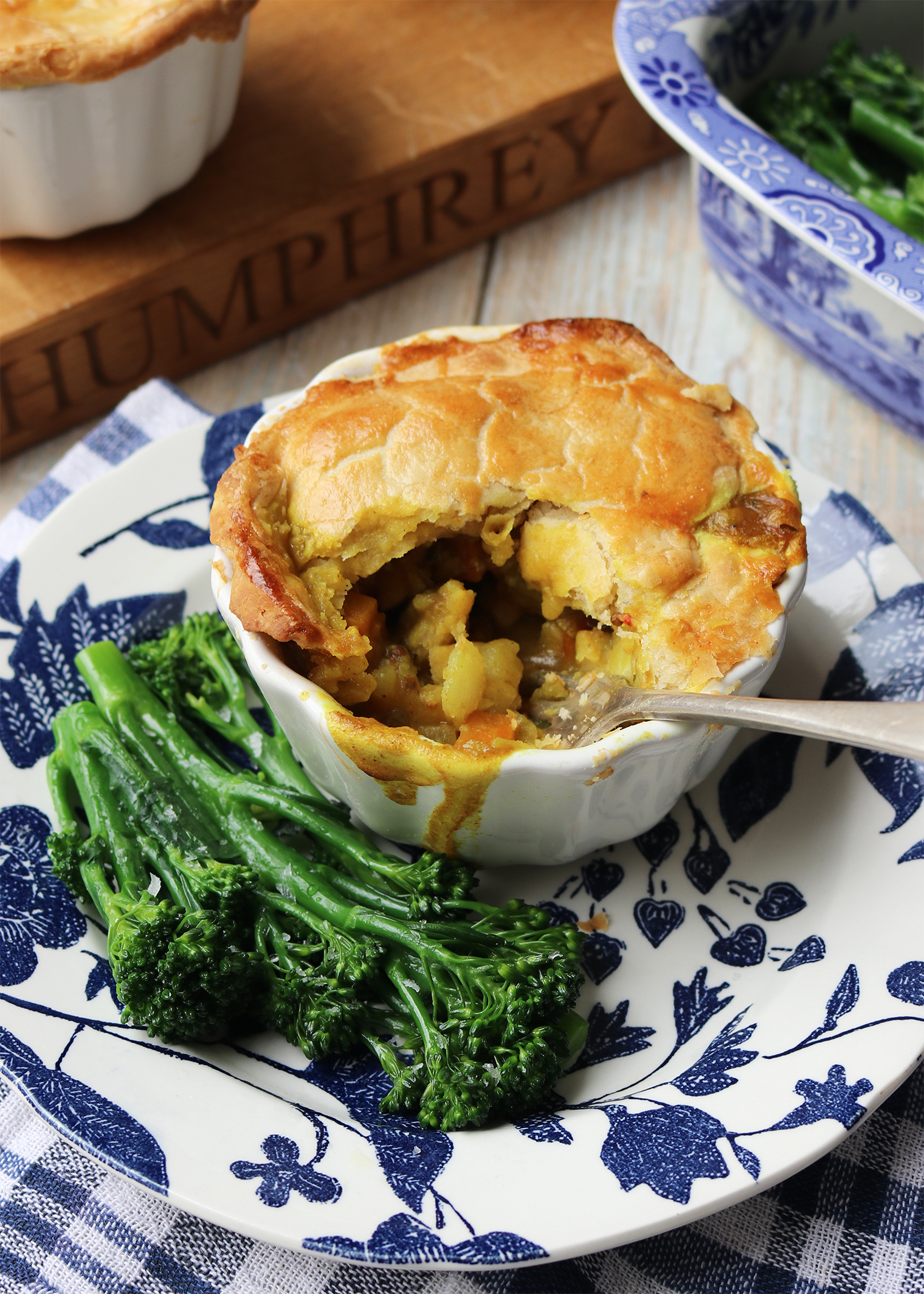 Spiced Vegetable Pies Published: 27-10-2024 It is officially the season of crisp walks, cosy evenings and perhaps most importantly, comfort food. These spiced vegetable pies make the most of the seasonal vegetables on offer and are packed with flavour – perfect for when you’ve got a little more time on your hands. You can of course use shop bought pastry, but there’s something extra special (and satisfying) about making it yourself. INGREDIENTS (Makes 6 mini pies or one large pie) 1 white onion 225g peeled and chopped potatoes 250g chopped carrots 225g peeled and chopped celeriac 110g peeled chopped parsnips 110g chopped chestnut mushrooms 2 large garlic cloves 2 Tbsp olive oil 2 heaped tsp cumin seeds 2 heaped tsp coriander seeds 2 heaped tsp turmeric 2 Tbsp plain flour 300ml vegetable stock Tsp sugar Pastry 450g plain flour (plus a little extra for dusting) Sea salt 150g unsalted butter 175ml water 1 free range egg (egg wash) METHOD Cut the vegetables into uniform cubes of about 2cm and set aside. Add the cumin seeds and coriander seeds to a pan and cook for 1-2 minutes – do not let them burn – before tipping into a small dish with the minced garlic, turmeric and a pinch of salt and pepper. Then crush together before setting aside. Add all your vegetables to the pan with 2 tbsp olive oil and give it a good mix. Sweat on a gentle heat, stirring occasionally so they don’t catch on the bottom. Remove from the heat and add the spice mix. Sprinkle over the flour and sugar then stir well before placing back on the heat. Gradually add the vegetable stock, stirring all the time. Once all the stock is in the pot, cover and simmer for 20-30 minutes, stirring occasionally. The vegetables need to be slightly tender, not mushy. Whilst the vegetables cook, the pastry can be prepared. Begin by sieving the flour and a good pinch of sea salt into a large mixing bowl. Make a well in the centre. Dice the block of butter and add to a saucepan with the water and bring to the boil. Pour the liquid into the flour bowl all at one and beat together quickly, until smooth. The pastry dough will be too hot and too soft to roll out at first. Let it cool for 5-10 minutes before rolling out on a clean flour dusted work surface. Be sure to dust the top of the dough too, to stop the rolling pin from sticking. Roll until it is roughly 5mm thick. Once the vegetable mix is ready, set aside to cool slightly before evenly spooning into the pie dishes. Add the pastry tops and pinch the edges to help them stick to the dish. Brush the tops with egg wash and pierce a small hole in the top of each with a sharp knife. For decoration, you can use the offcuts to create patterns on the top. Bake for 30 minutes or until golden brown on top. Some pies may leak a little, but that’s part of the charm of making a homemade pie. Serve with tenderstem broccoli and for an extra comfort food fix, creamy mash. Top tip: Add cooked chicken thigh for the carnivores in your life, it will remain tender during cooking and complement the spices beautifully. Images: HM Share this article Copy this link https://www.humphreymunson.co.uk/spiced-vegetable-pie-recipe/ Share Copy link Previous Article The HM Drinks Cart X Maison Mirabeau | Summer Entertaining in Style Next Article Baked Apples With Berry and Marzipan Crumble