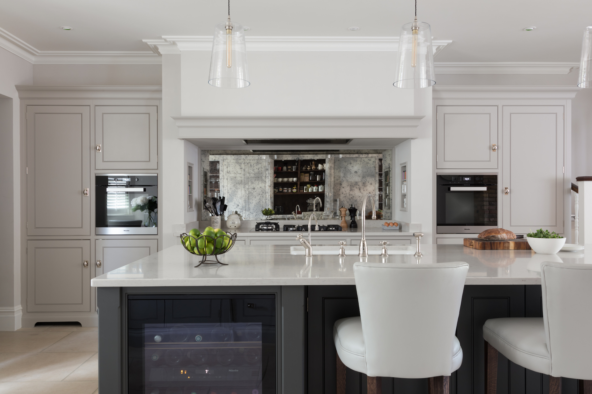 Tailored Grey Published: 28-04-2020 The HM paint colour ‘Tailored Grey’ is a beautifully balanced and understated soft taupe grey that took many months of R&D to get absolutely perfect. Like every paint colour, it looks so different depending on the light and architecture of the space. Working in perfect contrast with both darker and lighter colours, ‘Tailored Grey’ looks amazing when paired with polished nickel, brushed nickel, weathered bronze or aged brass hardware. Tailored Grey is a great colour for classic contemporary projects and to illustrate this we’ve put together a selection of some projects that have specified this as the perimeter cabinetry colour.. B A R N E S V I L L A G E P R O J E C T View the Barnes Village project here. S H A D T H A M E S P R O J E C T View the Shad Thames apartment project here. H A M S T E A D P R O J E C T View the Hampstead project here. N O R T H L O N D O N P R O J E C T S T . A L B A N S T O W N H O U S E P R O J E C T View the St. Albans Townhouse project here. W O R C E S T E R S H I R E P R O J E C T Worcestershire Project. C R O U C H E N D P R O J E C T View the Crouch End project here. Easy to maintain, sustainably made and available in eggshell for cabinetry and emulsion for walls, the HM paint collection is made exclusively for us by Mylands. We chose to partner with Mylands for our bespoke paint range due to their unrivalled quality, attention to detail and wonderful customer service. The paints are available to HM clients only. For more information about the design process at Humphrey Munson please email us at info@humphreymunson.co.uk or call us on 01371 821300. Images: Paul Craig Share this article Copy this link https://www.humphreymunson.co.uk/tailored-grey/ Share Copy link Previous Article Q&A with Alexandra Stacey | French Family Food Next Article Berkeley Oak