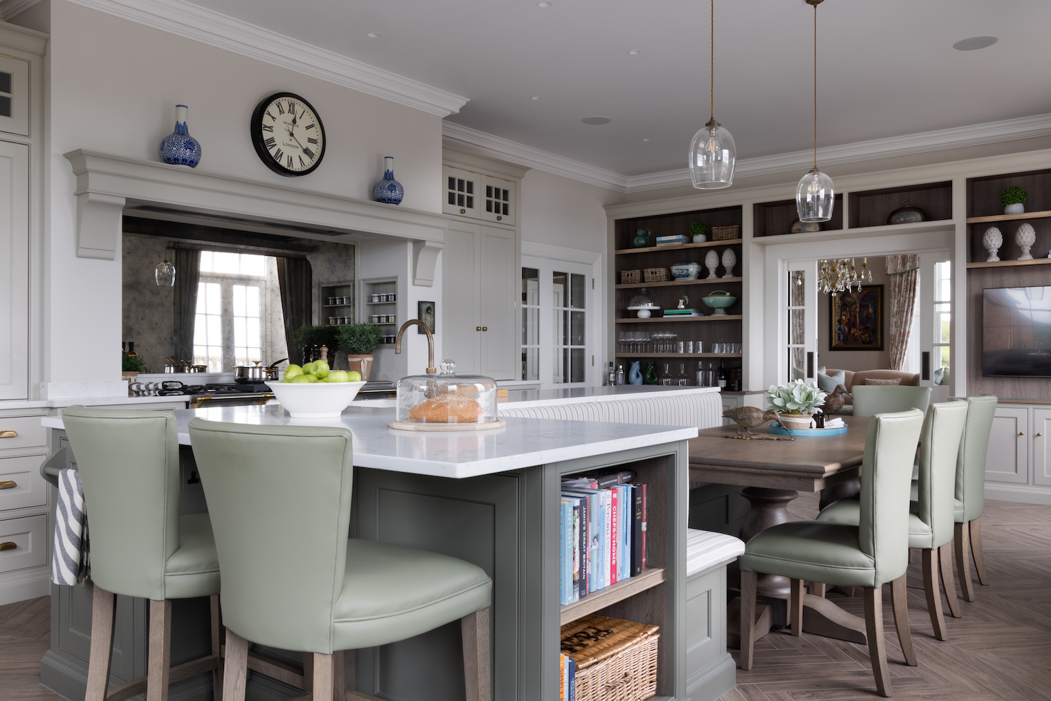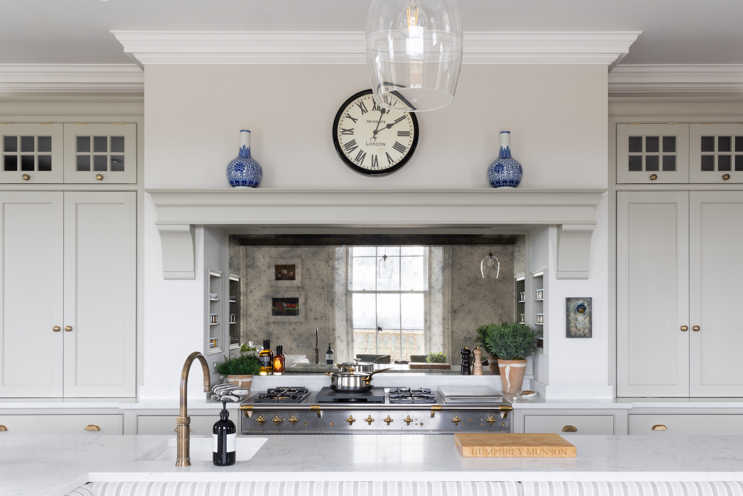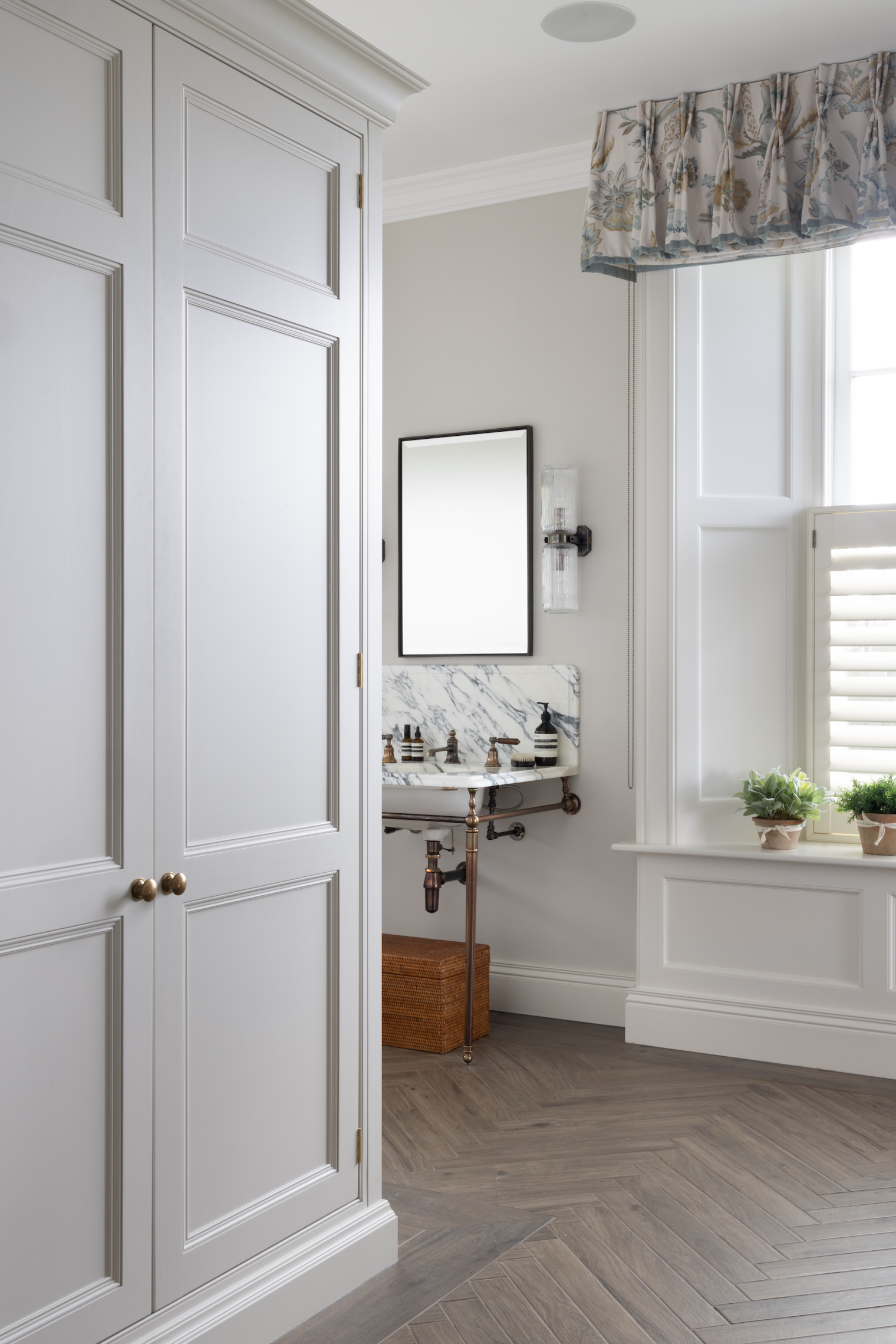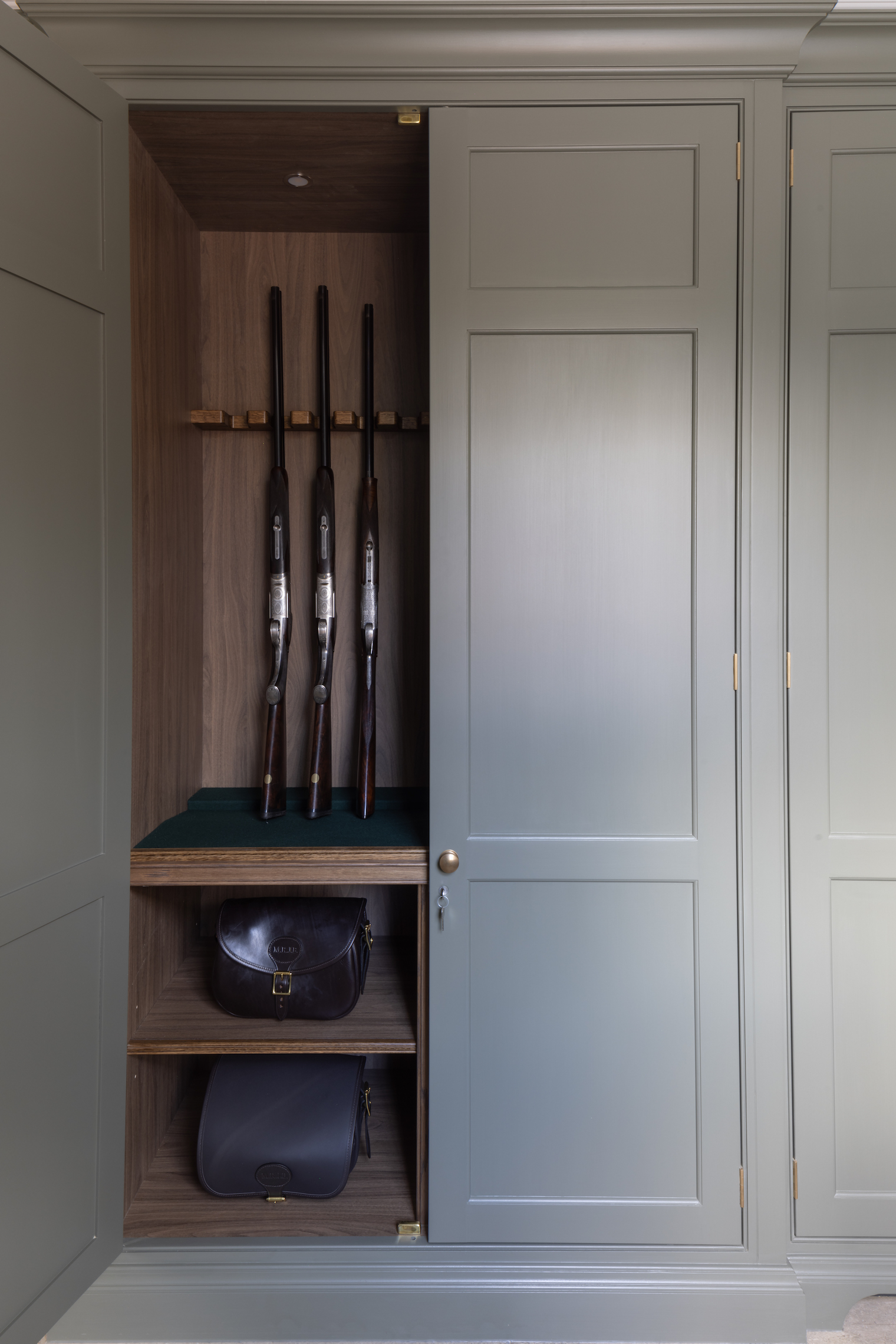 The Yorkshire Project | A Classical New Build in the Queen Anne Style Published: 04-06-2023 Perched atop a hill, overlooking the enchanting Yorkshire Dales, stands a remarkable new build country house in the Queen Anne style that effortlessly embodies the true essence of classical design and craftsmanship. With meticulous attention to detail and an unwavering commitment to heritage, this architectural masterpiece showcases the legacy of creating a home that seamlessly blends with its picturesque surroundings. Our clients brought together a brilliant, proactive and collaborative team including architects Bramhall Blenkharn Leonard, interior designer Averil Interiors and new build specialists Keepsake Construction to ensure that every corner of the house exudes timeless elegance. We were commissioned to design, manufacture and install the cabinetry found throughout the large kitchen and dining area, utility room, boot room, drying room & gun store, study as well as the bar and media cabinetry in the basement entertaining area and the principal dressing room. “A truly beautiful house that deserved to be built”. The construction of the previous dwelling built during the 1960’s revealed the telltale signs of its era; asbestos and a complete lack of essential insulation including cavity wall, loft, and floor insulation. Visually chaotic, the original house was something of an unfortunate smudge upon the pristine canvas of the breathtaking landscape. Enter the visionary design of the new dwelling, drawing inspiration from the timeless Queen Anne architectural style. Imbued with an air of elegance and sophistication, the front and rear elevations boast a formal aesthetic that pays homage to the classical grandeur of the era. Majestically spanning two storeys, the principal section of the house is graced with charming dormers in the roof space, while a single-storey extension neatly adorns the northern side of the dwelling, providing ample space for the back hall / utilitarian spaces. With great respect for the surrounding landscape and the region’s rich architectural heritage, the proposed dwelling harmoniously melds with its expansive grounds. The use of a restrained classical style, reminiscent of grand estates, pays homage to the county’s storied past and evokes a profound sense of place. This country house is not just an exceptional creation in terms of the aesthetics, it also embraces an unwavering commitment to sustainability and was carefully designed to incorporate a range of features, ensuring its energy efficiency and environmental performance including ground source heat pump, photovoltaic array, underfloor heating, insulated thermal envelope and thermal bridge minimisation. Approaching the residence, one is immediately captivated by the grandeur and stately presence of the house. Designed with utmost care, the facade pays homage to the region’s architectural heritage, featuring 55,000 bricks handmade locally and elegant Georgian-style windows. As the imposing front gates swing open, visitors are greeted by a quiet sense of anticipation. The Heart of the Home: The Kitchen Stepping into the expansive kitchen, the design intention was all about celebrating the beautiful views across the Dales. The remarkable craftsmanship and attention to detail by HM has really brought this room to life with an incredible cooking run featuring an enormous chimney surrounding the 1500mm Lacanche Citeaux range cooker. The cabinetry, finished in a timeless palette, effortlessly blends with the surroundings, creating a harmonious and inviting atmosphere. From the elegant open display cabinetry either side of the entrance to the family room, to the practical yet stylish kitchen island incorporating banquette seating, every element is thoughtfully designed to enhance functionality and aesthetics, ensuring that this space becomes the heart of the home. Functional Beauty: Utility Room, Boot Room, Drying Room & Gun Store Housed within the single storey extension to the northern side, the utility room, boot room, drying room and gun store boast the same level of craftsmanship and attention to detail throughout. We are so proud that Humphrey Munson’s expertise in creating beautiful yet functional spaces shines through in the thoughtful storage solutions and carefully selected materials. The cabinetry seamlessly integrates practical elements, such as pull out wellies drawers, and drying cupboards, with a design aesthetic that complements the overall classical style of the house. The boot room provides the perfect haven for decamping after hours in the field with space to dry muddy wellies and outdoor gear in a room designed just for drying. It offers such an amazing sense of organisation and elegance that makes coming and going a real pleasure. A Sanctuary for Work: The Study Within a country house of this size, finding a serene space to work or retreat to for quiet contemplation is essential. The study, adorned with Humphrey Munson’s bespoke cabinetry, provides just that. Handcrafted bookshelves line the walls, displaying cherished volumes and personal mementos. The beautiful desk, with its refined detailing and carefully selected finishes, sets the stage for productivity. Here, you can close the door and immerse yourself in the perfect blend of functionality and refined design. Elevating Entertainment: The Bar and Media Cabinetry In the quest to create a home that seamlessly blends relaxation and entertainment, the bar and media spaces in this Yorkshire country house truly shine. Humphrey Munson’s expertise in cabinetry is showcased in the elegant bar, where beautiful storage solutions meet luxurious finishes. Antique effect mirror provides a subtle backdrop while the Monkey Lamps in silver by Patrick Mavros bring an unforgettable slice of African luxury. The media cabinetry, designed to house state-of-the-art audiovisual equipment, blends effortlessly with the overall classical aesthetic, crea