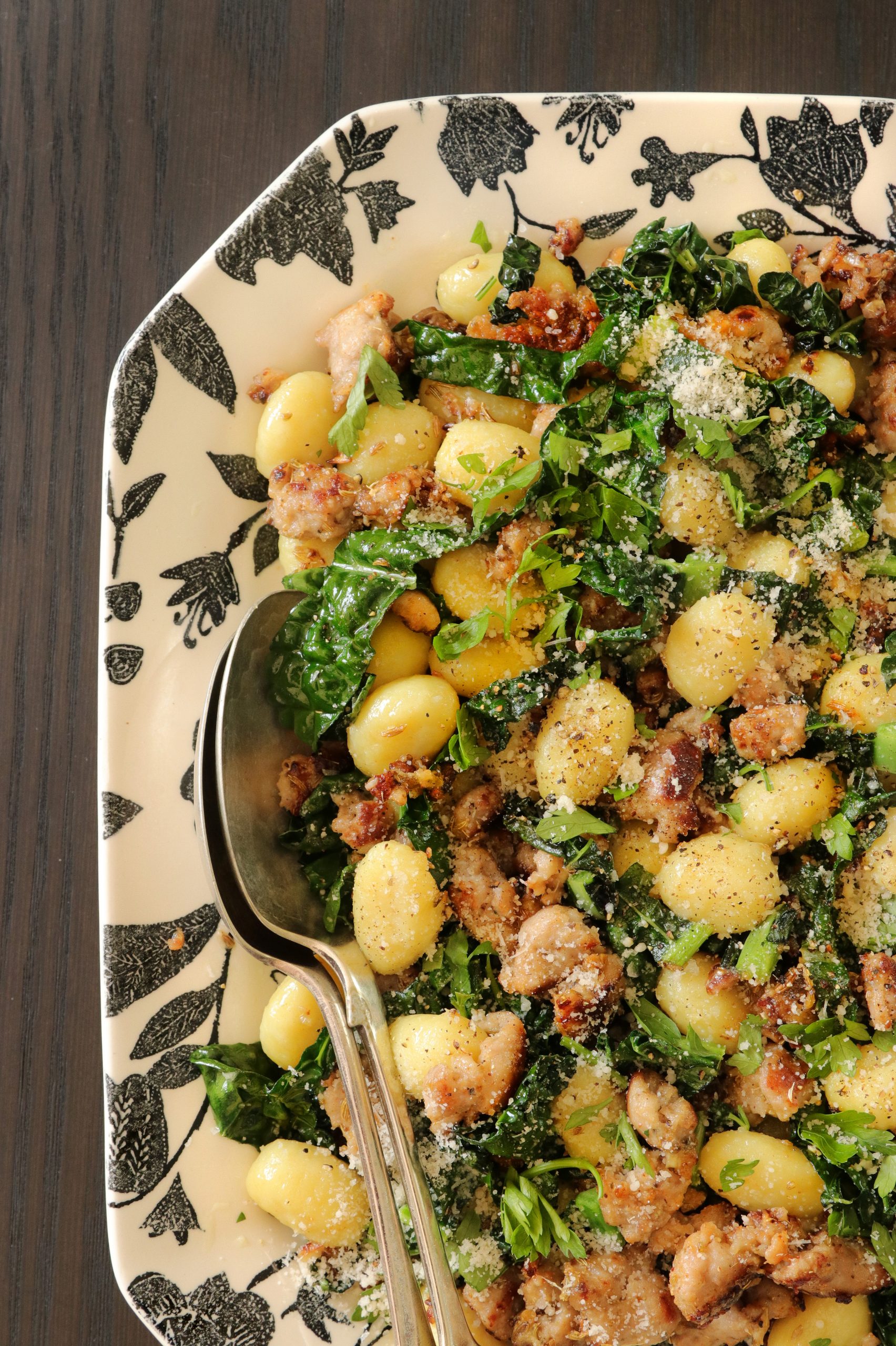 Tuscan Sausage & Cavolo Nero Gnocchi Published: 25-07-2021 Like so many of the recipes we share on the HM blog, this one can be adapted to whatever you have in the fridge and great for using up leftover veggies about to expire. Often we find these are the most delicious lunches! We had a big bunch of cavolo nero in the fridge and some sausage meat so we created this dish in just a few minutes using what we had in the pantry. Method There isn’t a recipe as such for this but the notes are below: We fried off the sausage meat in a non-stick pan – no oil required – and as soon as the bits started to brown we added some ground fennel seeds – around 2 tbsp so it was nice and strong. Next we added some garlic and the sliced cavolo nero and stirred in well over a medium heat – you don’t want the garlic to burn. While this was going on we cooked the gnocchi in a pan of boiling water until they rose to the top, and as they did we spooned them into sausage mix pan with a slotted spoon. Once all the gnocchi was added, we seasoned with salt and pepper and cooked out for 1-2 minutes to let the gnocchi catch a little and brown in places. We added fresh parsley and lots of parmesan to serve (add crushed chilli flakes for a kick if needed!) All in all, this took around 10-12 minutes to prepare so this would be a great option for a mid-week meal if you’re running behind. We’ve done versions of this before with pancetta and broccolini / spinach – it is so quick and delicious. Enjoy! Images: Humphrey Munson Share this article Copy this link https://www.humphreymunson.co.uk/tuscan-sausage-gnocchi/ Share Copy link Previous Article Q & A with Polly Wilkinson | Pollyanna Wilkinson Garden Design Next Article Q&A with Concept8 Architects