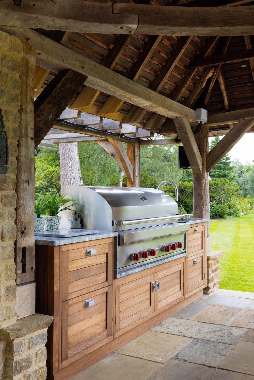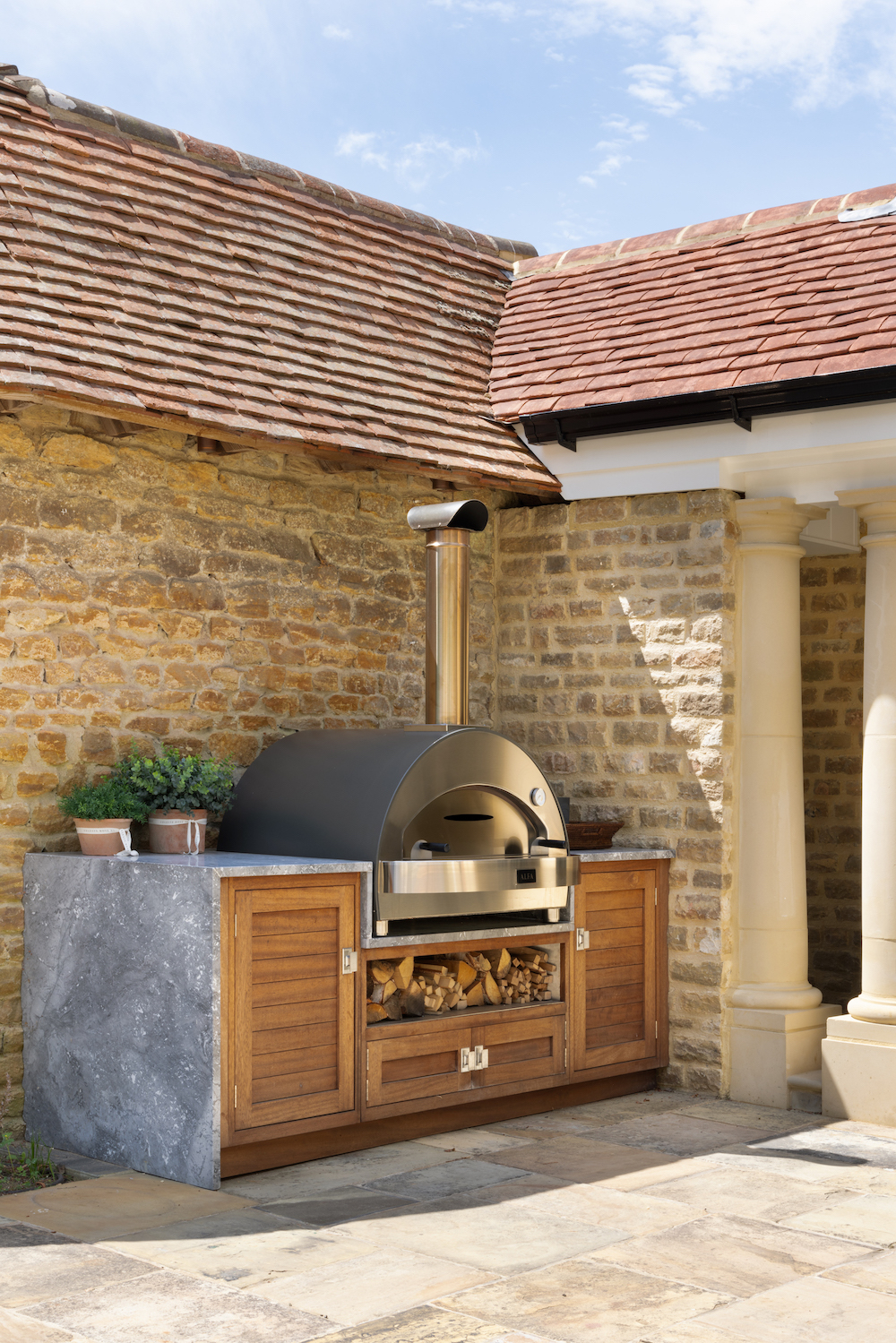 Ultimate Outdoor Kitchen | Everything tastes better al fresco Published: 13-08-2023 Unveiling the Culinary Oasis Welcome to the incredible outdoor kitchen at The Haslemere Project by Humphrey Munson. This culinary haven transcends the ordinary, offering not just a place to cook, but an experience to savour with friends and family all year round. Comprising two distinct zones, the BBQ kitchen with the Wolf outdoor grill and the artisanal pizza kitchen with the Forno 4 pizze oven by Alfa Forni, this space redefines al fresco dining with sophistication and flair. Crafting Longevity: Iroko and Stainless Steel in Markham Design Cabinetry At the heart of the Markham design lies a commitment to enduring quality. The cabinetry, meticulously constructed using the robust Iroko timber, stands as a testament to this ethos. The choice of Iroko, an exceptionally durable wood, is matched by the resilience of bespoke stainless steel hardware designed by Peter Humphrey with Joseph Giles. These materials not only ensure the longevity of the cabinetry but also create an exquisite interplay between form and function. The Markham design, with its subtle contemporary flair, harmoniously complements the formal design of the country garden. Anchored in the principles of simplicity, scale, and proportion, it embodies the essence of every Humphrey Munson kitchen. Precision Perfected: The Wolf Outdoor Grill Immerse yourself in a world where precision meets passion, and outdoor cooking reaches new heights. The Wolf 137 cm Built-In Outdoor Gas Grill is a revelation that transforms hit-or-miss outdoor grilling into an art form. Embodying the precision and ease-of-use of its indoor counterparts, this grill promises culinary excellence. From perfectly seared fillets to sizzling vegetables and irresistible applewood bacon, this grill’s capabilities are limitless. The ICBOG54 features six individually controlled burners, an infrared sear zone for sealing in flavours, and two-position rotisseries that conjure succulent chicken or pork. Illuminated by halogen lights, this grill becomes a stage for late-night culinary creations. Crafted in sculpted stainless steel, it’s not just a grill; it’s a statement of culinary innovation. Sub-Zero Drawers: Cool Elegance for Al Fresco Refreshments Elevating the art of outdoor entertaining, the outdoor kitchen at The Haslemere Project boasts more than just culinary marvels. Nestled within its well-thought-out design are Sub-Zero drawers dedicated to storing drinks in the most elegant manner possible. Combining style and functionality, these drawers are a testament to the commitment of Humphrey Munson to curate spaces that delight and inspire and are exquisitely finished with custom Markham furniture drawer fronts. The Sub-Zero 610mm Under Counter All Refrigerator drawers are a seamless addition to our outdoor kitchens that redefines convenience. This marvel isn’t just Sub-Zero’s first outdoor refrigerator; it’s a testament to innovation and elegance. The ICBID-24RO boasts a spacious 71L capacity, keeping your provisions fresh for longer through smart-touch technology that allows temperature adjustments from 1°C to 7°C. The art of organisation is elevated with adjustable dividers, catering to your arrangement preferences for fresh foods, beverages, and snacks. LED lighting illumination is key for late nights outside and also offers customisable brightness levels. This refrigerator is not only a functional gem but also a design masterpiece, blending effortlessly with the Wolf outdoor grill. Flames of Tradition: The Forno 4 Pizze Oven Transport your senses to the heart of Italy as you enter the pizza kitchen adorned with the Forno 4 pizze oven by Alfa Forni. Evoke the rustic charm of traditional pizzerias with wood-fired pizzas that boast crisp crusts and charred perfection. More than an oven, it’s a gateway to creating cherished memories around its warm embrace. Whether it’s a casual family gathering or an intimate soirée, this oven elevates pizza-making to an art, infusing every slice with tradition and taste. Resurrection of Space: Design with Purpose The outdoor kitchen at The Haslemere Project is a triumph of transformation, turning an existing outbuilding into a culinary sanctuary. With an astute focus on blending functionality with aesthetics, this space is reborn with new purpose, offering an oasis for both cooking and conviviality. The Heart of Al Fresco Dining As the sun sets over The Haslemere Project, the Humphrey Munson outdoor kitchens come alive, blending culinary artistry with the tranquility of nature. The outdoor kitchens showcases the perfect harmony between the timeless allure of the Markham cabinetry design and exquisite Donatello Dolomite worktops in this incredible setting. Whether you’re grilling succulent delicacies on the Wolf 137 cm Built-In Outdoor Gas Grill or savouring freshly baked sourdough pizzas from the Forno 4 pizze oven by Alfa Forni, this space beckons for memorable moments shared under the open sky. Bring Your Dreams to Life Outdoor Kitchen Prices Starting from £15,000* Elevate your outdoor space with Humphrey Munson’s exceptional outdoor kitchens, designed to bring culinary dreams to life amidst the beauty of the natural world. Outdoor kitchen prices start from £15,000, allowing you to tailor your al fresco oasis to your preferences and needs. To learn more about how we can transform your outdoor space, call us at +44(0) 1371 821300 or email us at info@humphreymunson.co.uk. Let the art of outdoor living begin. *excluding VAT and appliances / accessories. Share this article Copy this link https://www.humphreymunson.co.uk/ultimate-outdoor-kitchen-everything-tastes-better-al-fresco/ Share Copy link Previous Article Oven Baked Creamy Basil Chicken Topped With Crispy Breadcrumbs Next Article Design Insights | Crafting the Dream Home Gym Experience