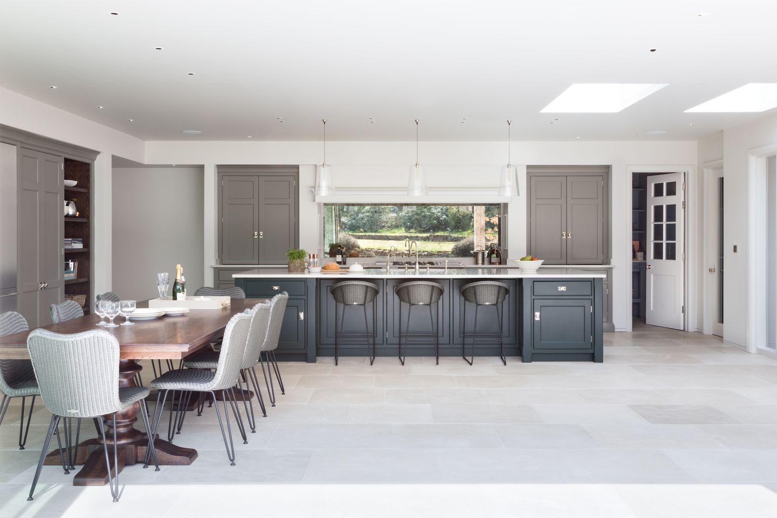 What grout colour should I use for stone flooring? Published: 29-08-2019 We typically recommend ARDEX grout for our showrooms and projects. ARDEX supplies excellent quality wall and floor preparation products and is used on residential and commercial projects, including the largest shopping mall in Dubai and the iconic London Olympic Aquatics Centre. In terms of colour, the answer is that it totally depends on the floor tile covering itself and the overall aesthetic design of the room where the stone is being installed. In the project shown above, the clients specified the Brampton natural limestone – a lovely soft grey limestone floor tile with natural markings, perfect for contemporary or traditional spaces. The natural markings are typically swirl patches and lines that give the stone such character. When it came to choosing the grout, the clients chose ‘Natural Almond’ by Ardex Flex FS, which has the perfect neutral base. The alternative grout colour to use would have been ‘Silver Shimmer‘ which we used in the Spenlow kitchen in the Humphrey Munson showroom in St. Albans. ‘Silver Shimmer’ is a much darker grey colour that really brings out the coolness in the tile and works perfectly with the cabinetry colours and textured Smithfield weathered oak in this room. Looking at these two kitchens within the context of the colours and the various finishes, you can see how important the grout colour is to achieving a cohesive interior design. In the Hampshire project, the colours are much greener / warmer in tone with the darker and more luxurious Portobello oak used as the accent wood. Looking at the colours and oak tone, it was determined that the ‘Natural Almond’ grout would allow the more neutral side of the Brampton stone to dominate and as such work better with the overall interior design scheme. For advice on grout colour to go with your HM flooring, we are pleased to offer you design advice at any stage of your project. Please contact us by email to clientservices@humphreymunson.co.uk or call us on 01371 821300. Image credit – Paul Craig. Share this article Copy this link https://www.humphreymunson.co.uk/what-grout-colour-should-i-use-for-stone-flooring/ Share Copy link Previous Article What is an ‘etched’ finish on limestone flooring? Next Article Recipe Notes | Sausage Hash